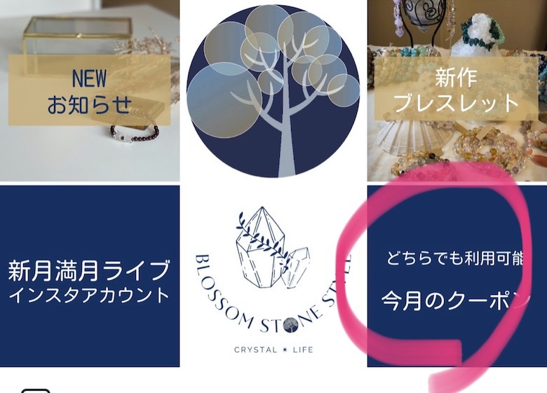 と、こちら天然石をインテリアにするBlossom Stone Styleの両方でご利用いただける割引クーポンがメニューでいつでもご確認いただけます。