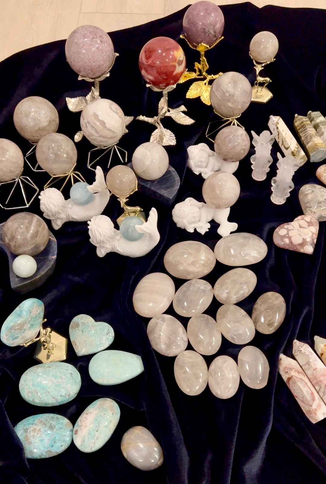 今回は、キレイな子たちが多かったので、初めてブルーローズクォーツのスフィアも仕入れました。