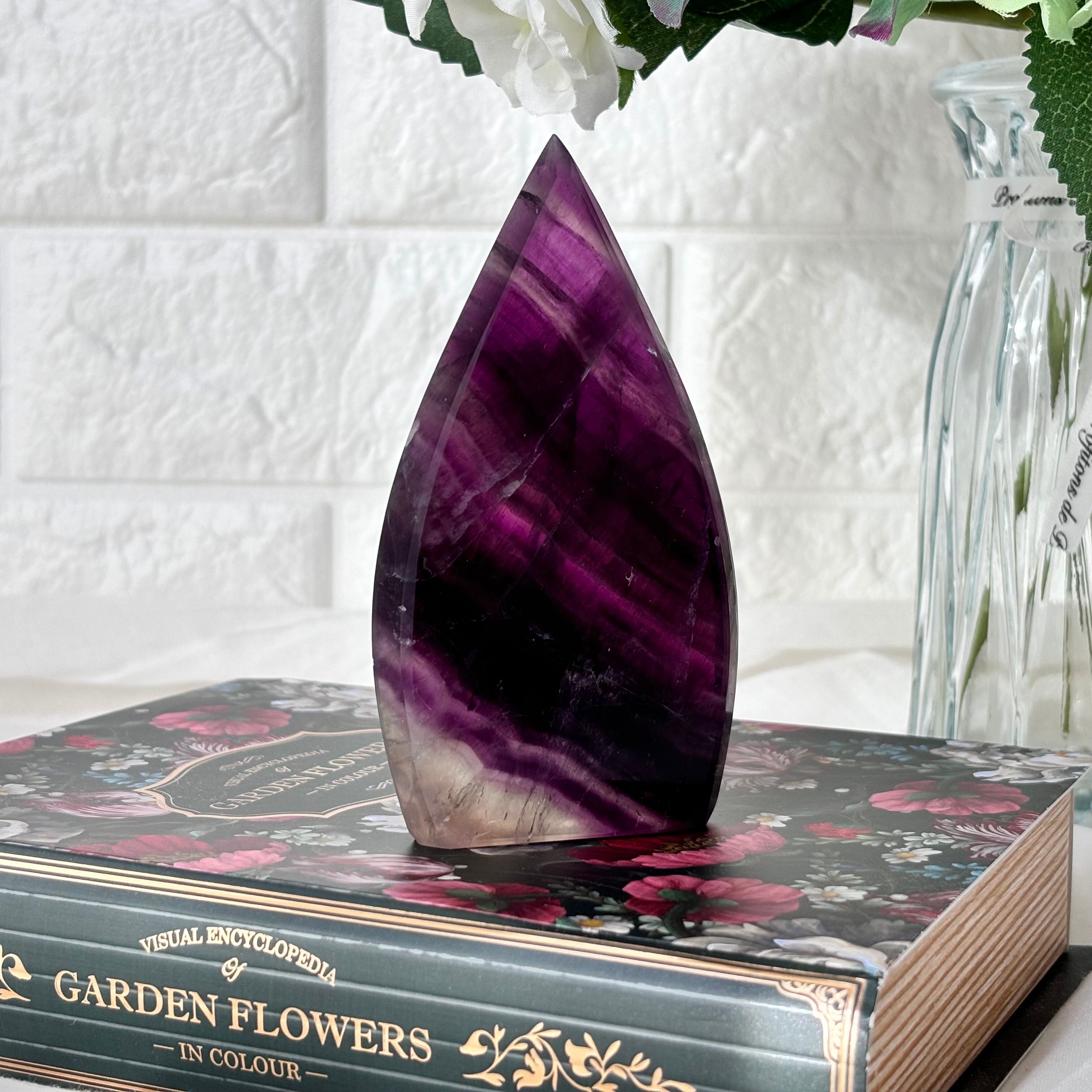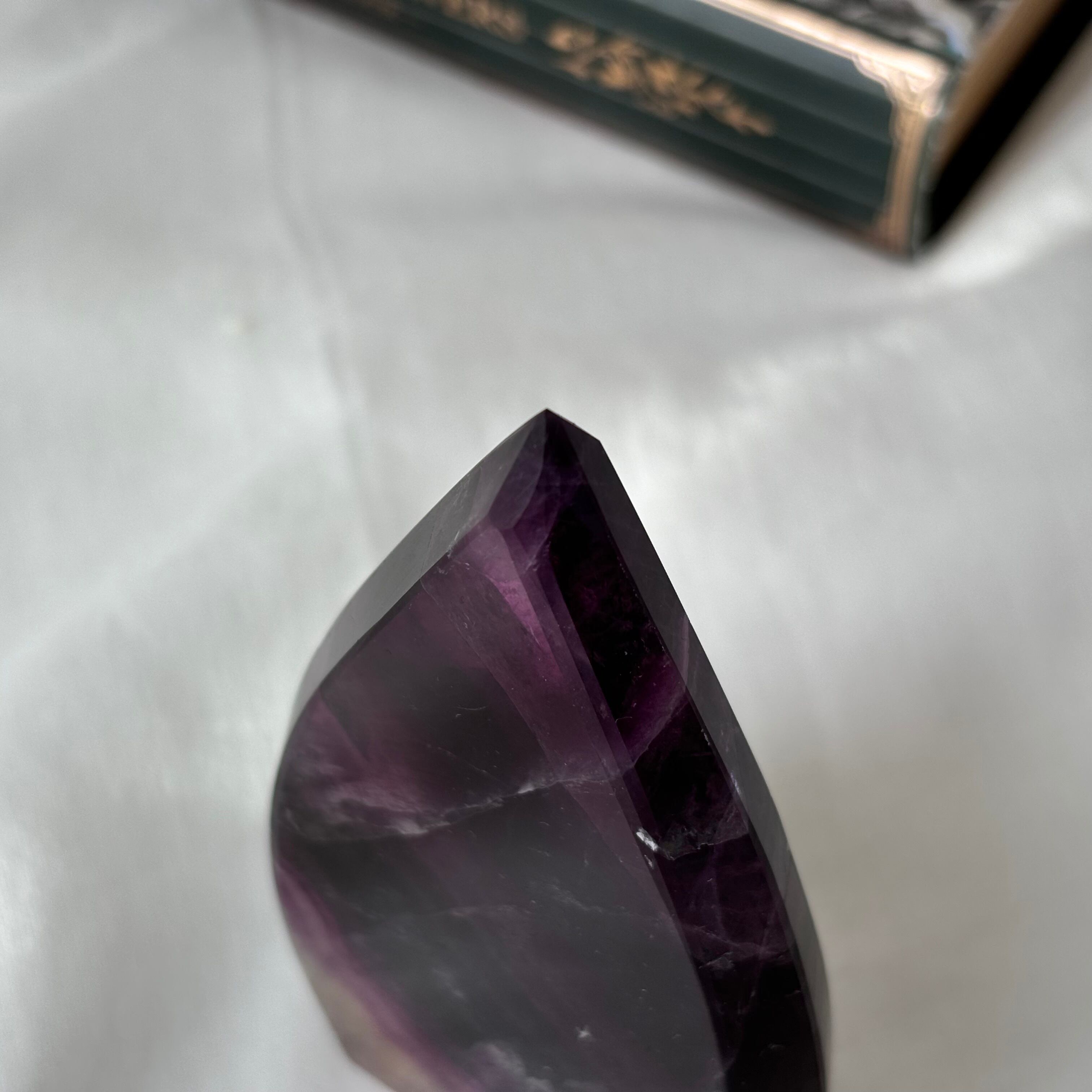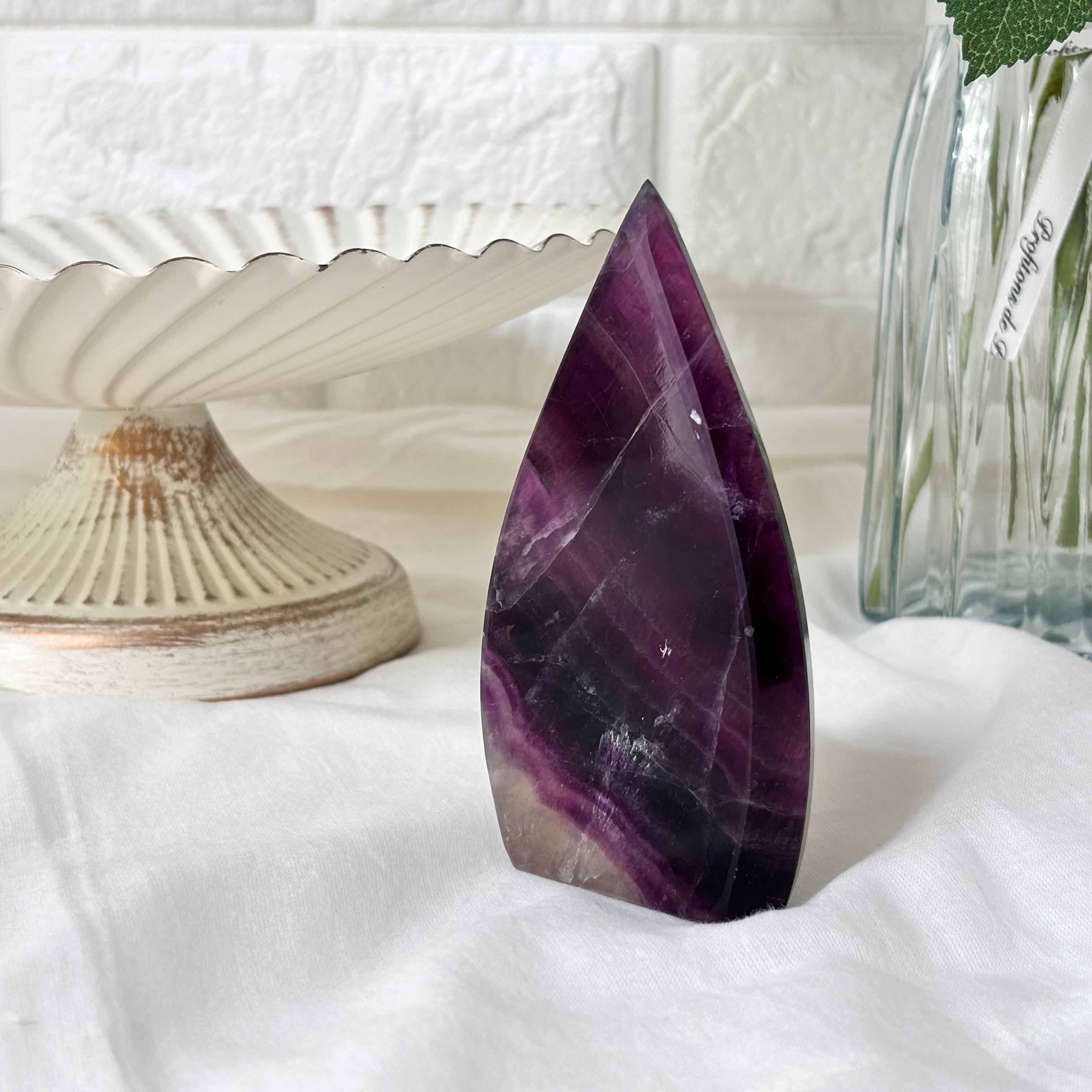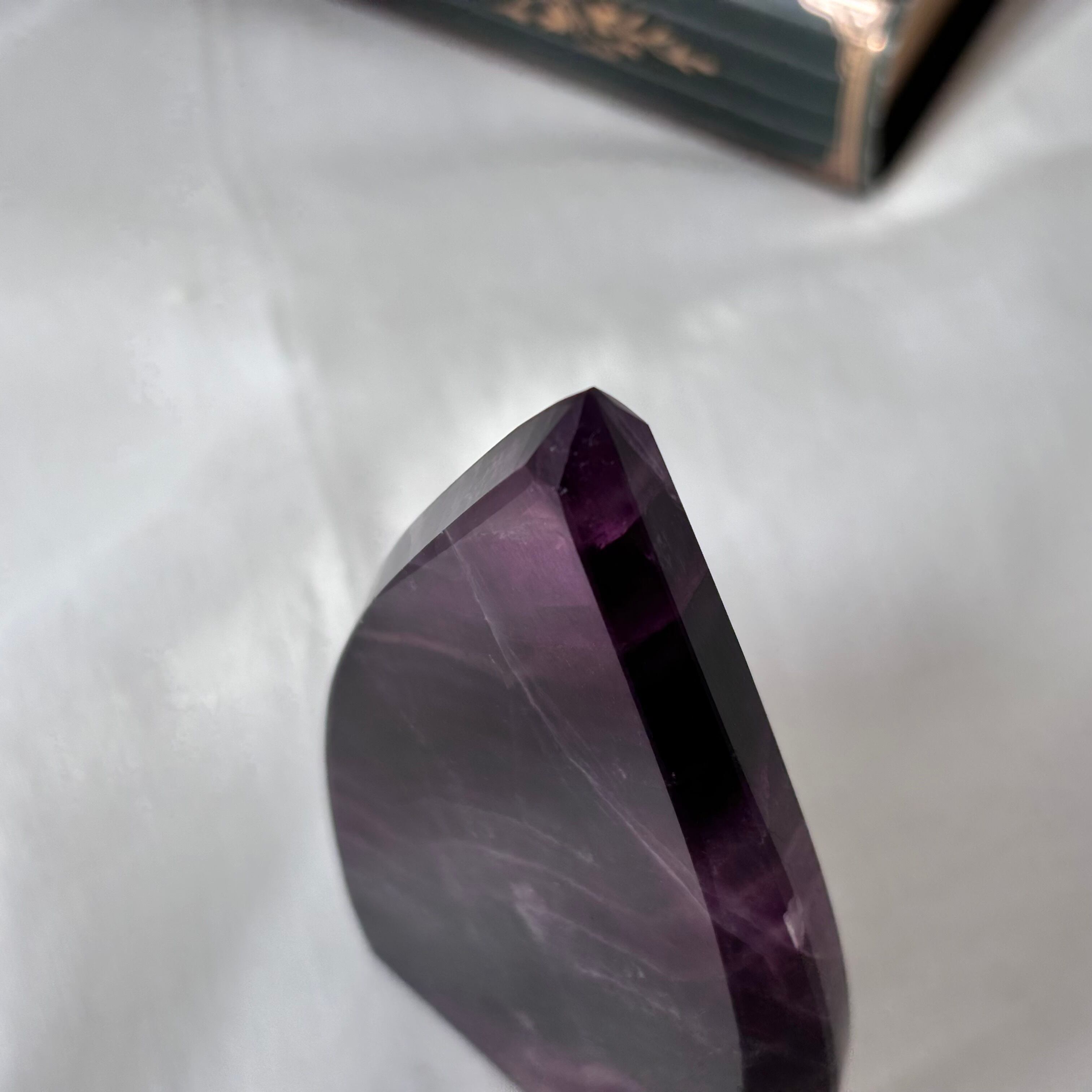 神秘的なパープルの濃淡が折り重なる、まるで夜の静寂を閉じ込めたようなフローライト。