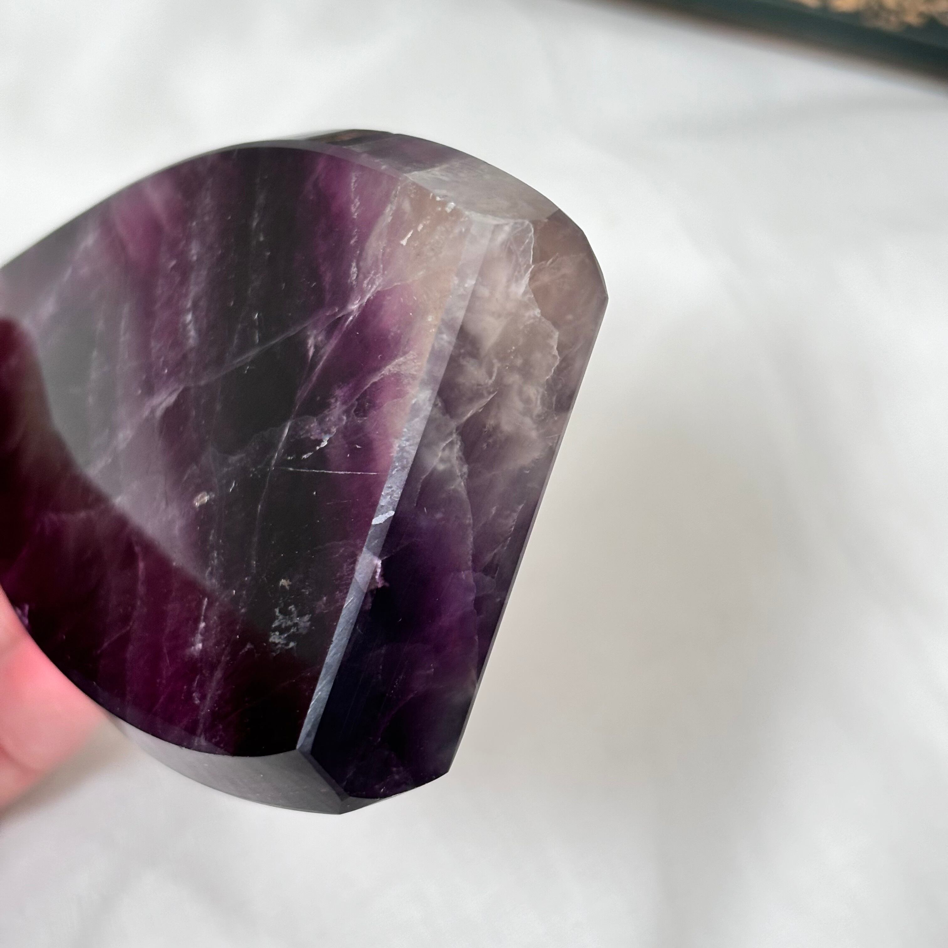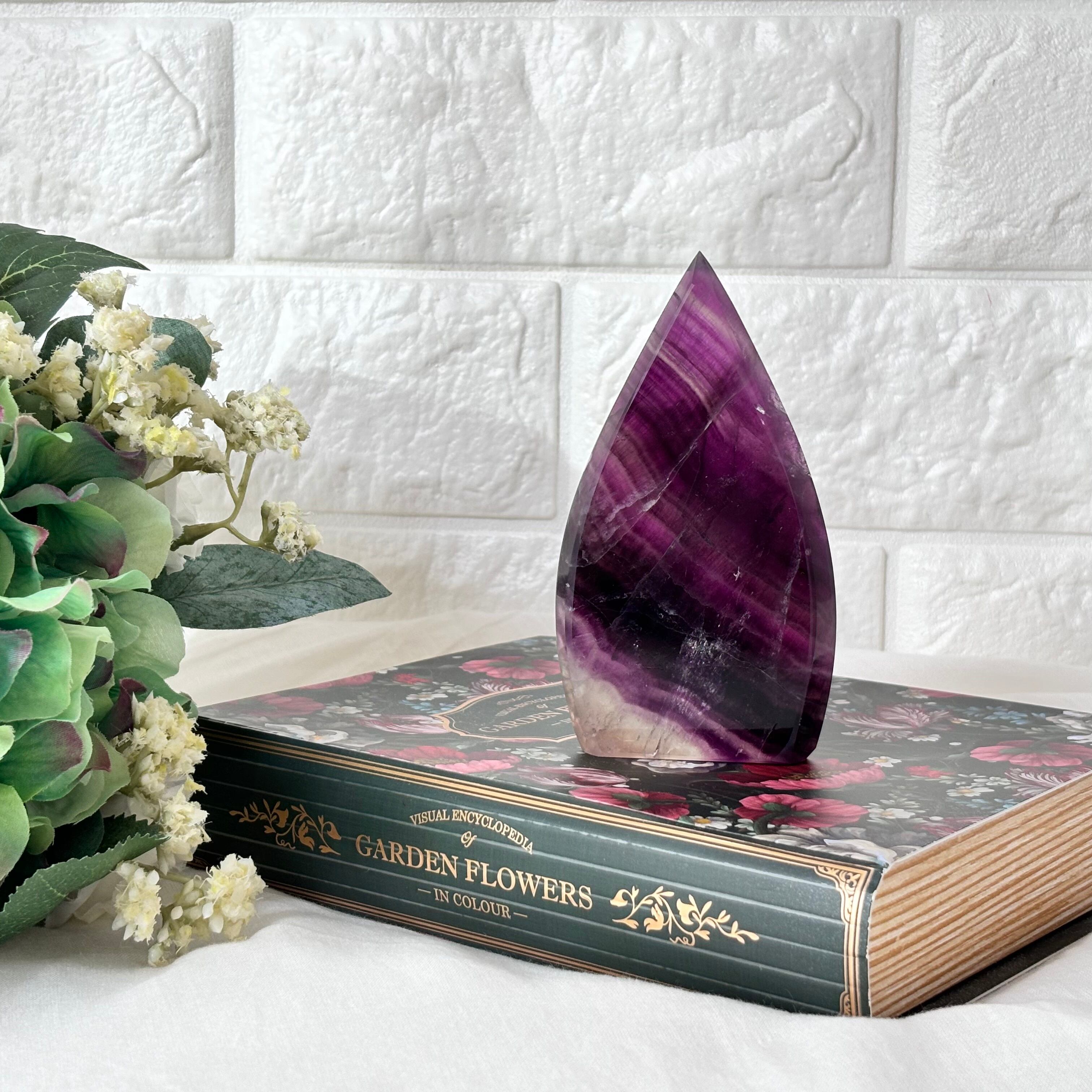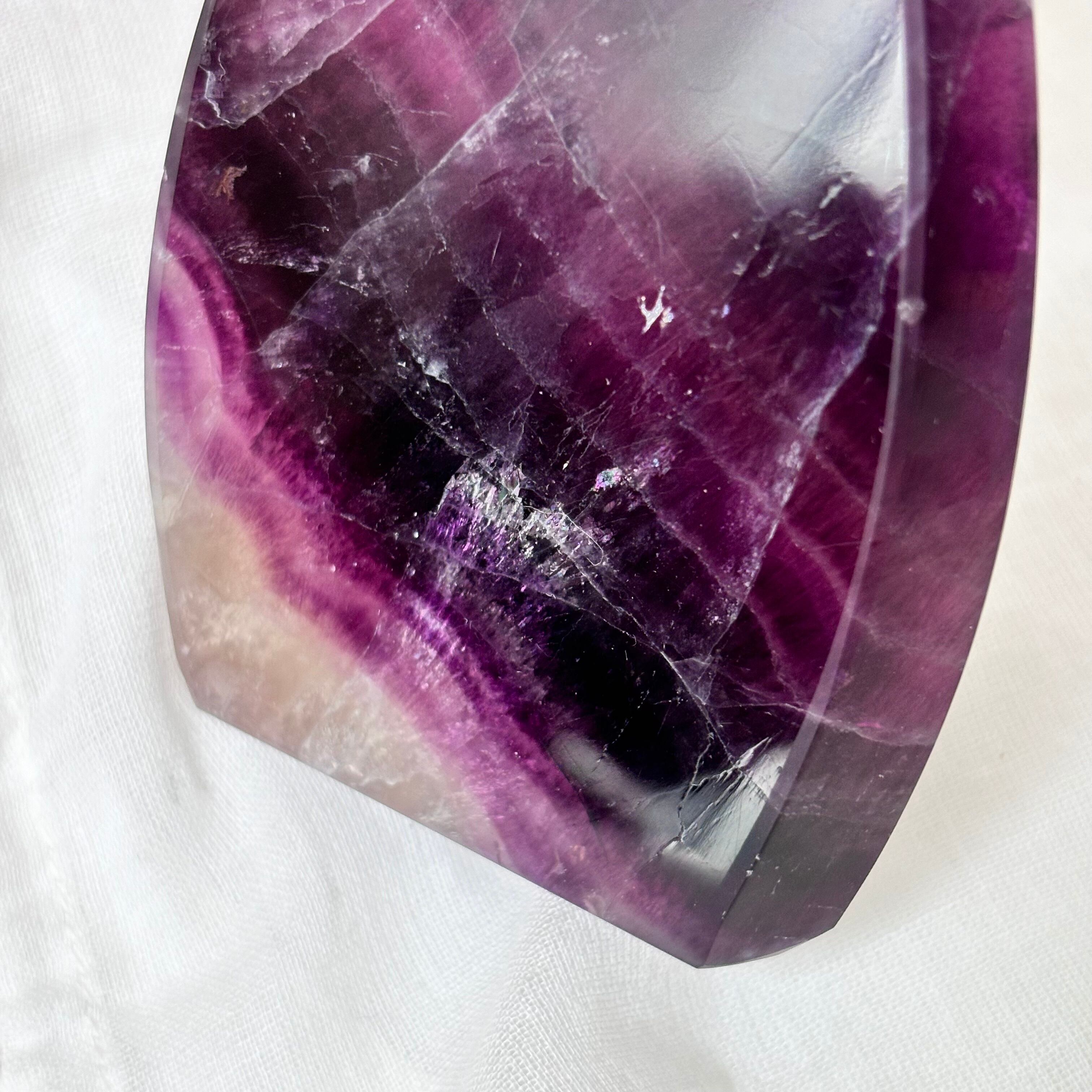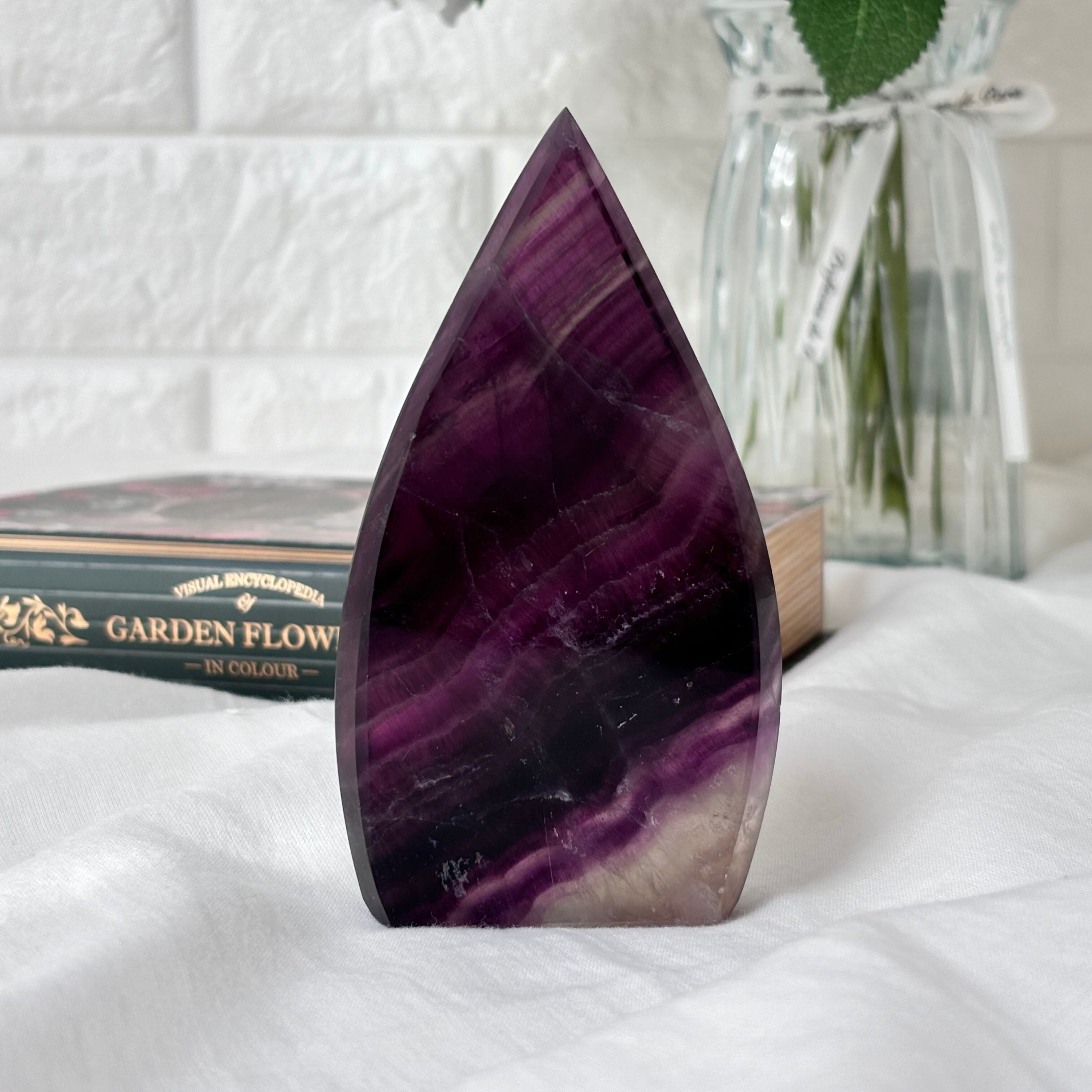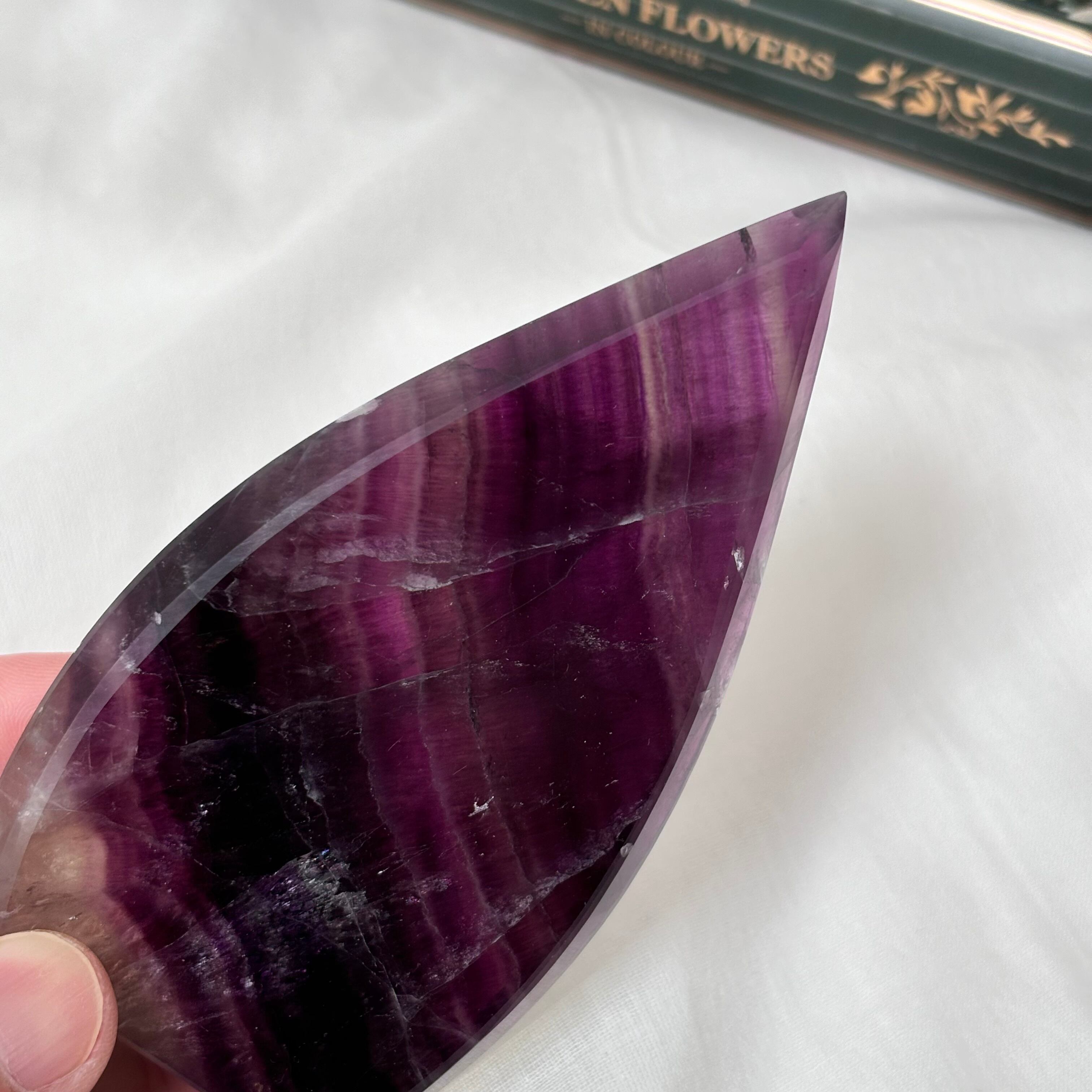 神秘的なパープルの濃淡が折り重なる、まるで夜の静寂を閉じ込めたようなフローライト。