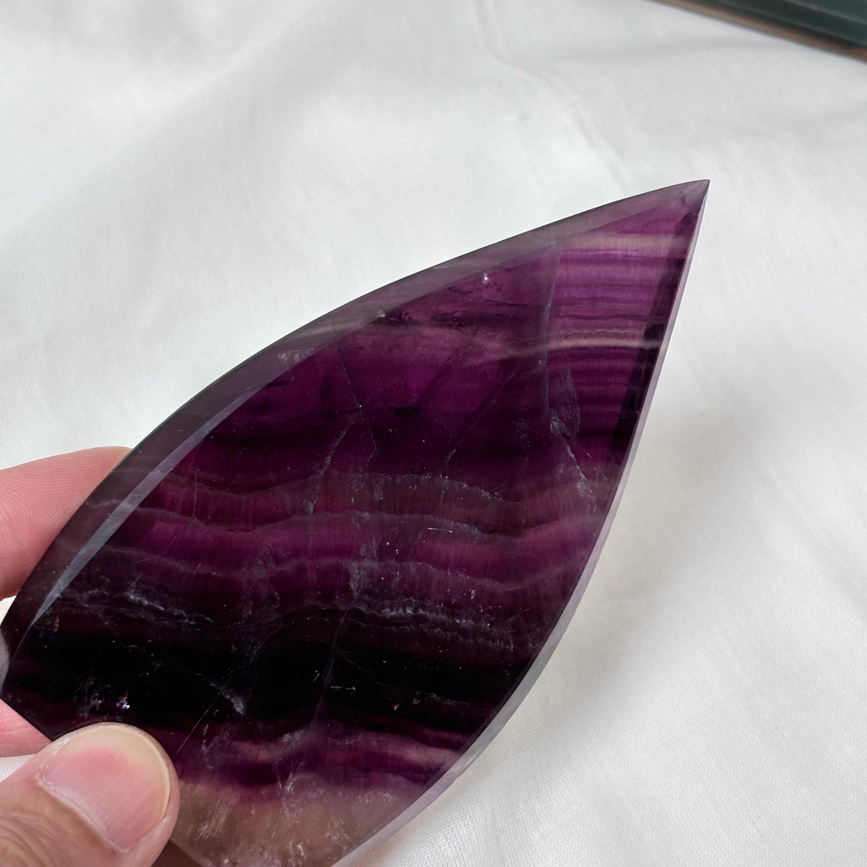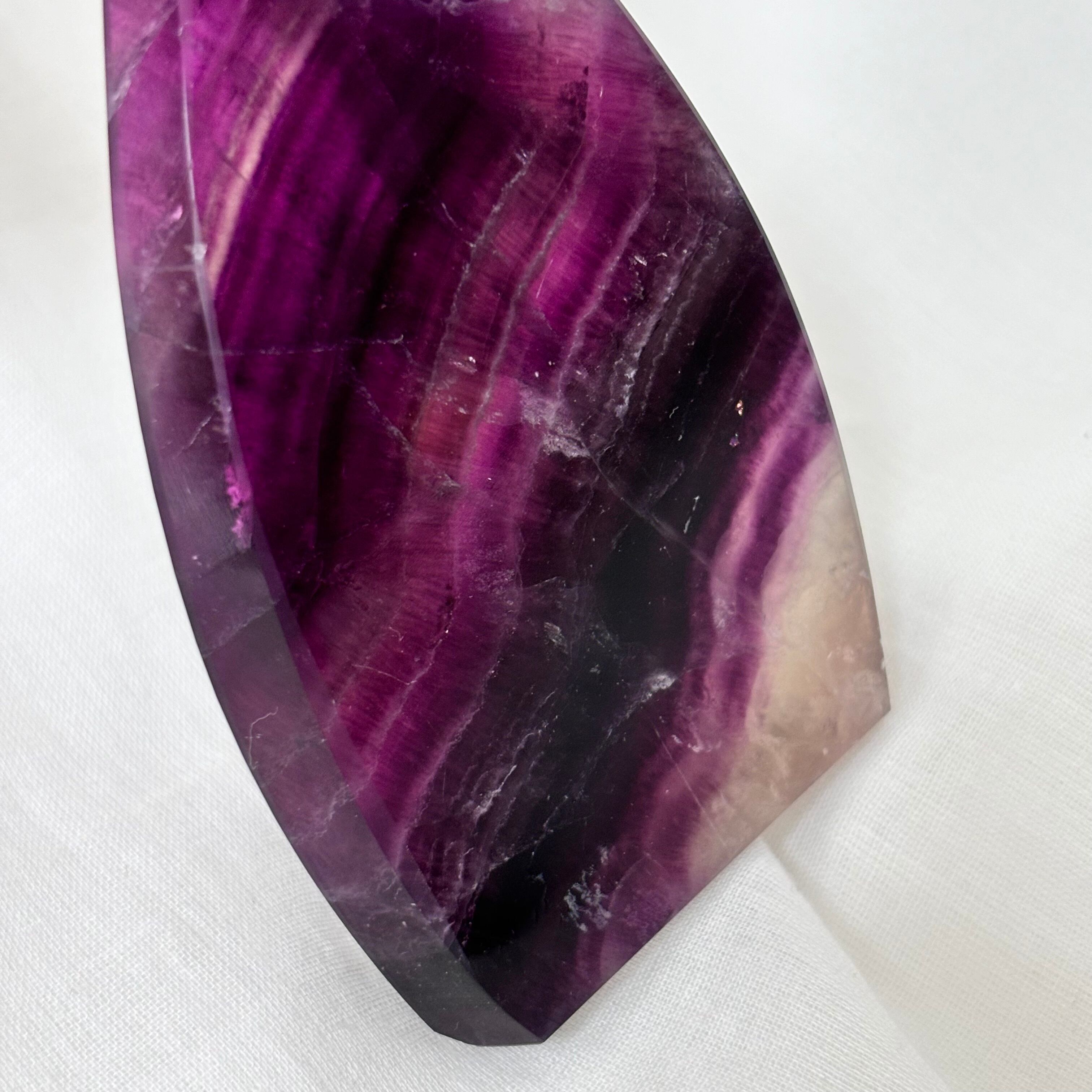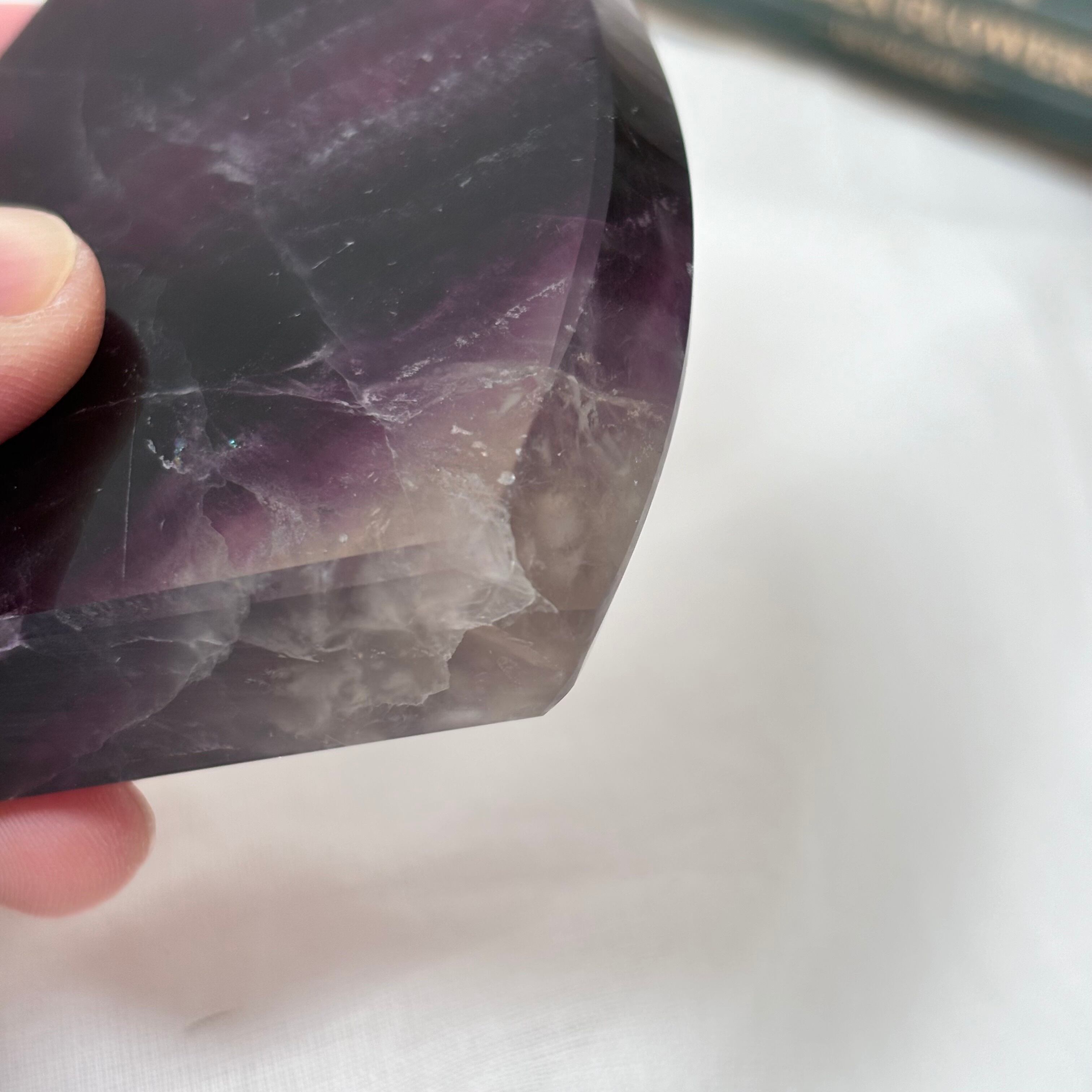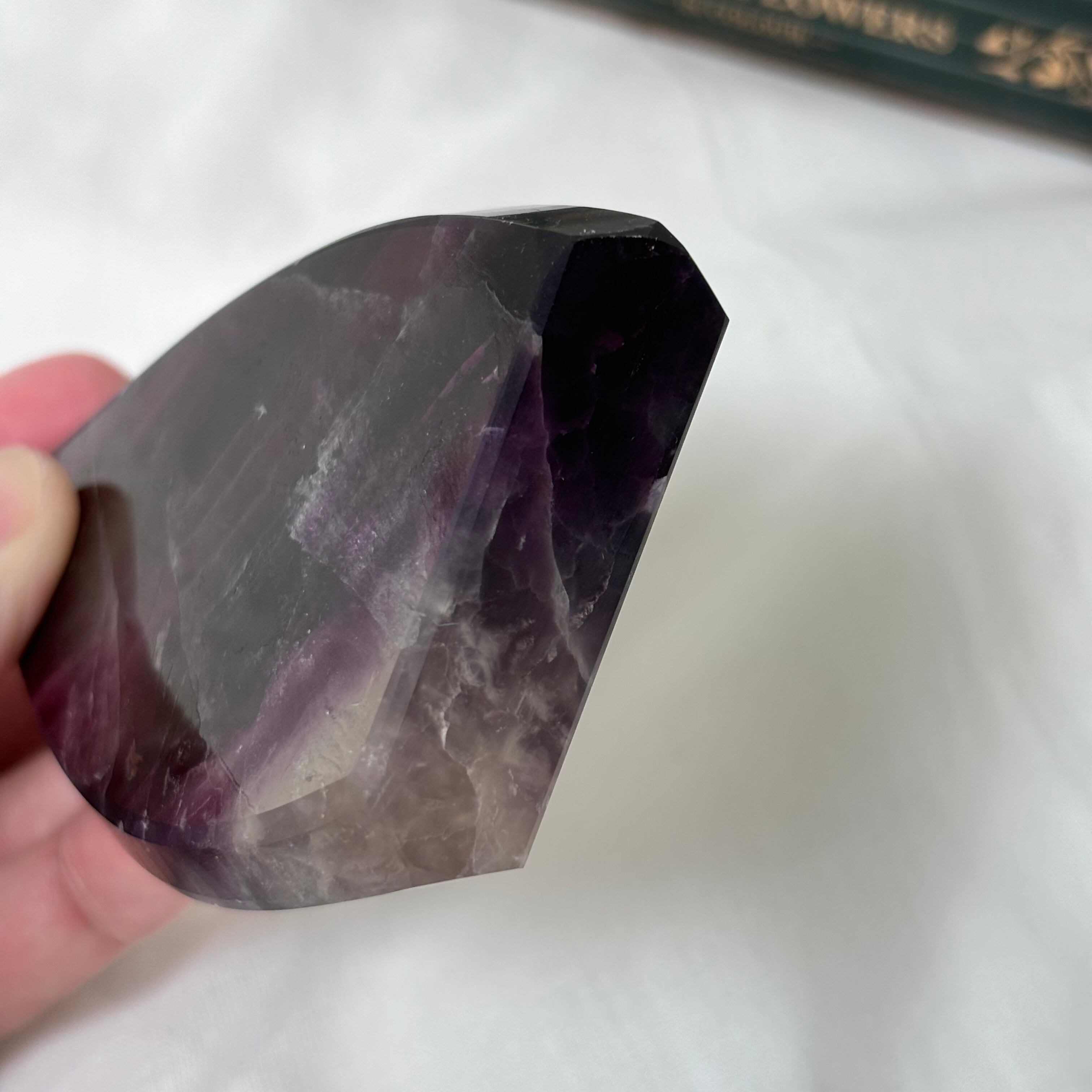 神秘的なパープルの濃淡が折り重なる、まるで夜の静寂を閉じ込めたようなフローライト。