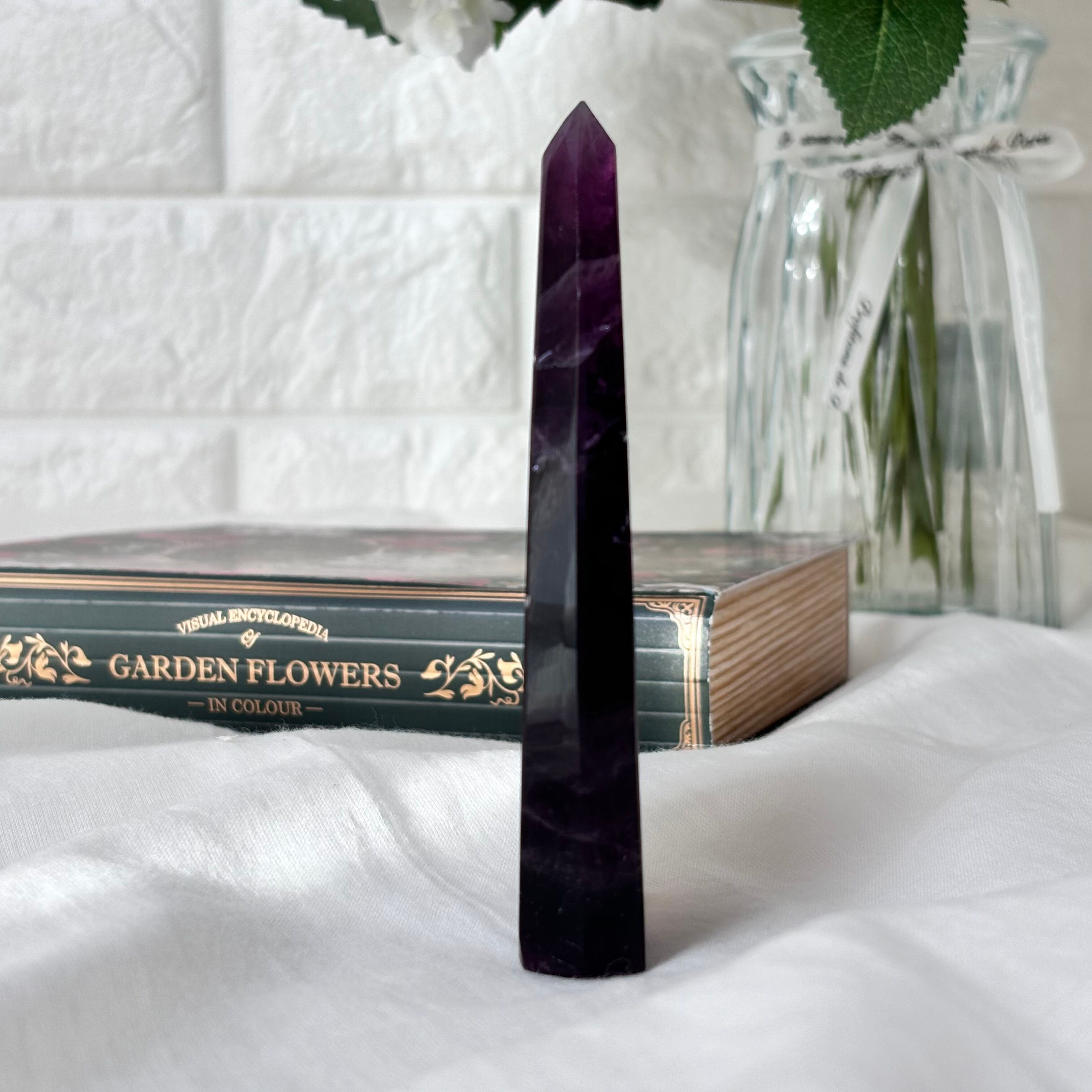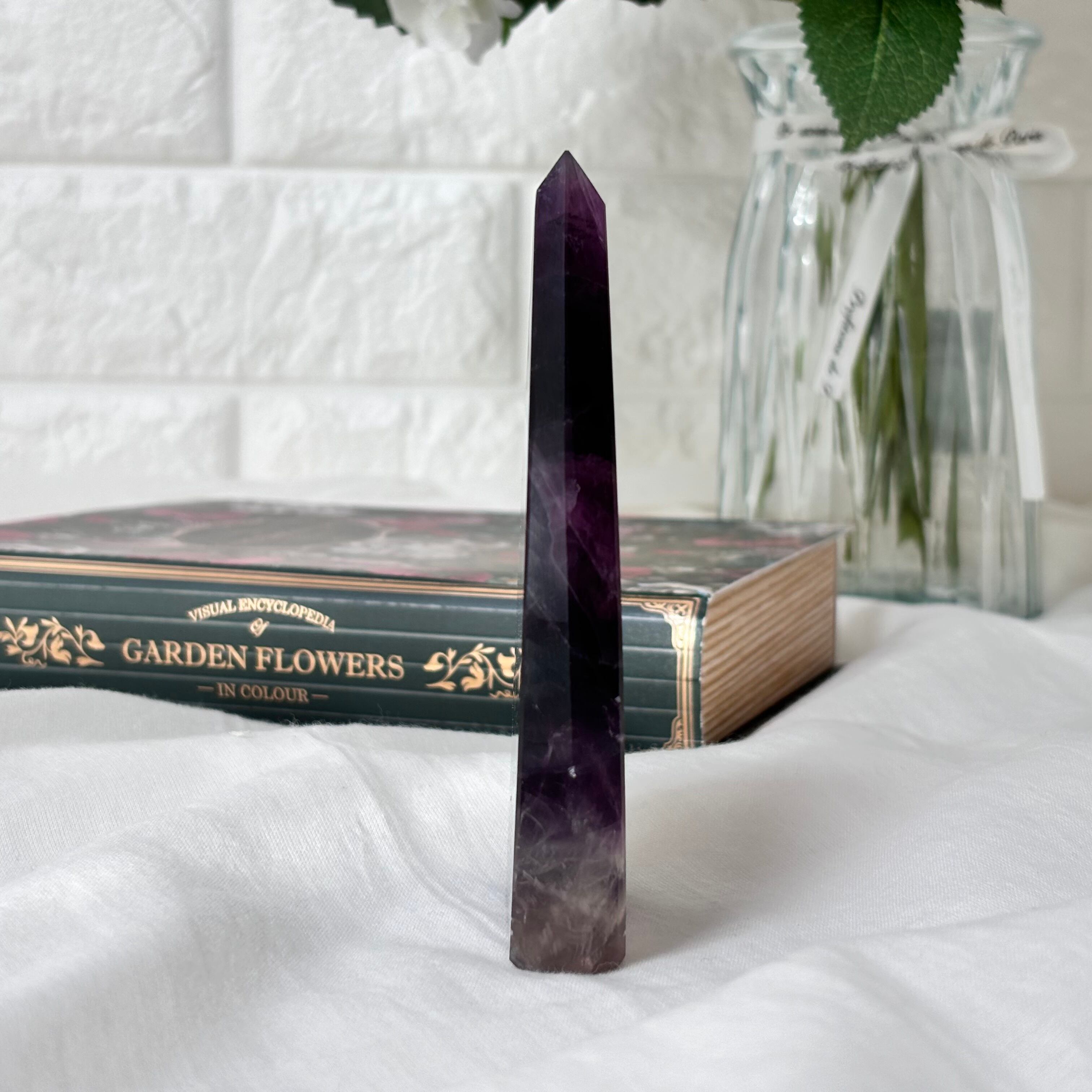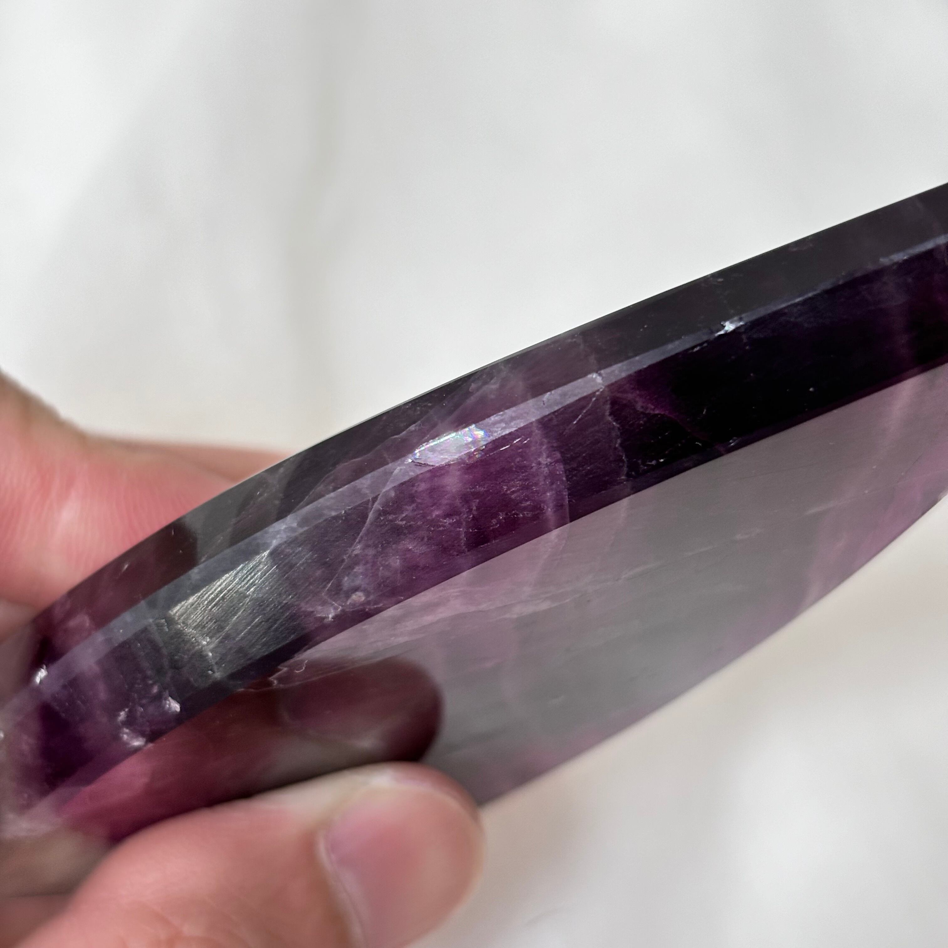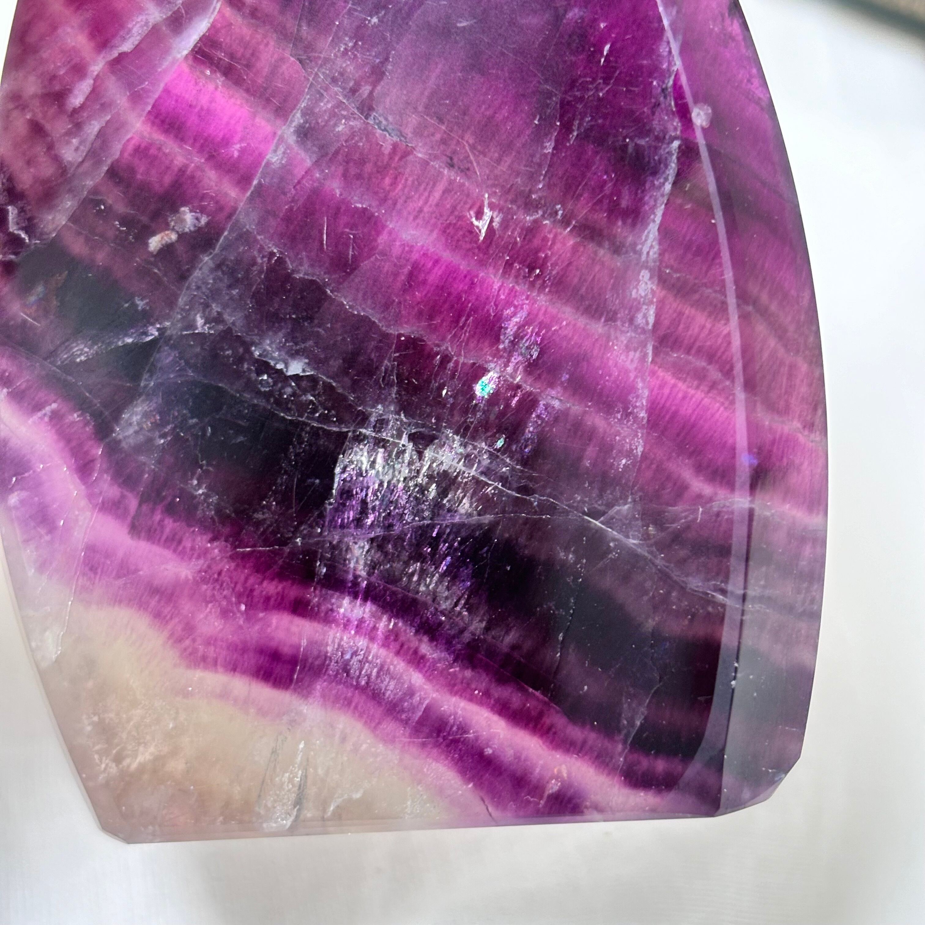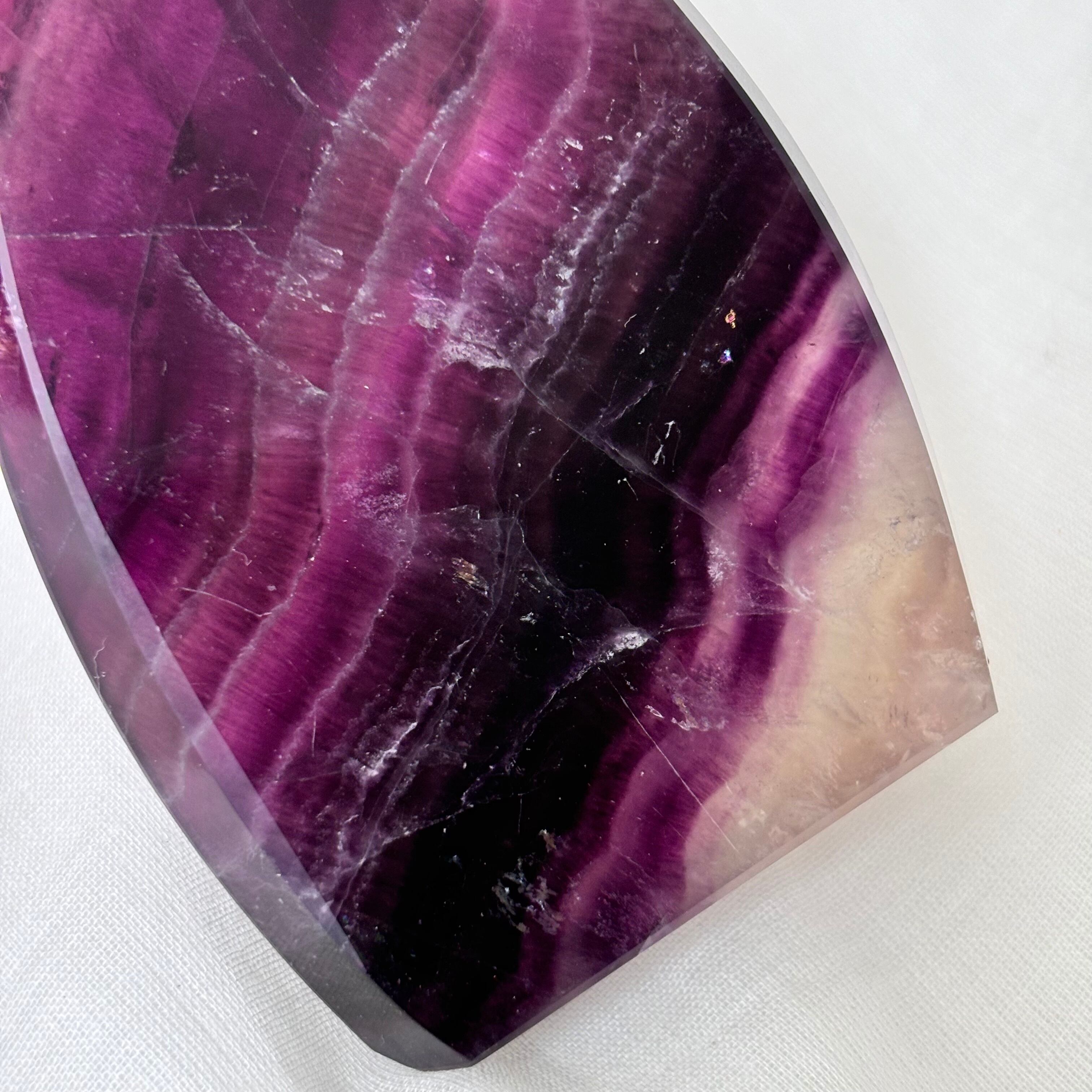 神秘的なパープルの濃淡が折り重なる、まるで夜の静寂を閉じ込めたようなフローライト。
