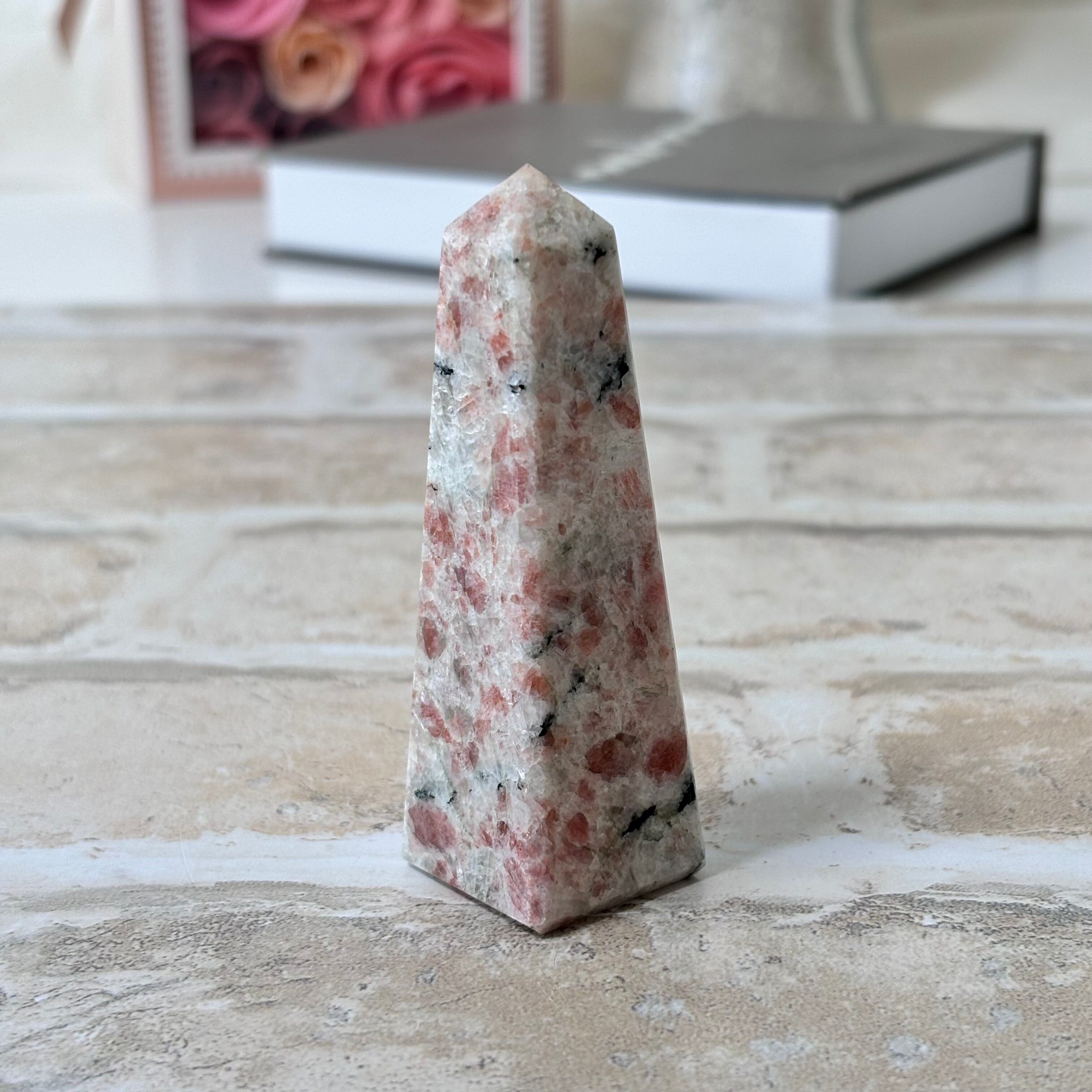 洗練されたオベリスク型は、空間を優しく引き締めながら、穏やかなエネルギーをすっと天へと導いてくれるシンボル。柔らかな色合いと繊細な輝きが調和し、インテリアとしても癒しの存在感を放ちます。