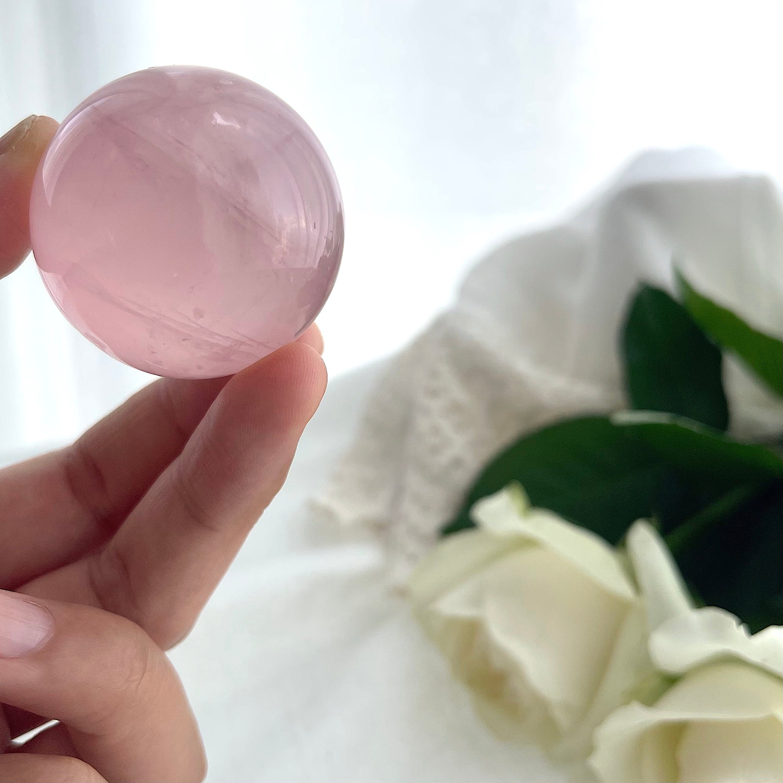 手のひらにふんわりと収まる、優美なローズカラーのスフィア。
