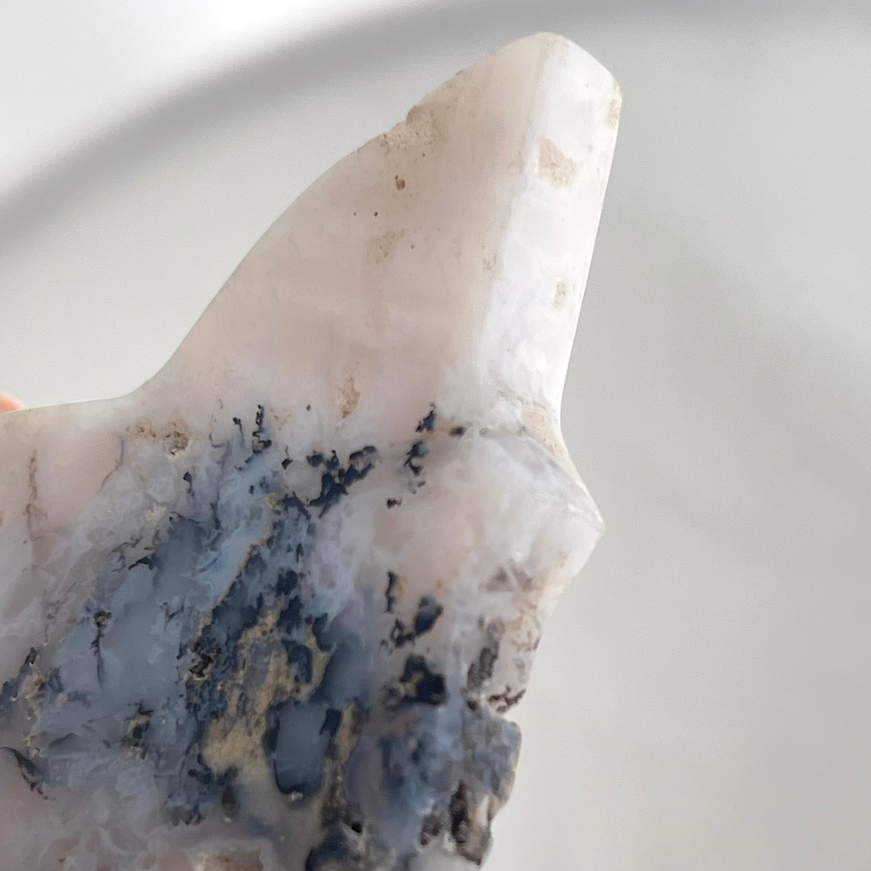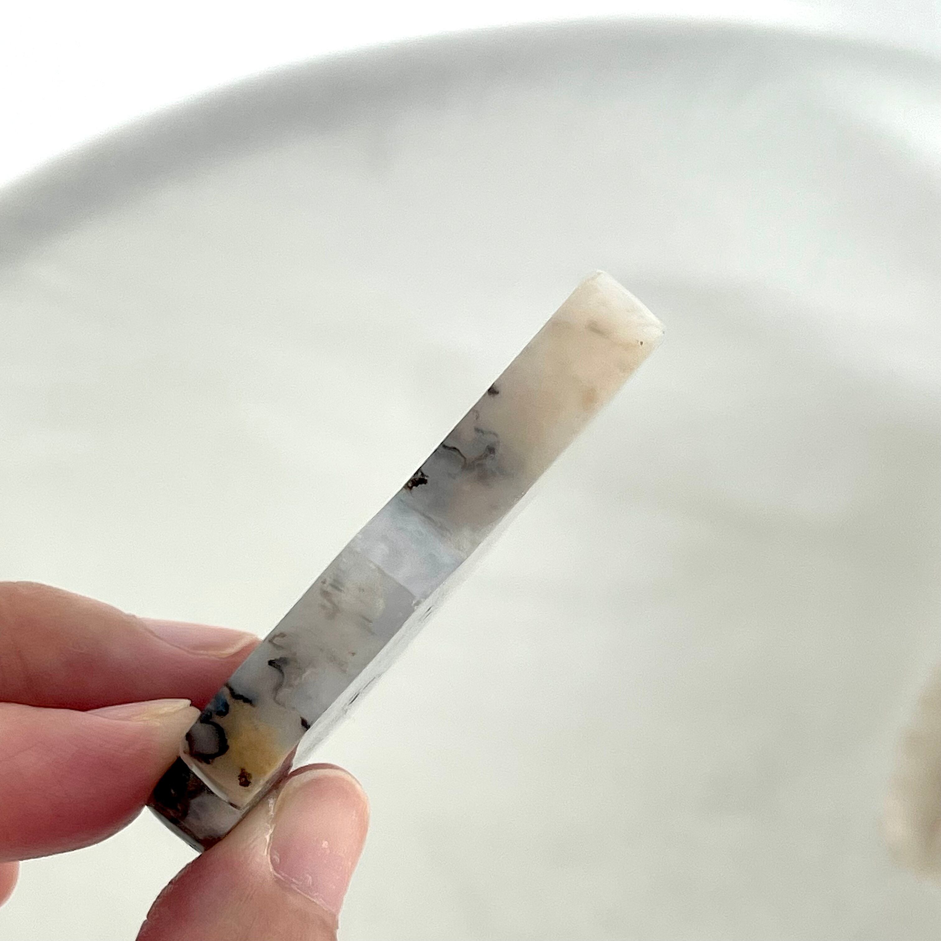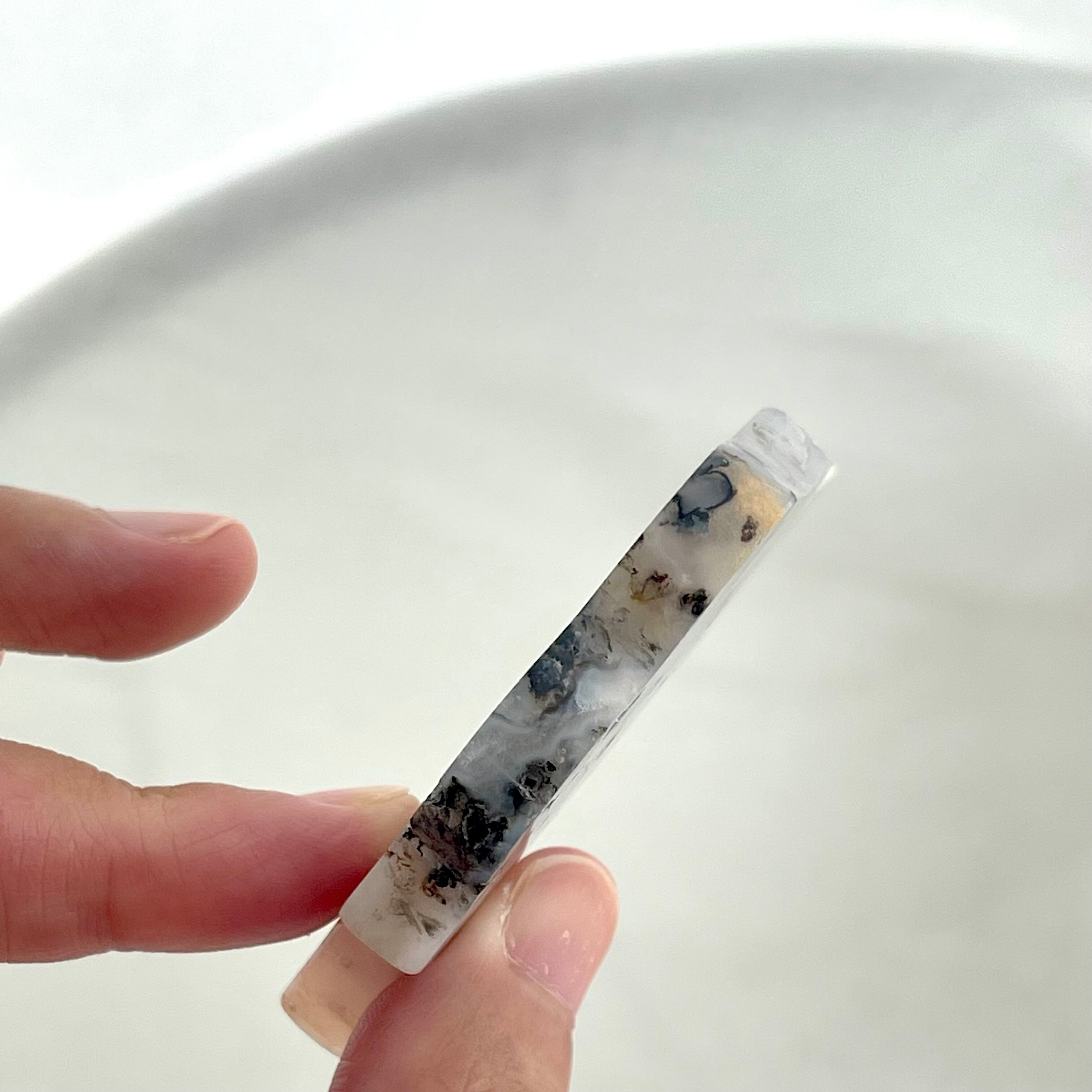 半透明の白に、黒やグレーの樹枝状模様が広がるアゲート。
