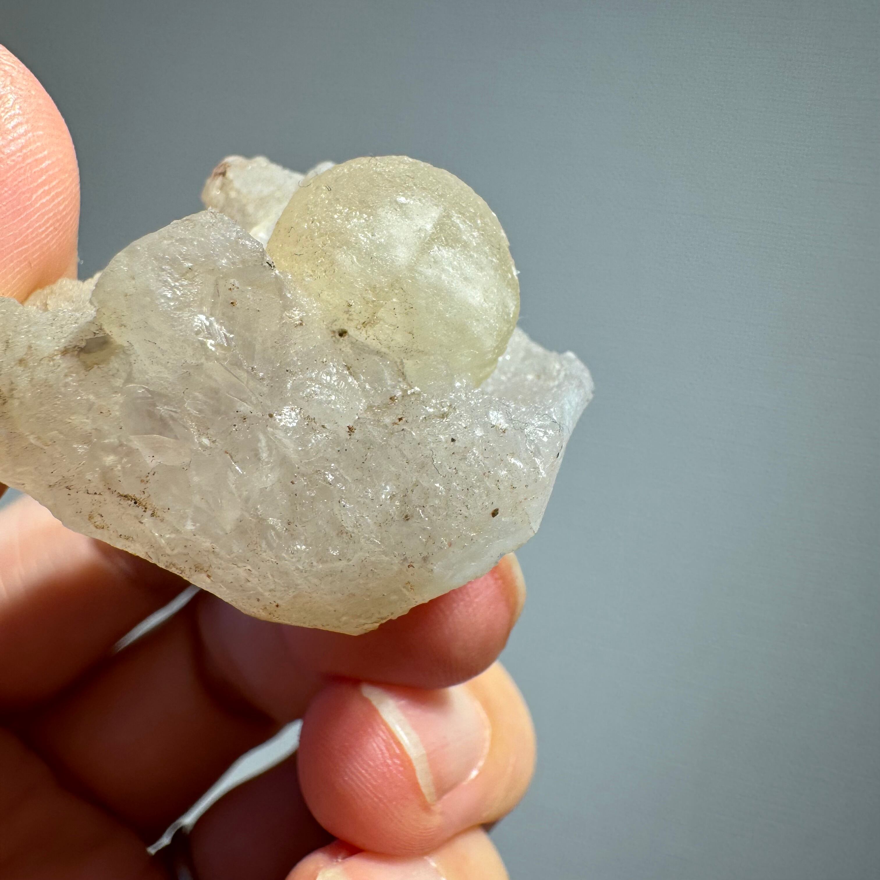 フローライトが球状に結晶し、それらが互いに融合することで形成される特殊形態。通常の八面体や立方体とは異なる、非常にレアな成長パターンです。