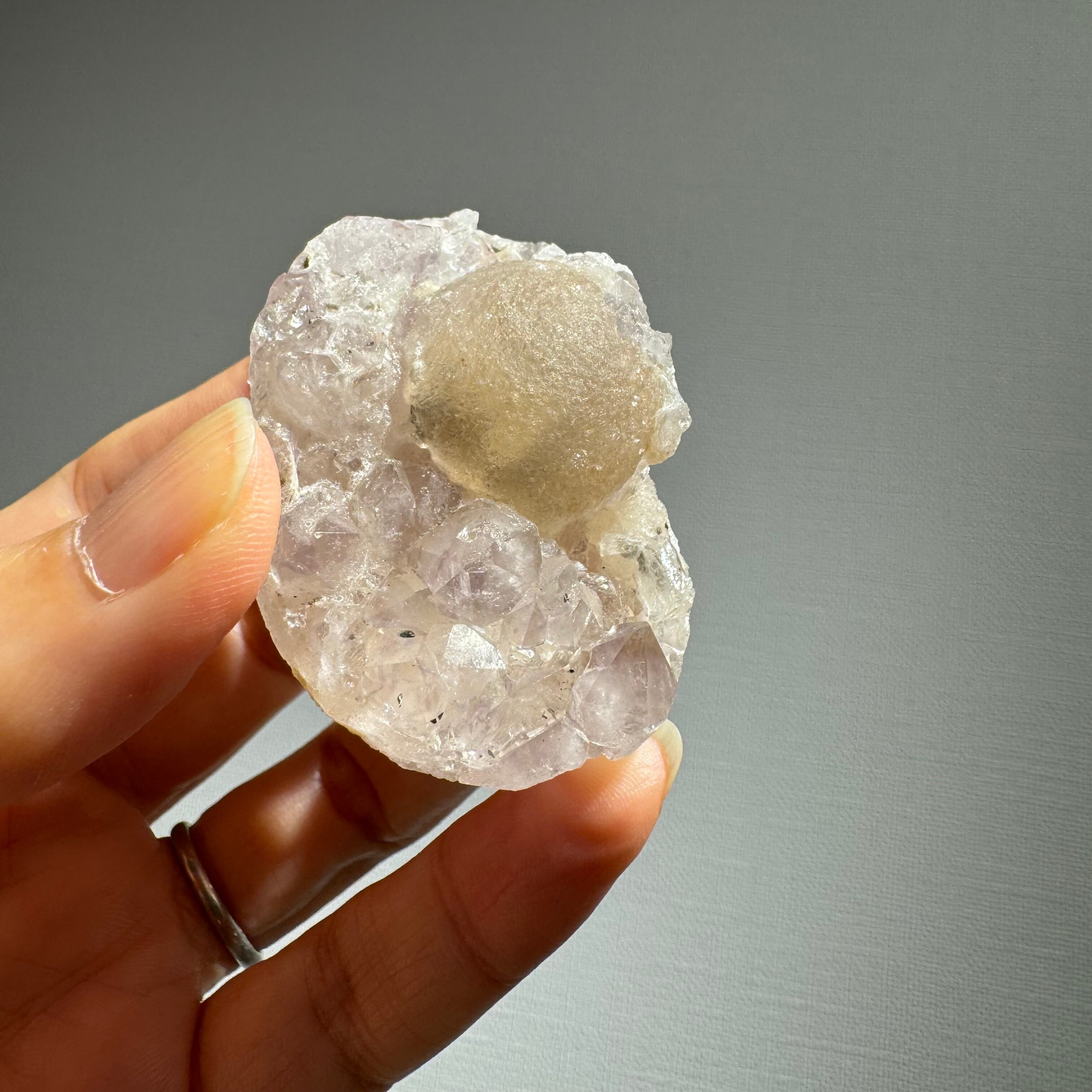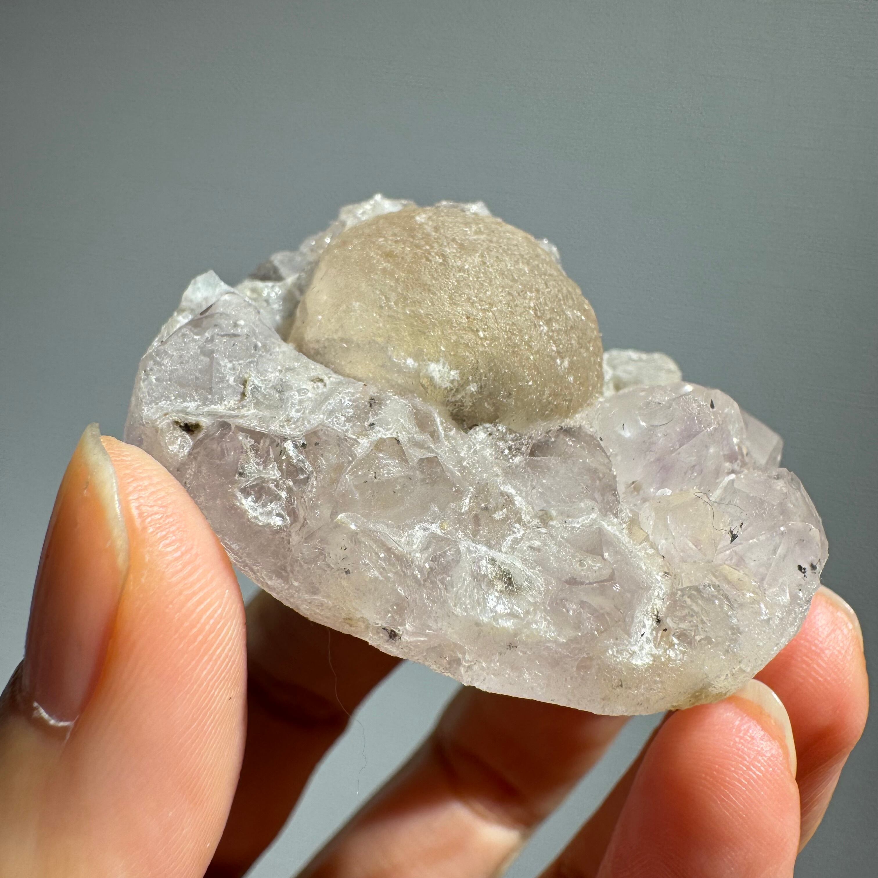 こちらはアメシストの母岩付きで、球体は1つのみの標本になります。