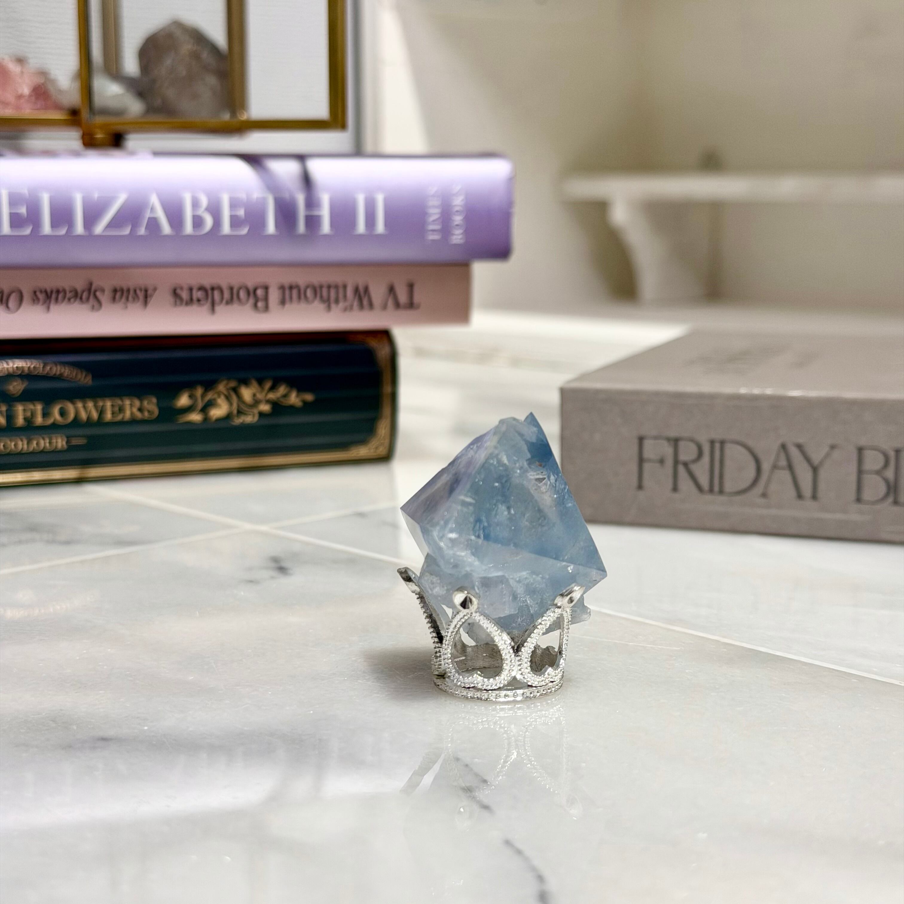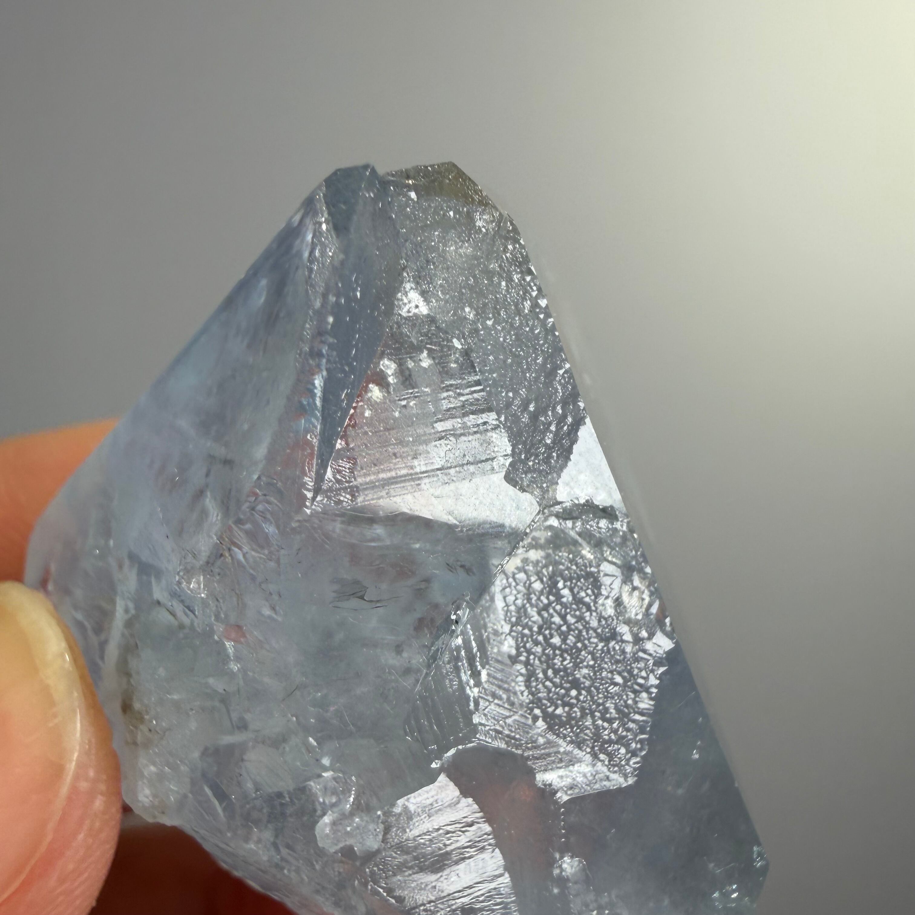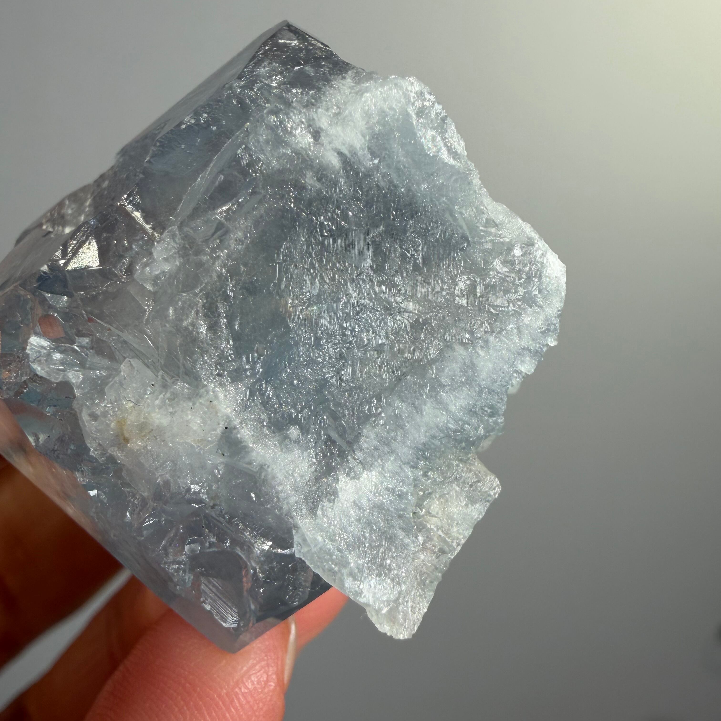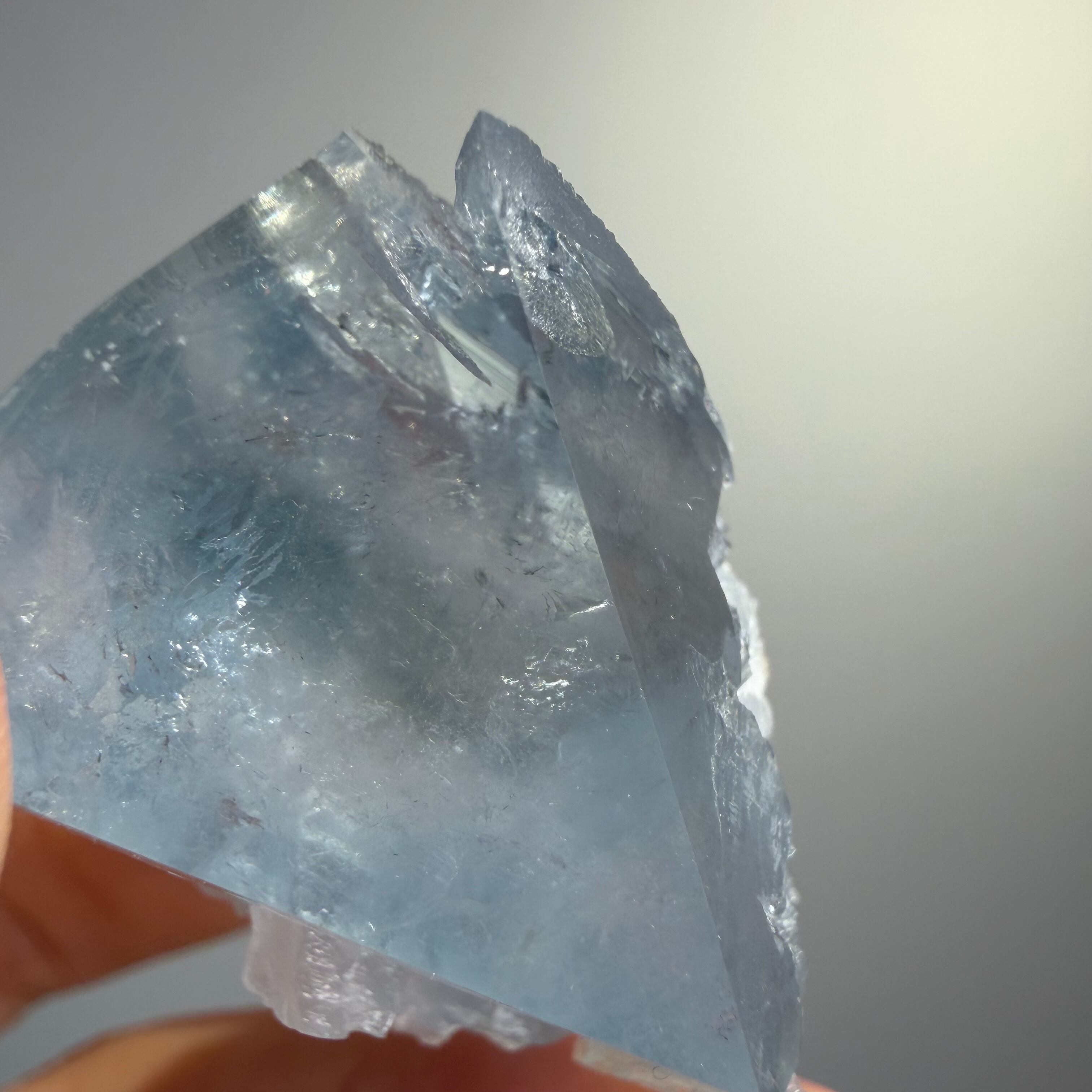淡い空色が透けるように広がるコロンと大きめの単結晶です。