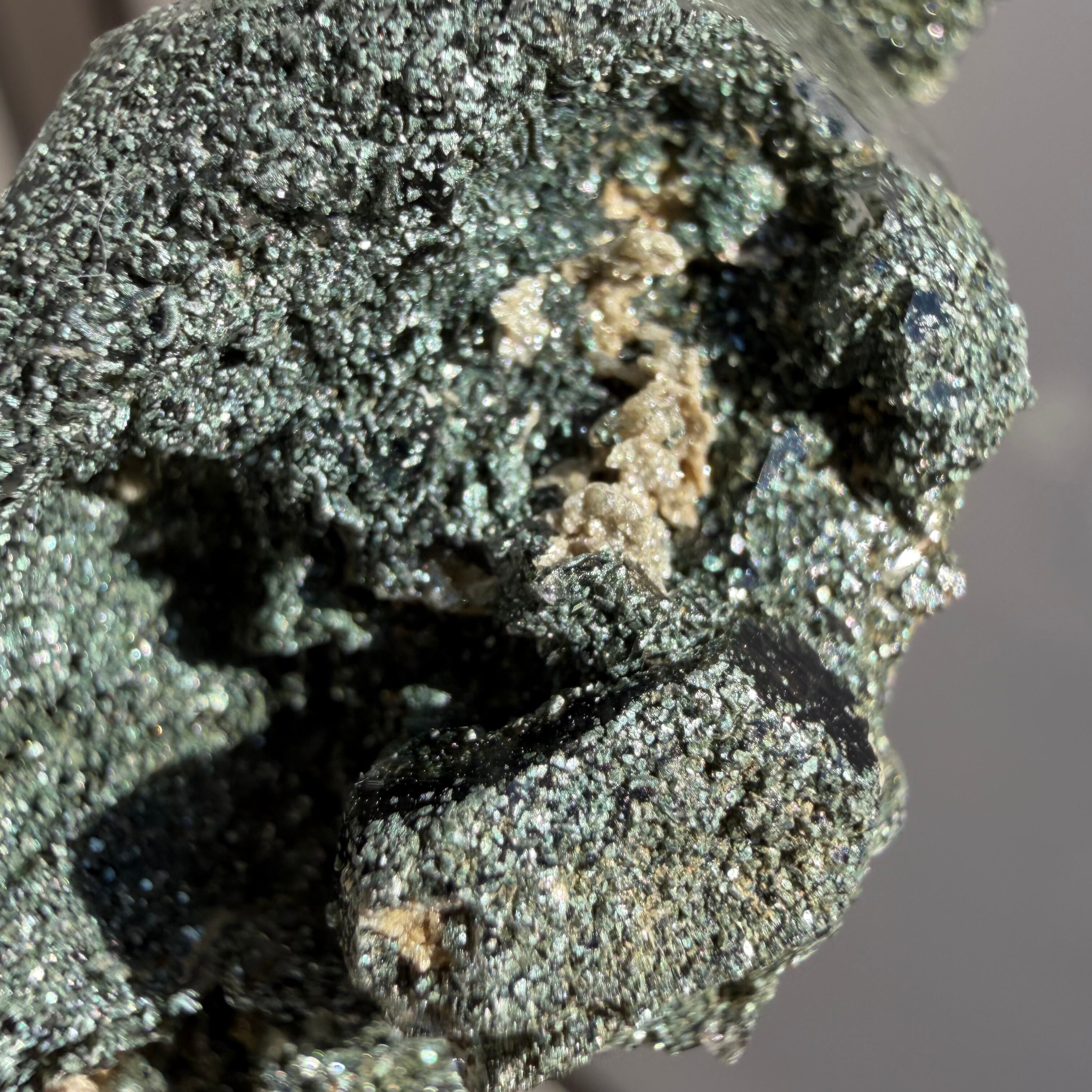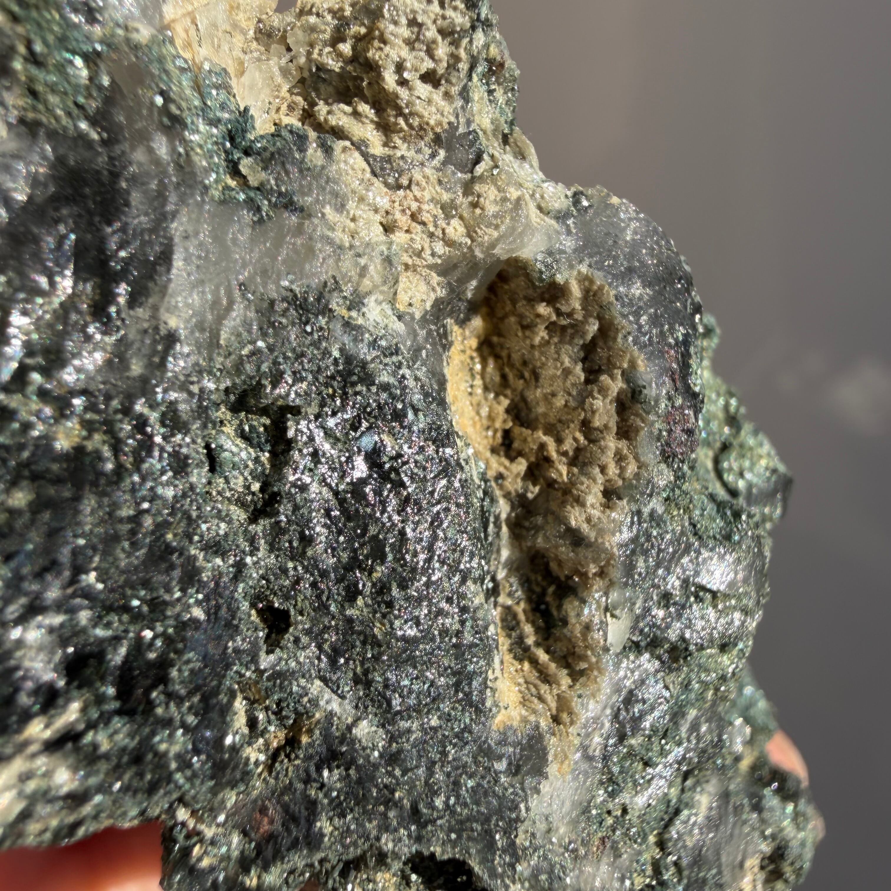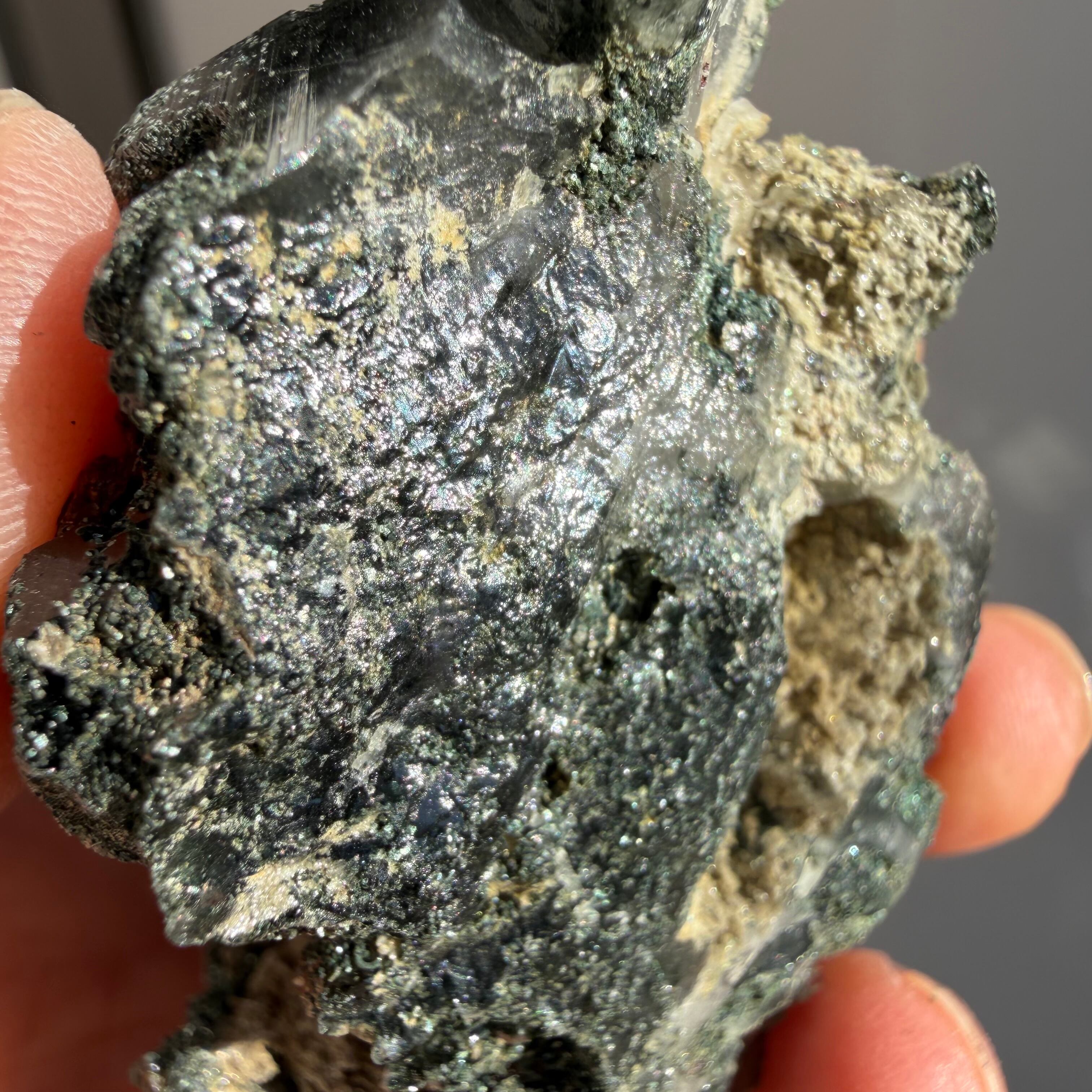 近くで見ると微細な鉱物がびっしりと結晶を覆い、マニハール産ならではの荒々しさと透明感の調和が際立ち、コレクションにひとつ加えるだけで奥ゆきのある世界観を楽しめます。