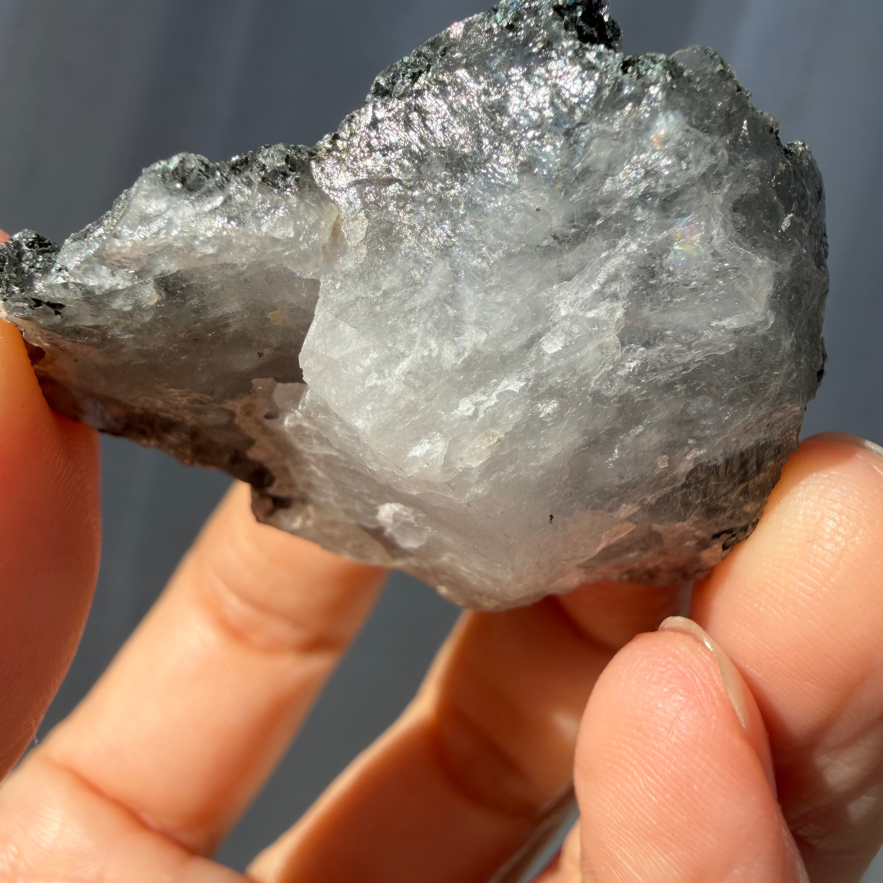 手のひらサイズで飾りやすく、採光の良い場所に置くと、細かな結晶面の輝きがより際立ち、コレクションのアクセントになる存在感ある水晶です。