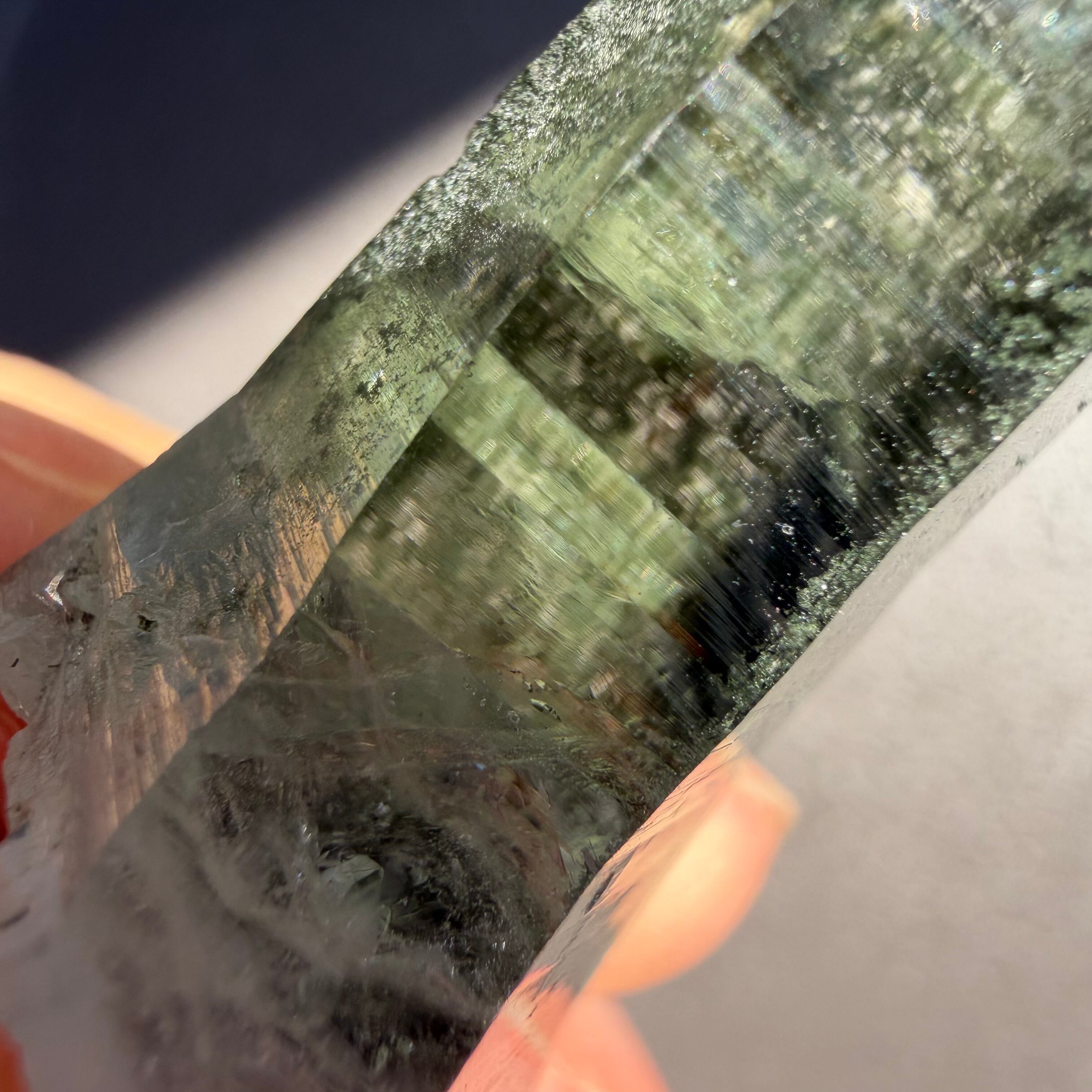 * テッシンハビット(Tessin habit)とは、スイス・アルプスで多く見られる“細くすらりと伸び、先端に向かって自然に細くなる結晶形”のことです。