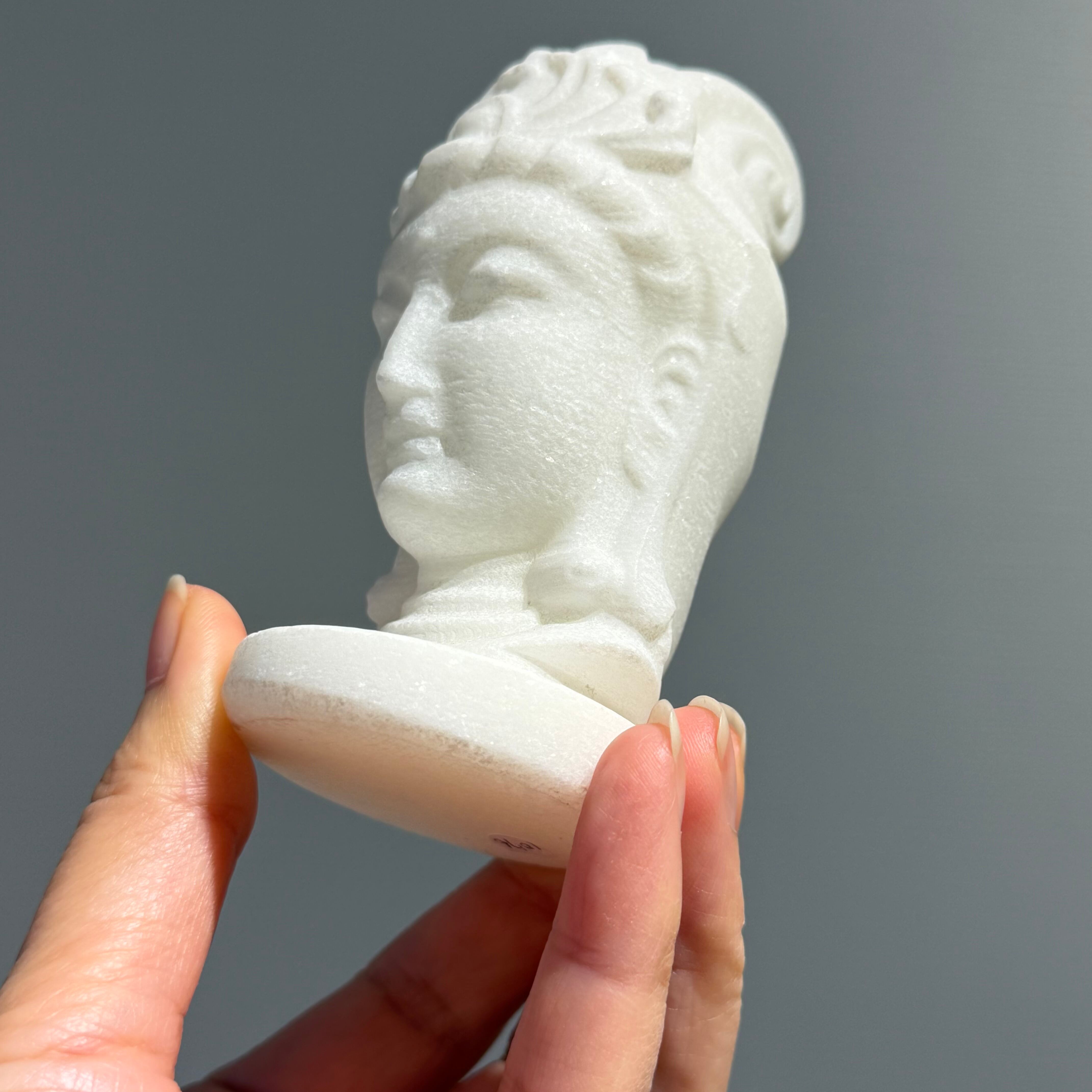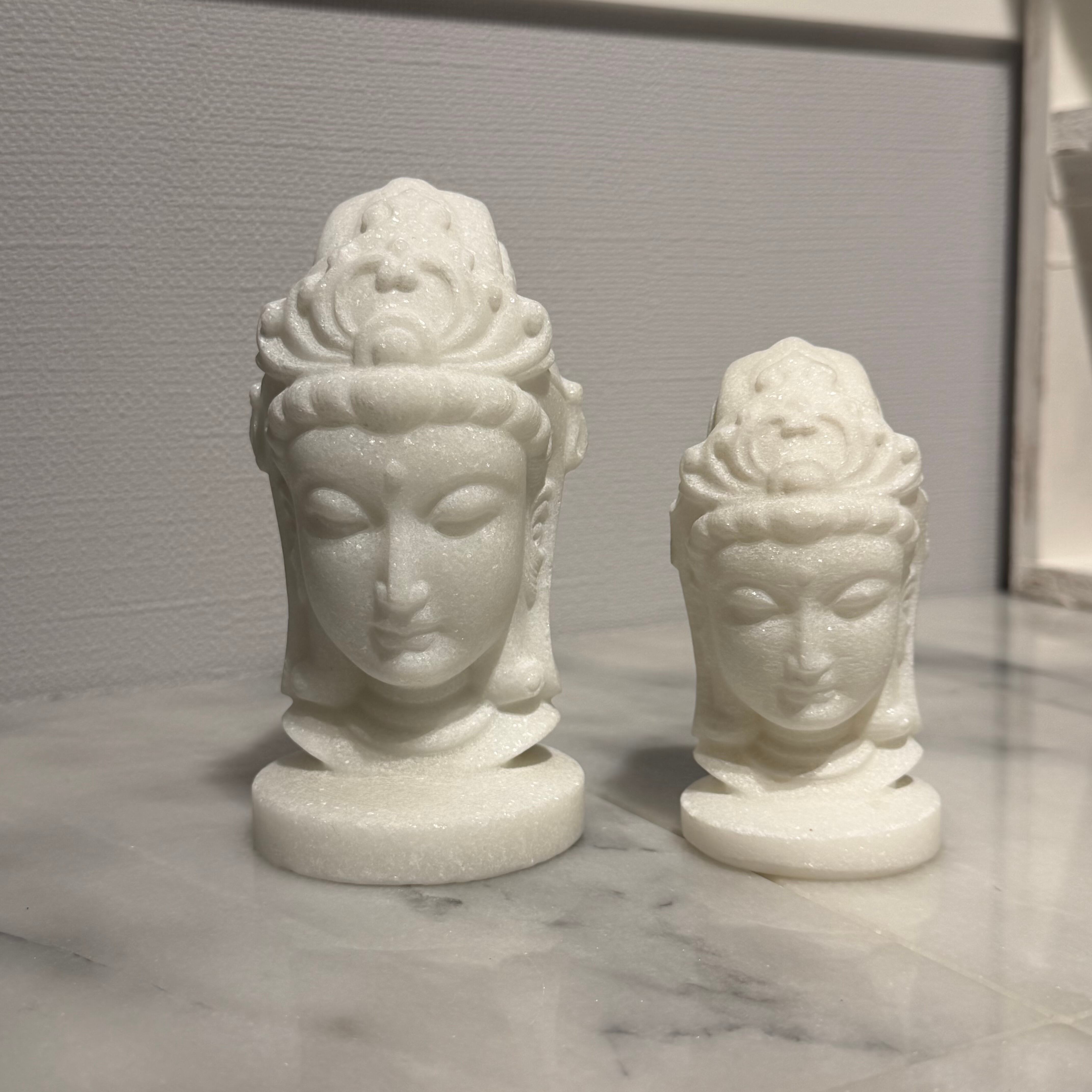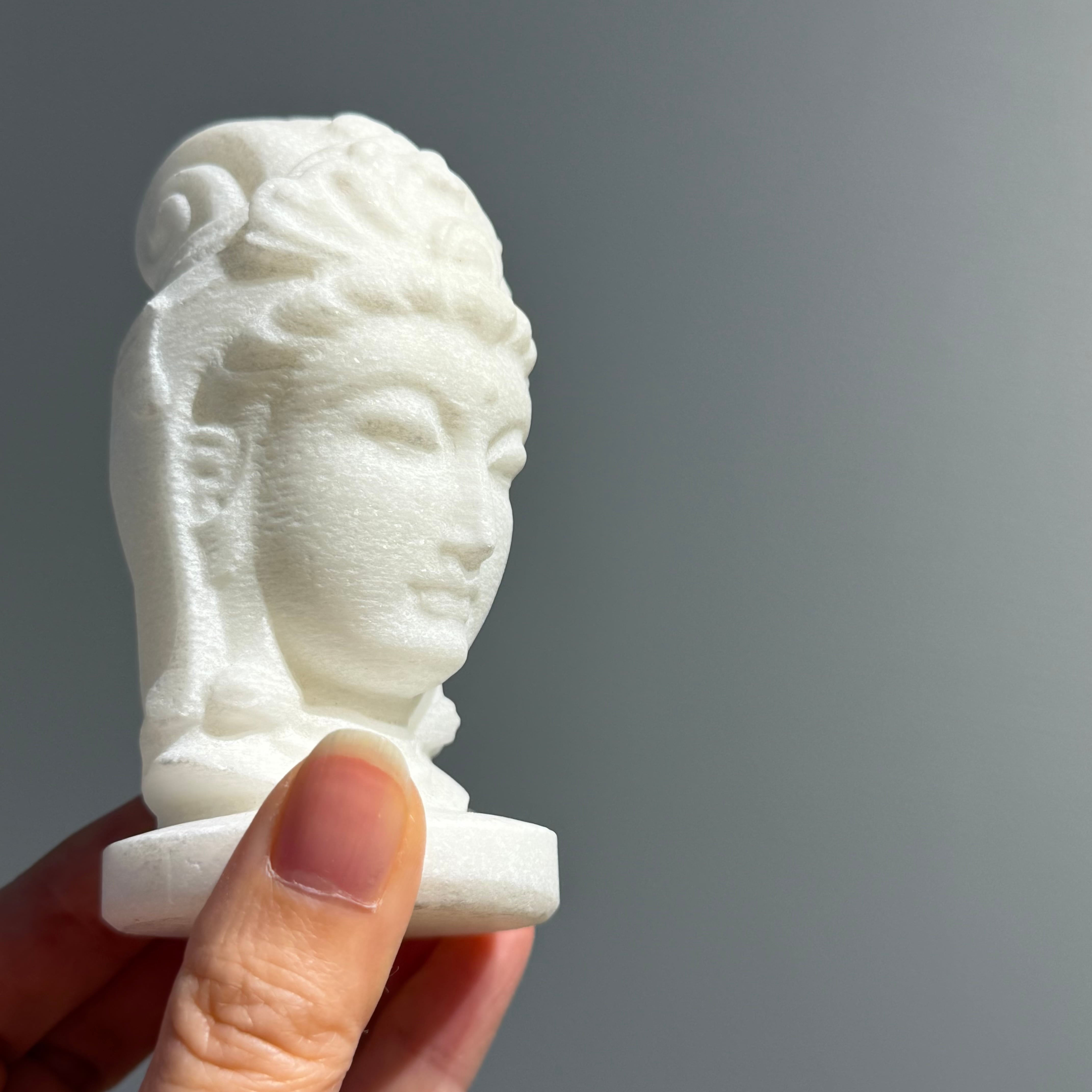 カービング(彫刻)に適した石質のため、観音様の穏やかな表情や髪飾りの細部まで丁寧に表現されています。