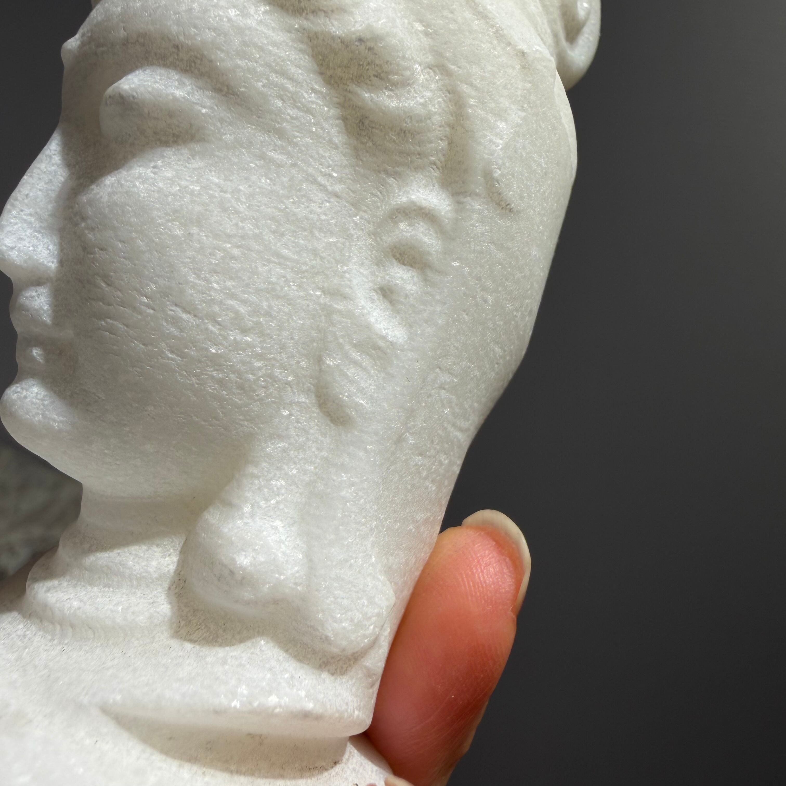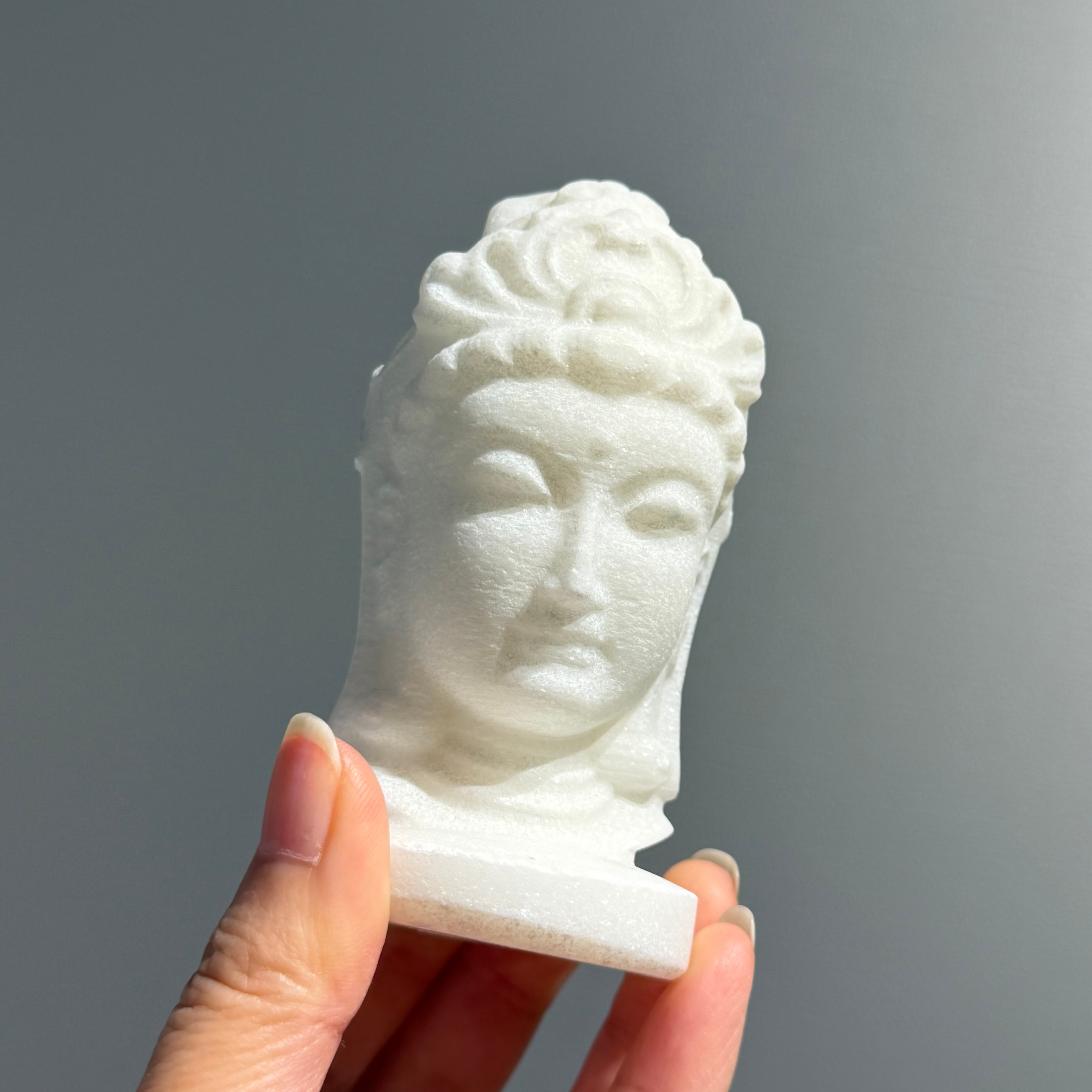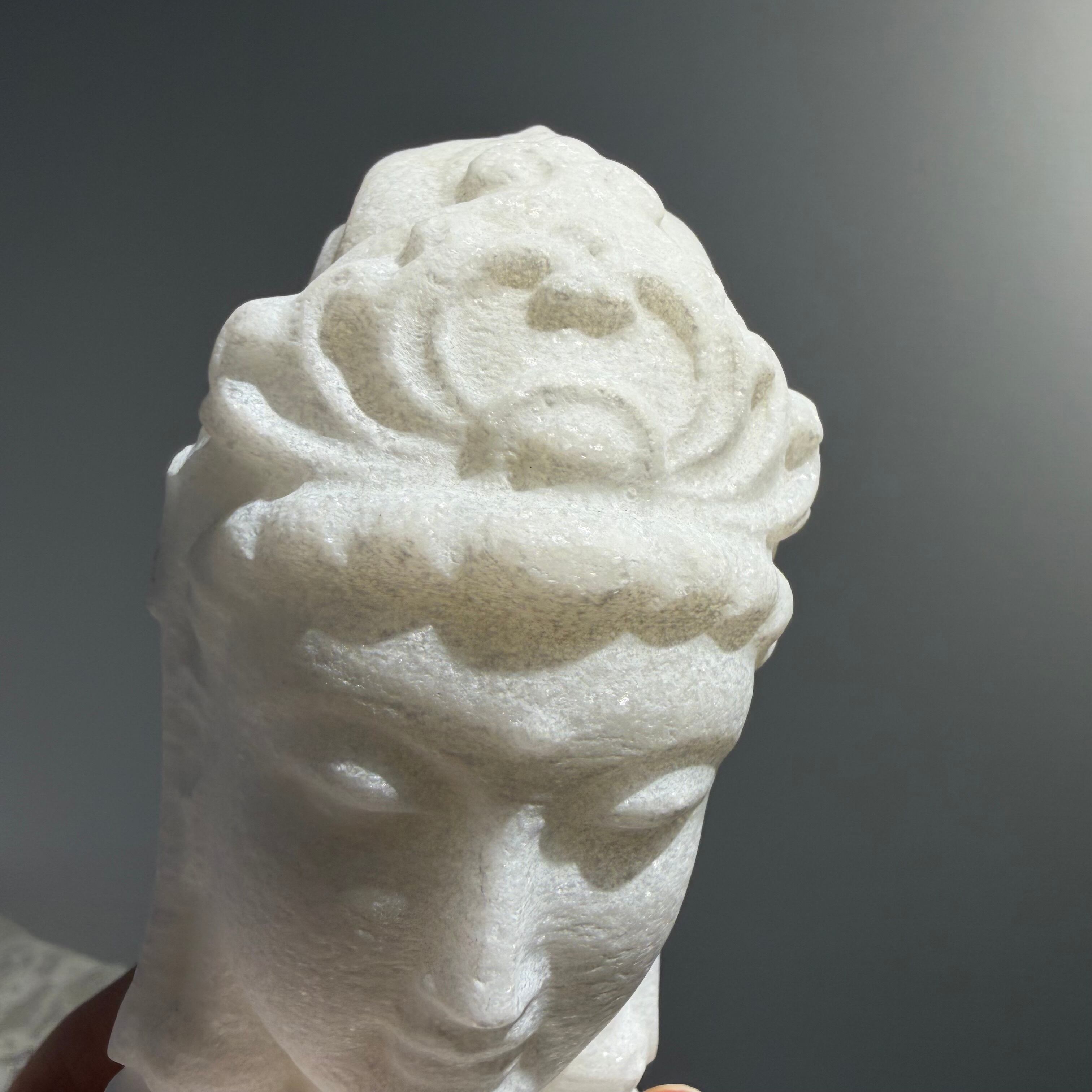 カービング(彫刻)に適した石質のため、観音様の穏やかな表情や髪飾りの細部まで丁寧に表現されています。