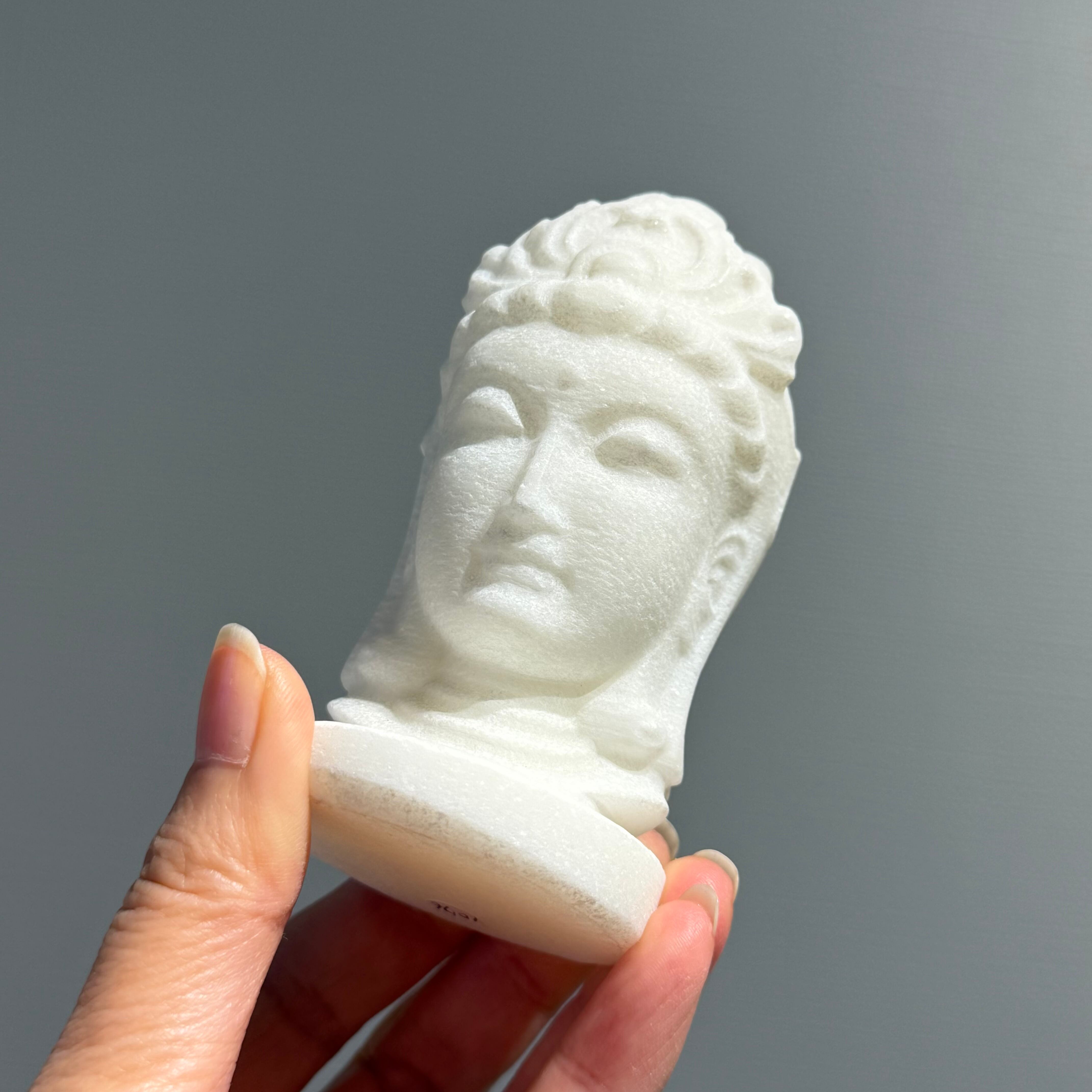 やわらかな乳白色の輝きをもつ、中国産「ホワイトジェイド」と呼ばれる石を使用した観音様のカービング、Sサイズです。