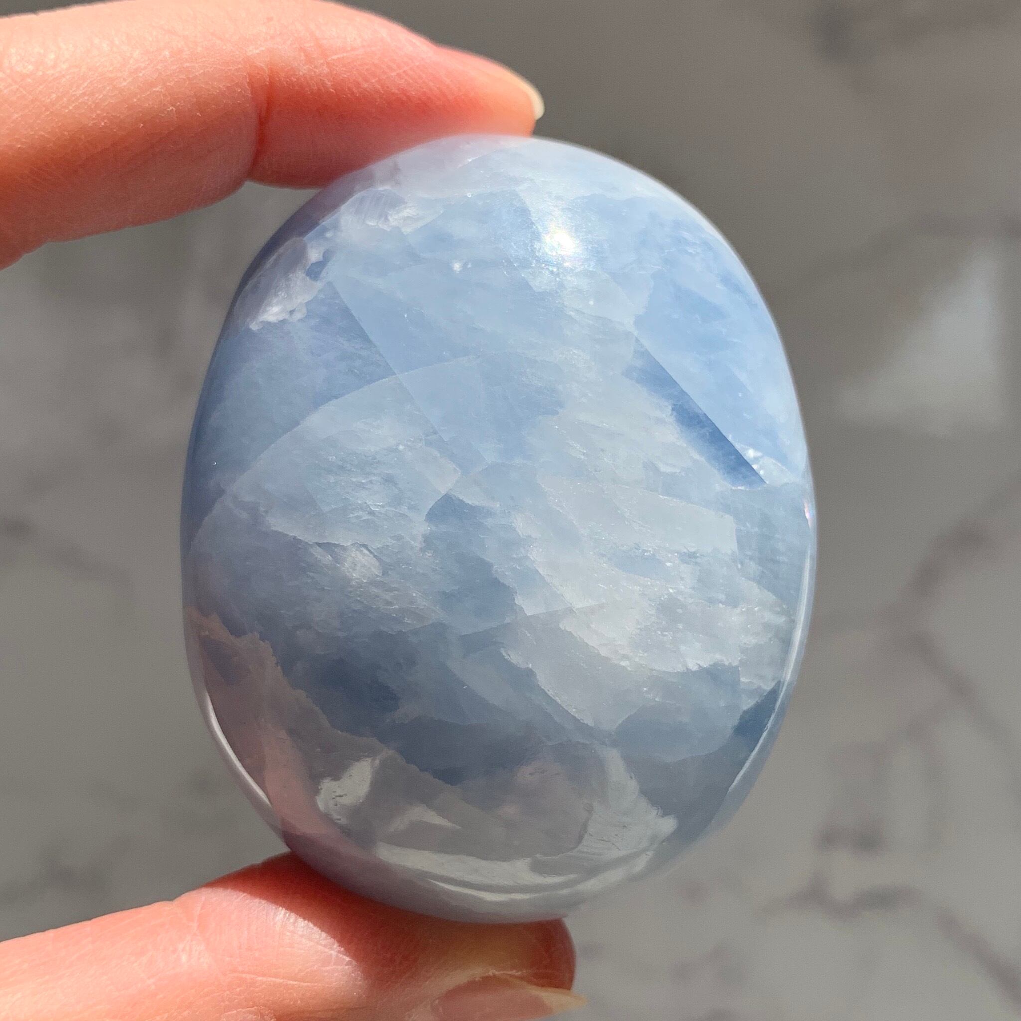 カルサイトにはイエロー、オレンジ、ピンク、グリーンなど他にも様々な色がありますが、ブルーカルサイトは、ほんのり透明感があり鮮やかな色合いのものと、ミルキーで淡い色合いのものがあり、産地により異なります。