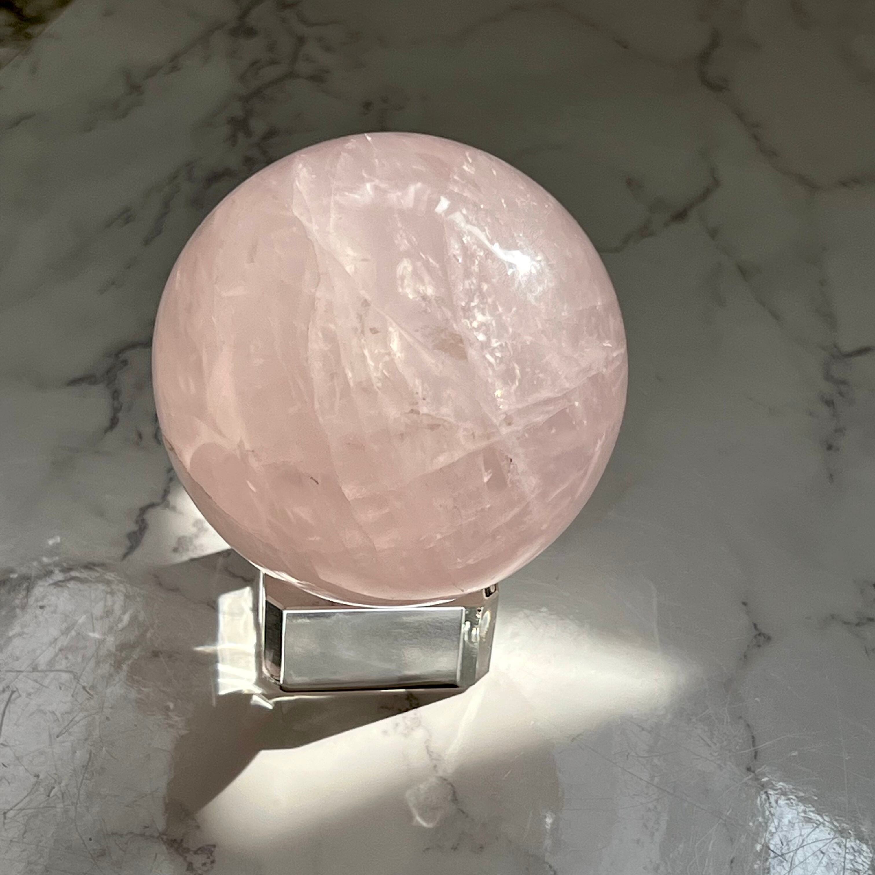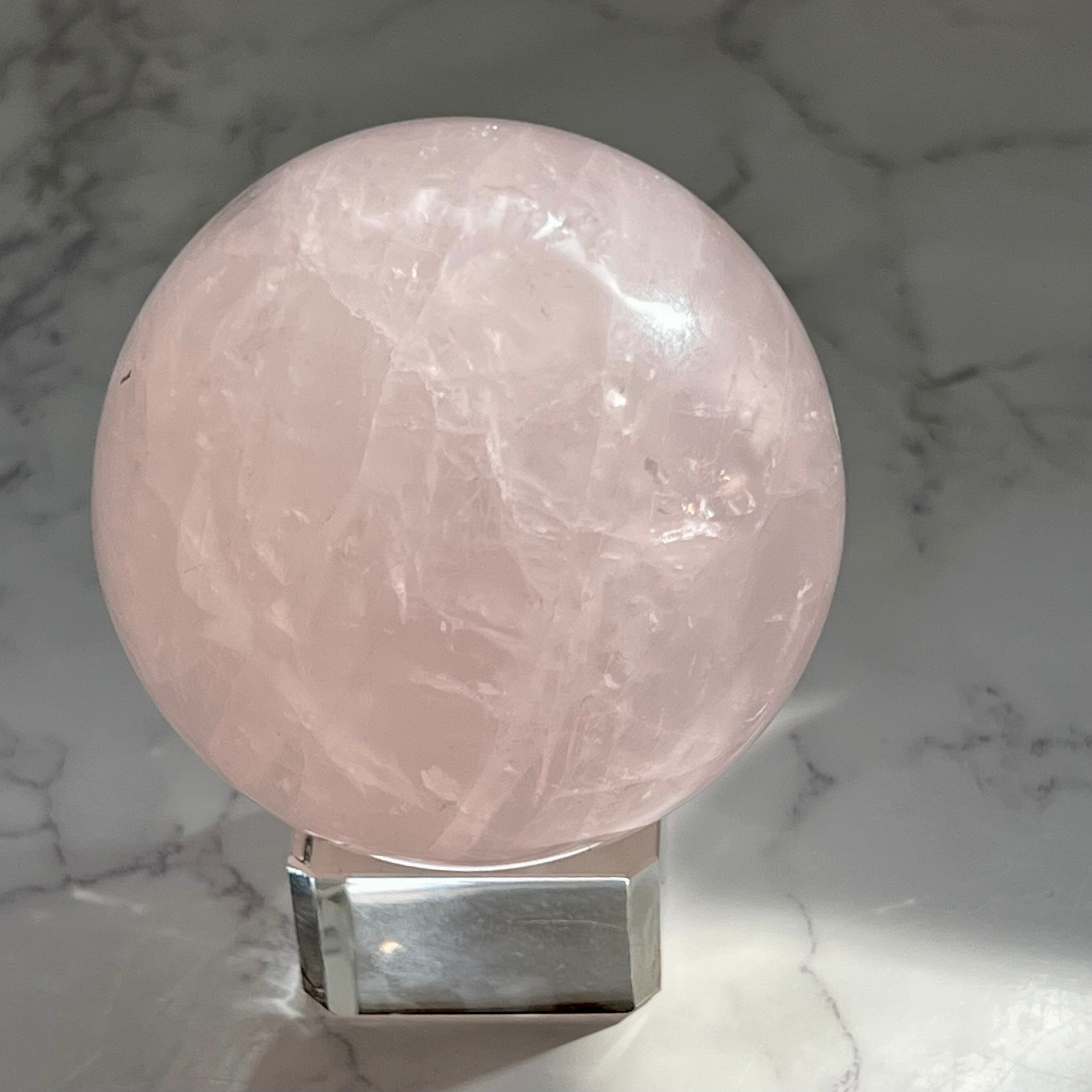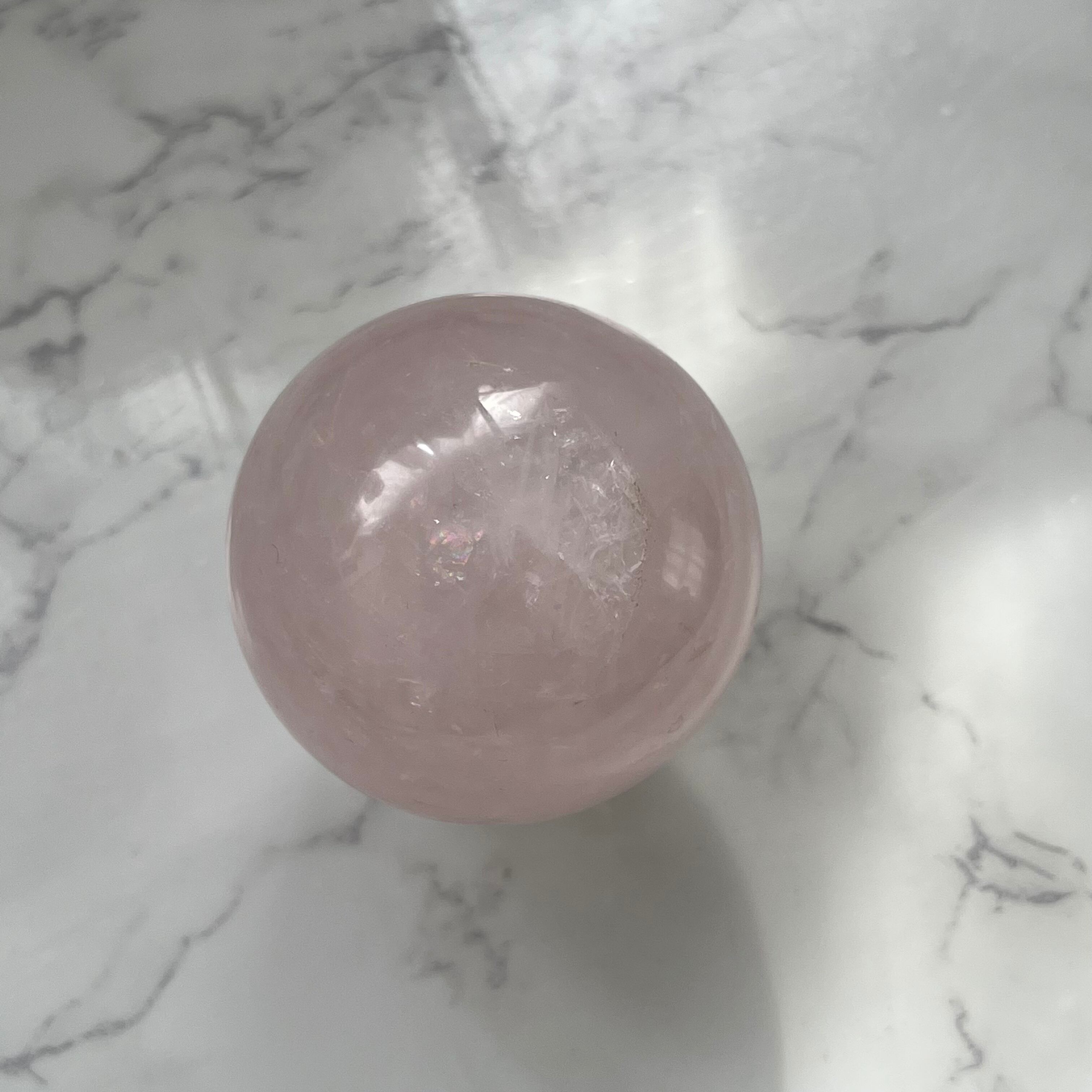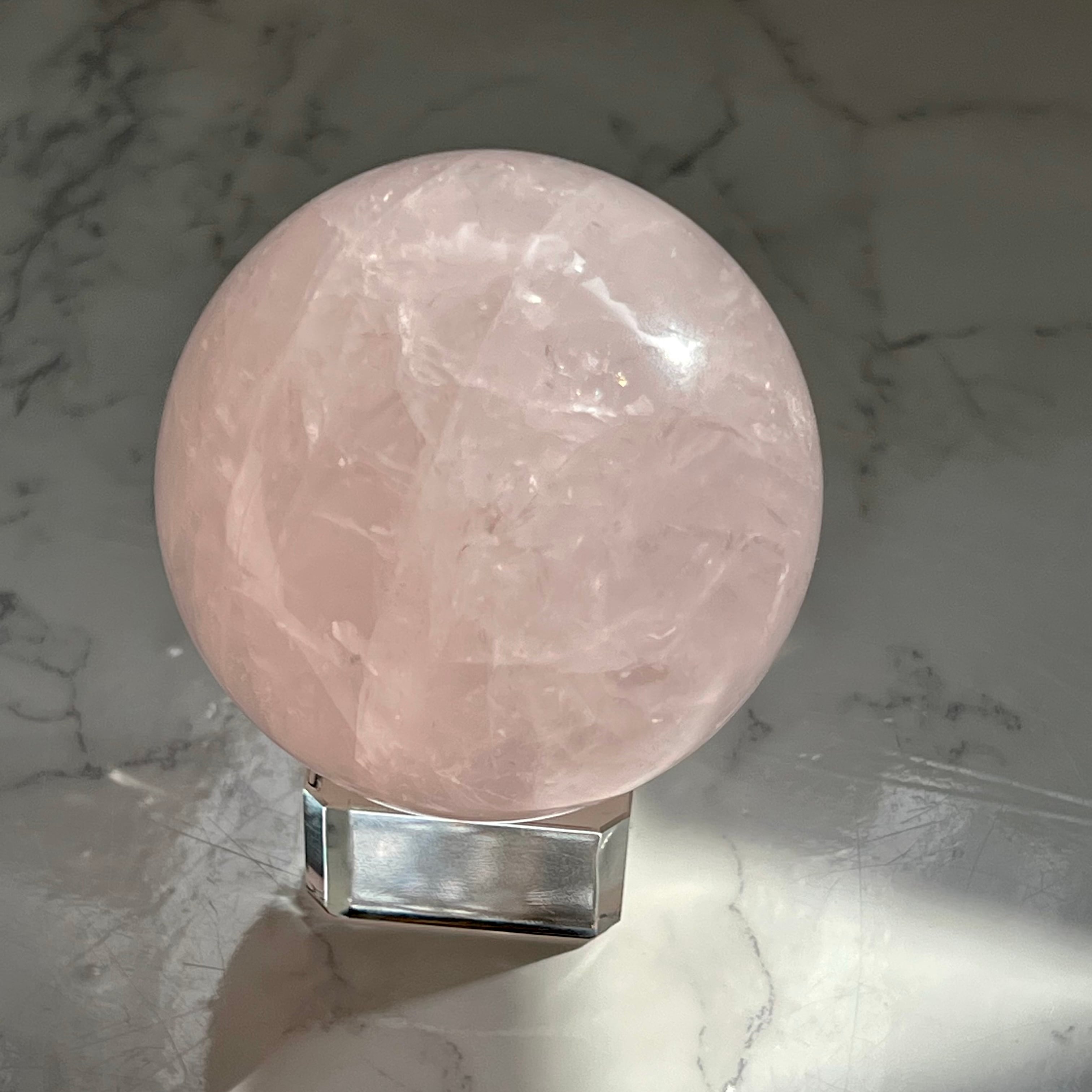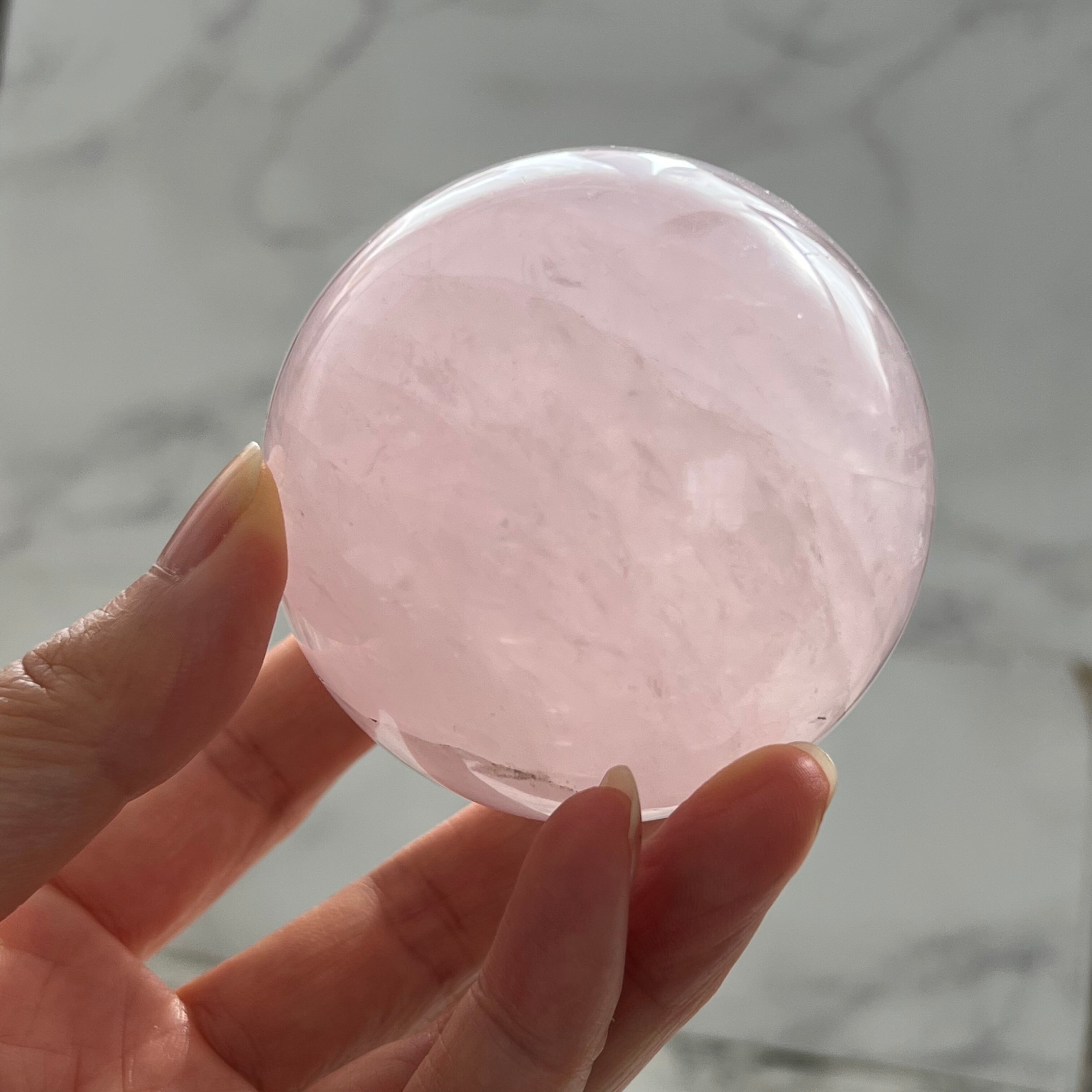 あちらこちらからレインボーが見える、とても美しいローズクォーツは、透け感もあり、強い光を照らすと六条のスターが見られます。