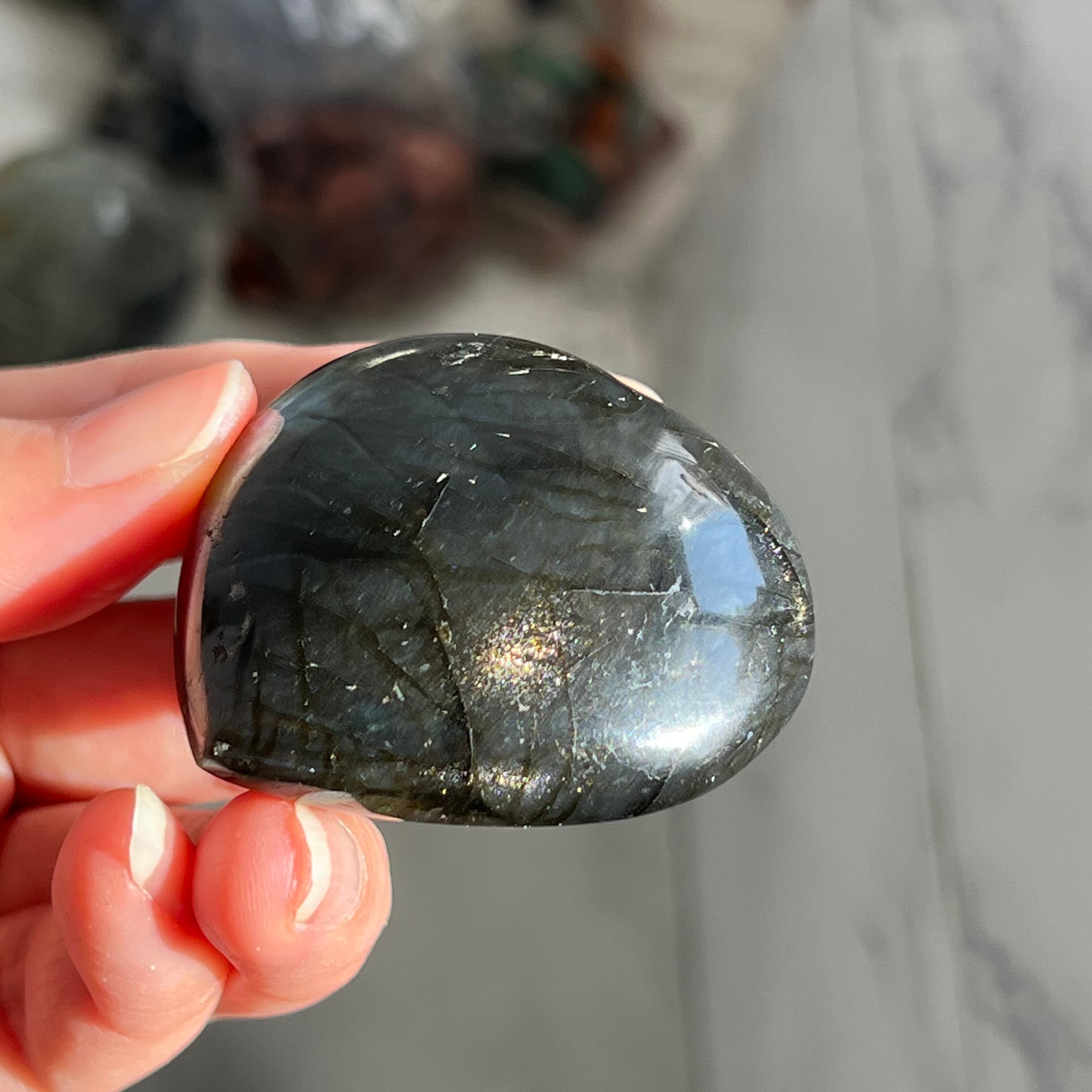 ラブラドライトハートシェイプ*天然石インテリア*6ハート型*置き物