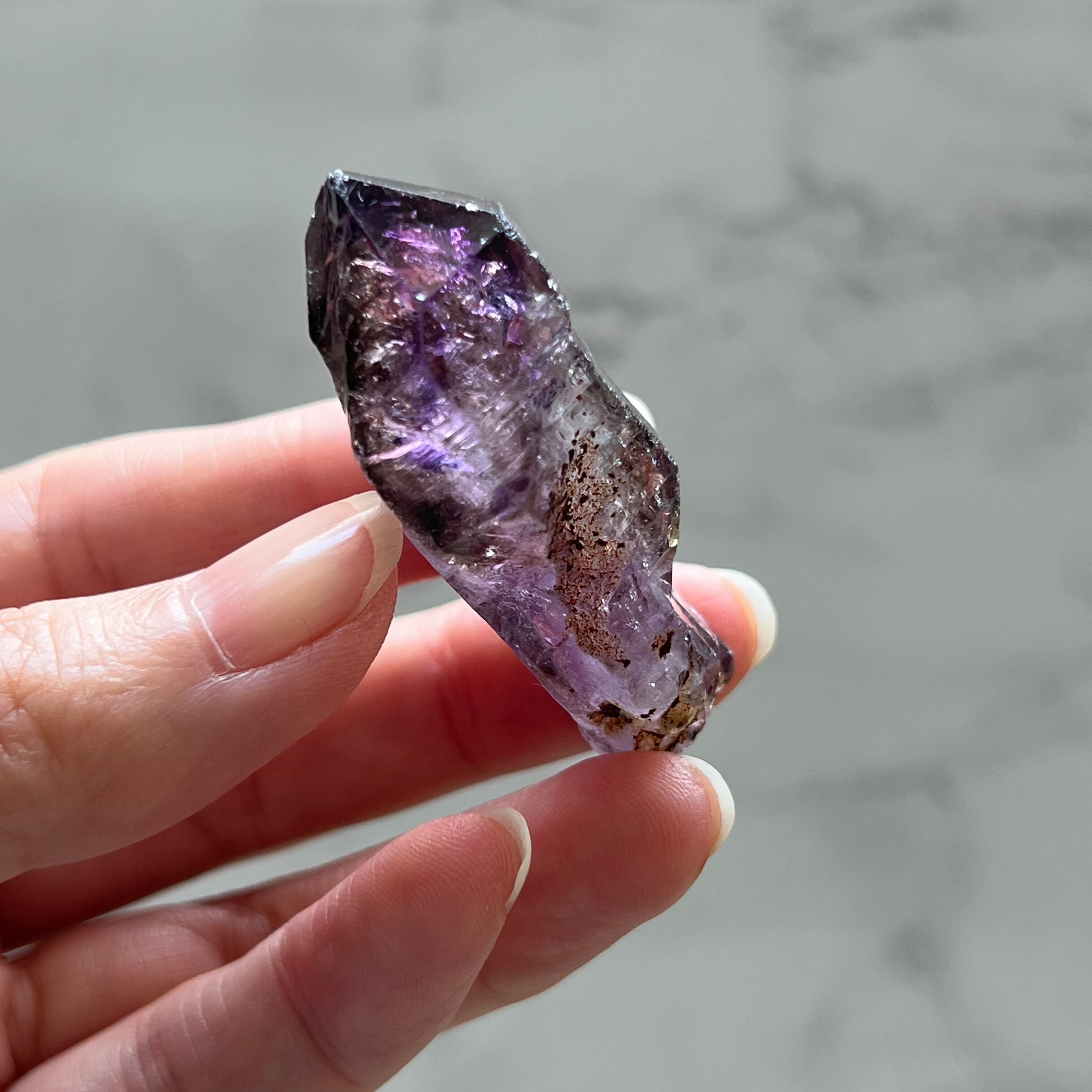 とても透明感のある美しいエレスチャルアメジストの原石です。