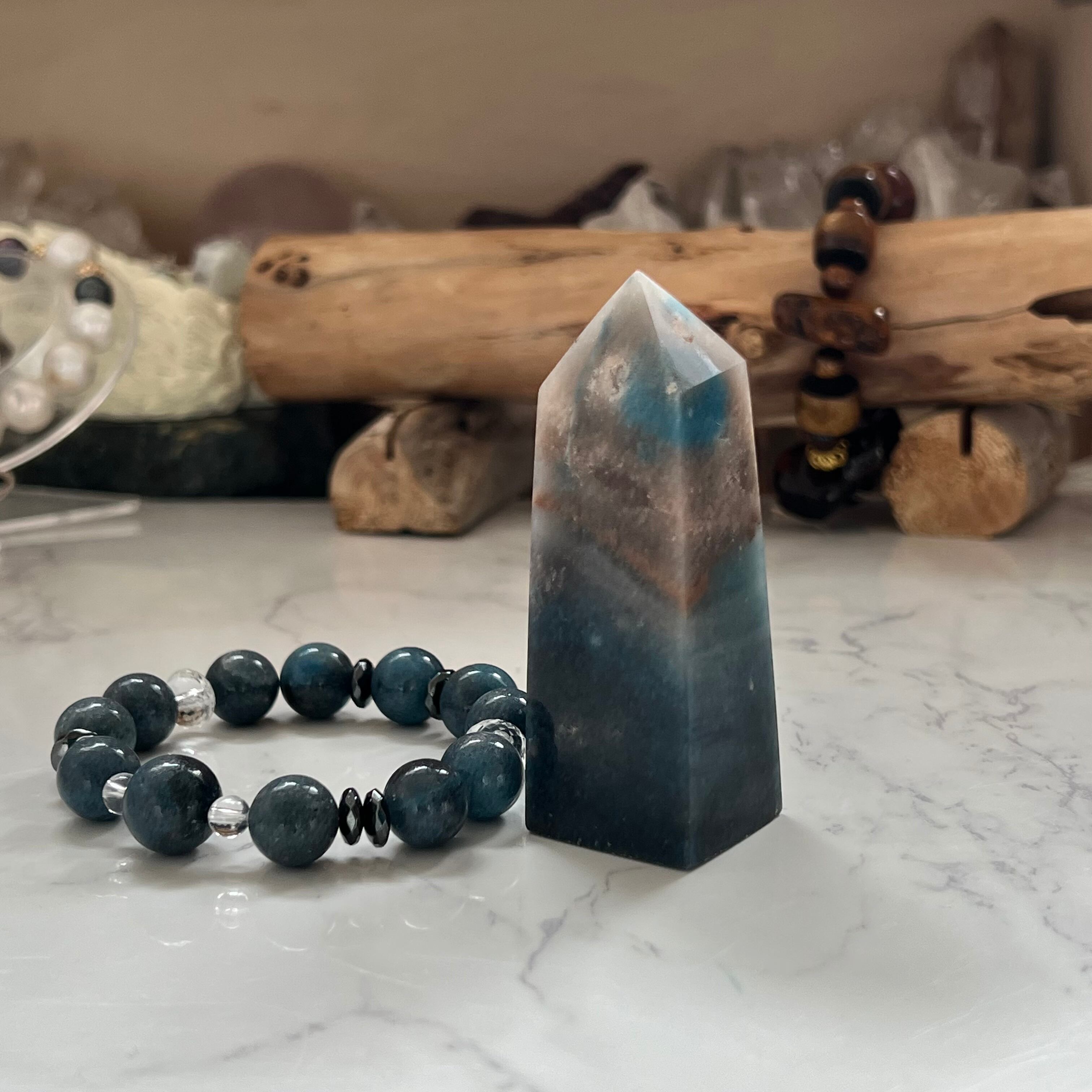 希少*トロレアイトポイント2*スコルザライト(鉄天藍石)インクォーツ*天然石インテリア*天然石タワー*置き物