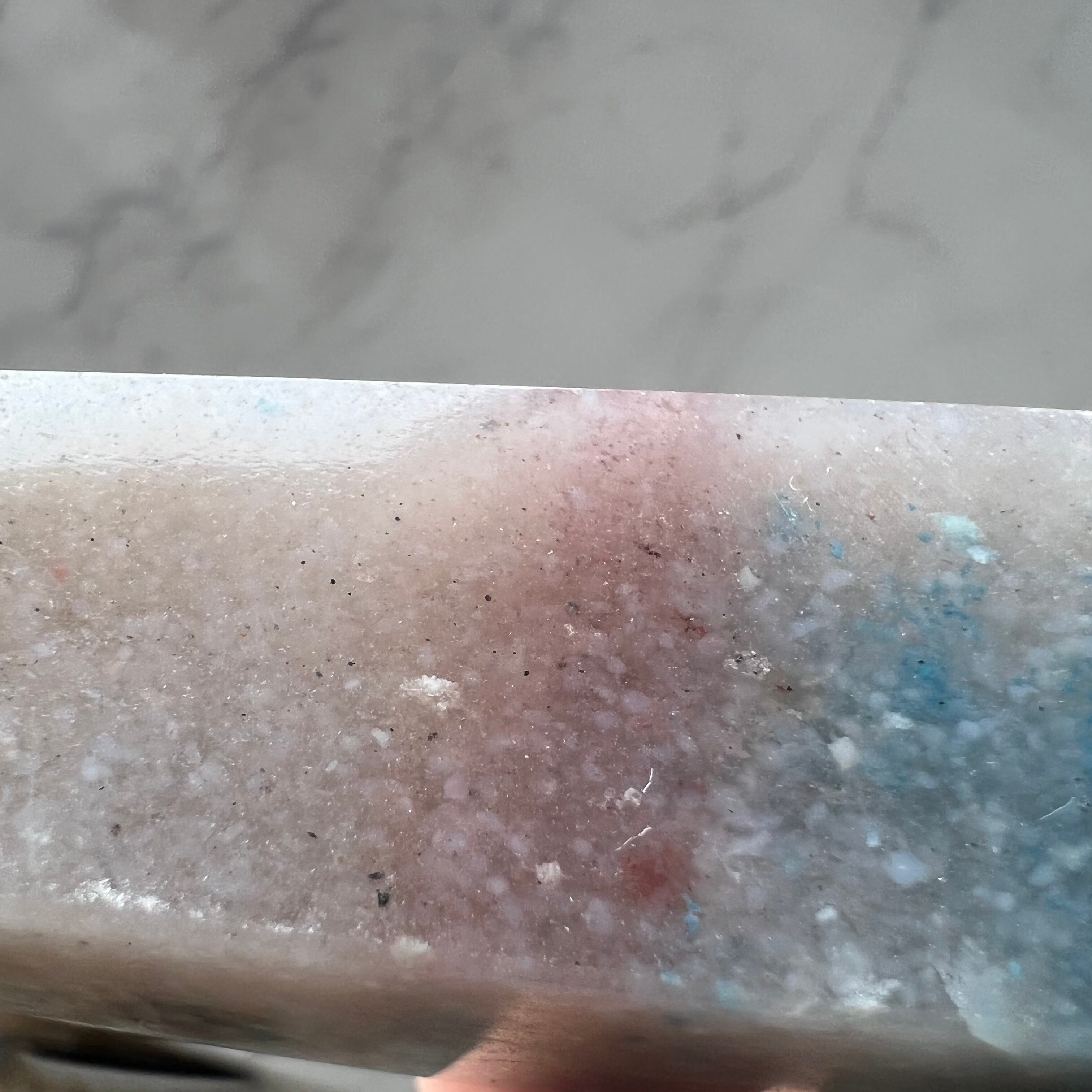 ベースはスコルザライトとクォーツ(石英)が共生し、ラズライト(天藍石)や、スモーキークォーツが含まれることもあります。
