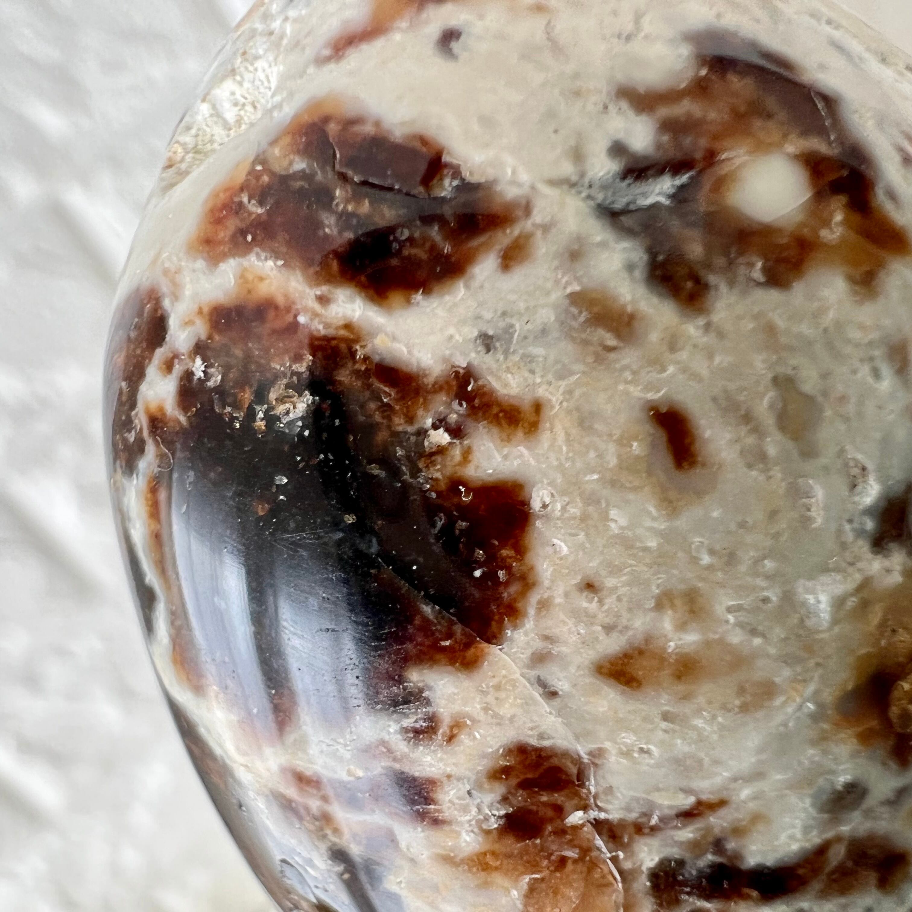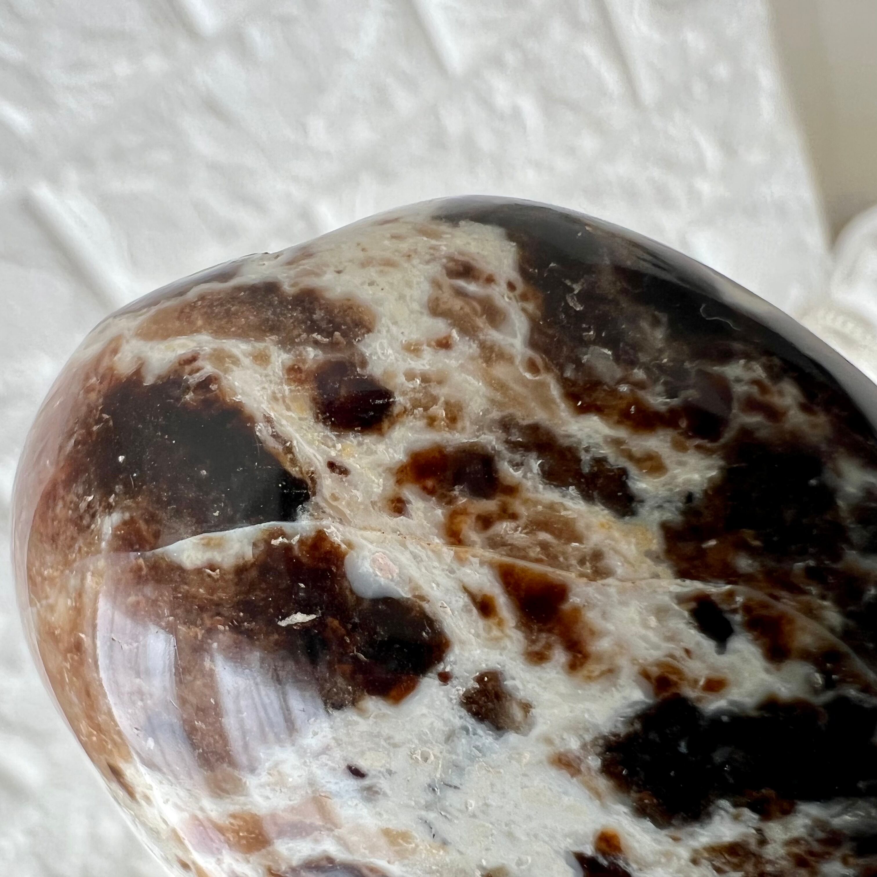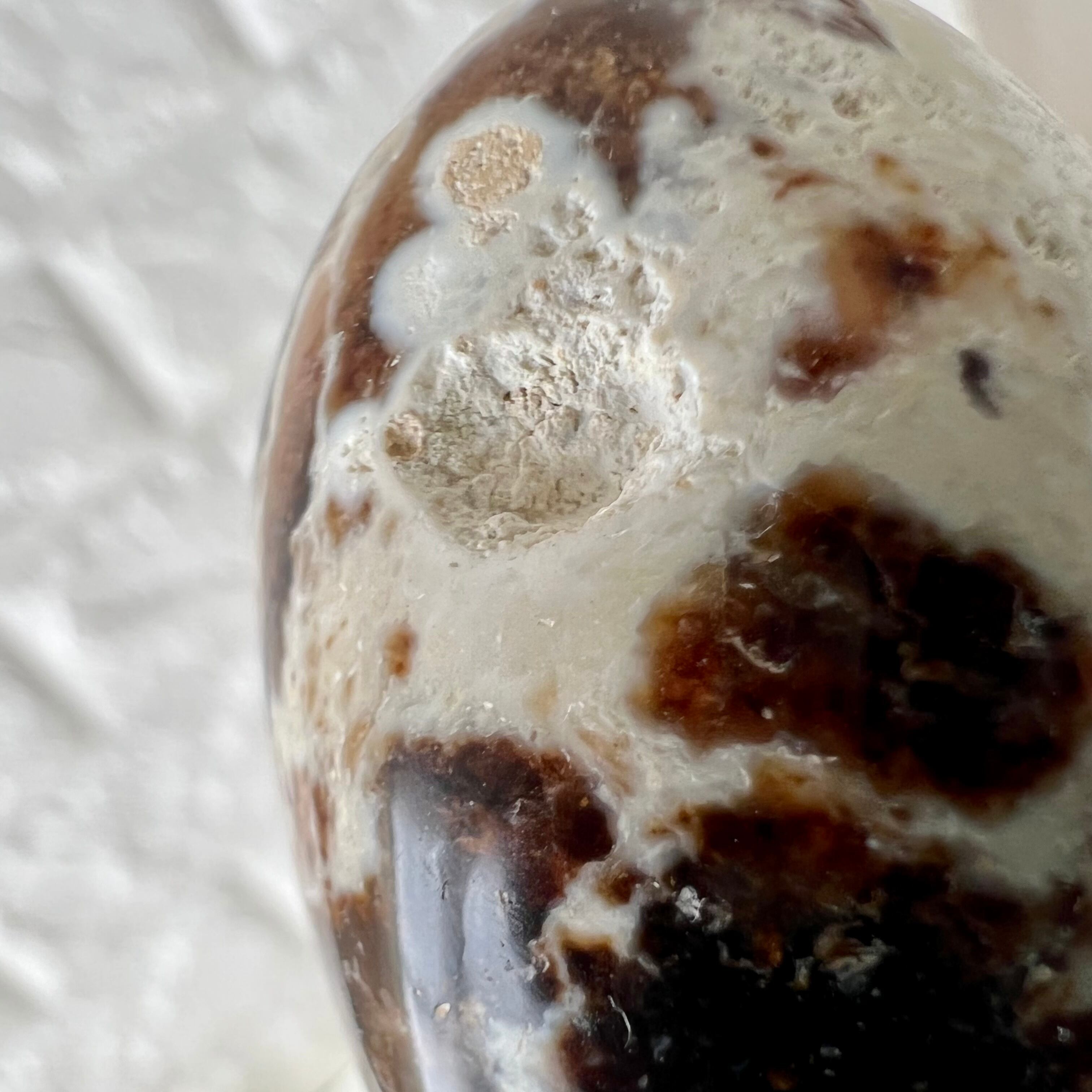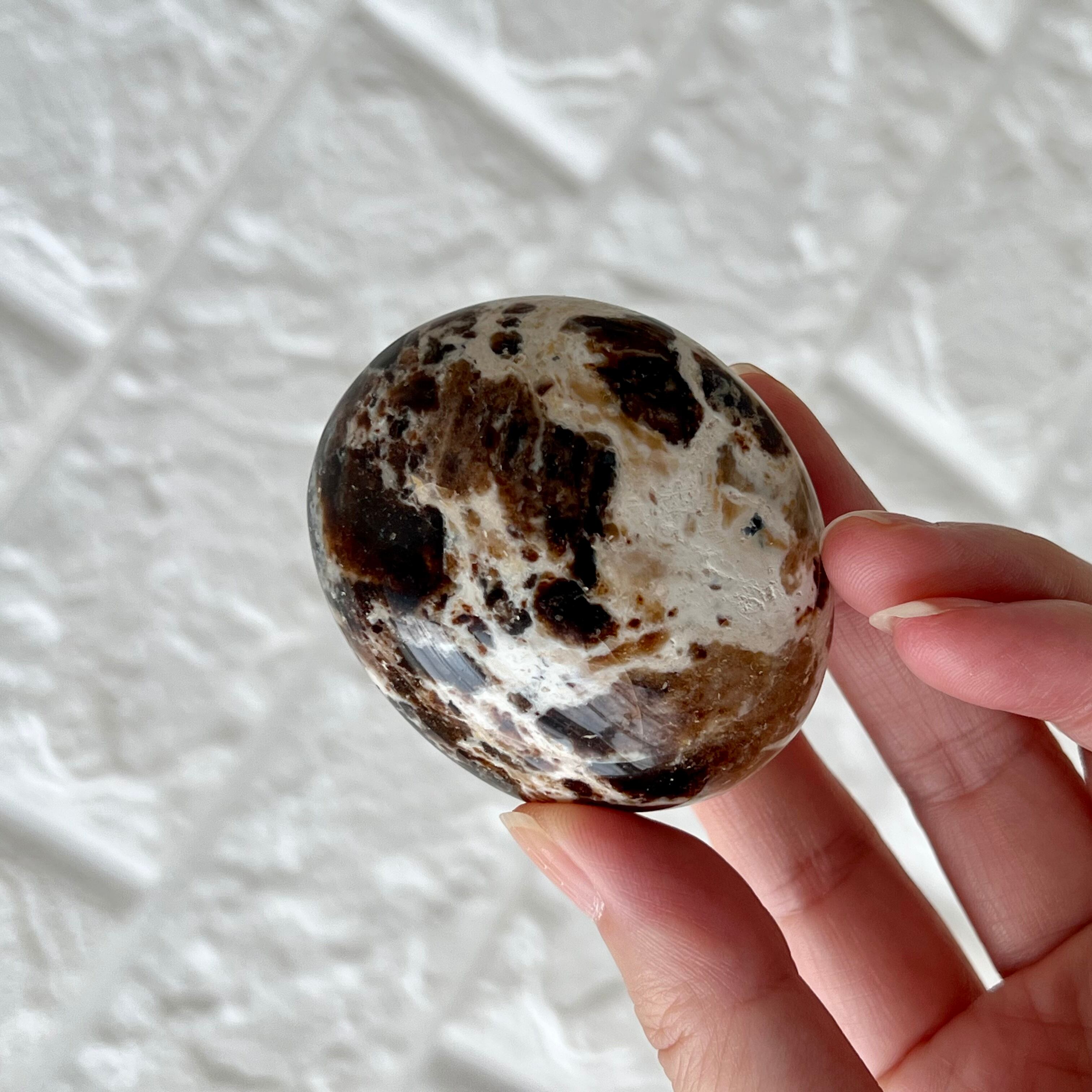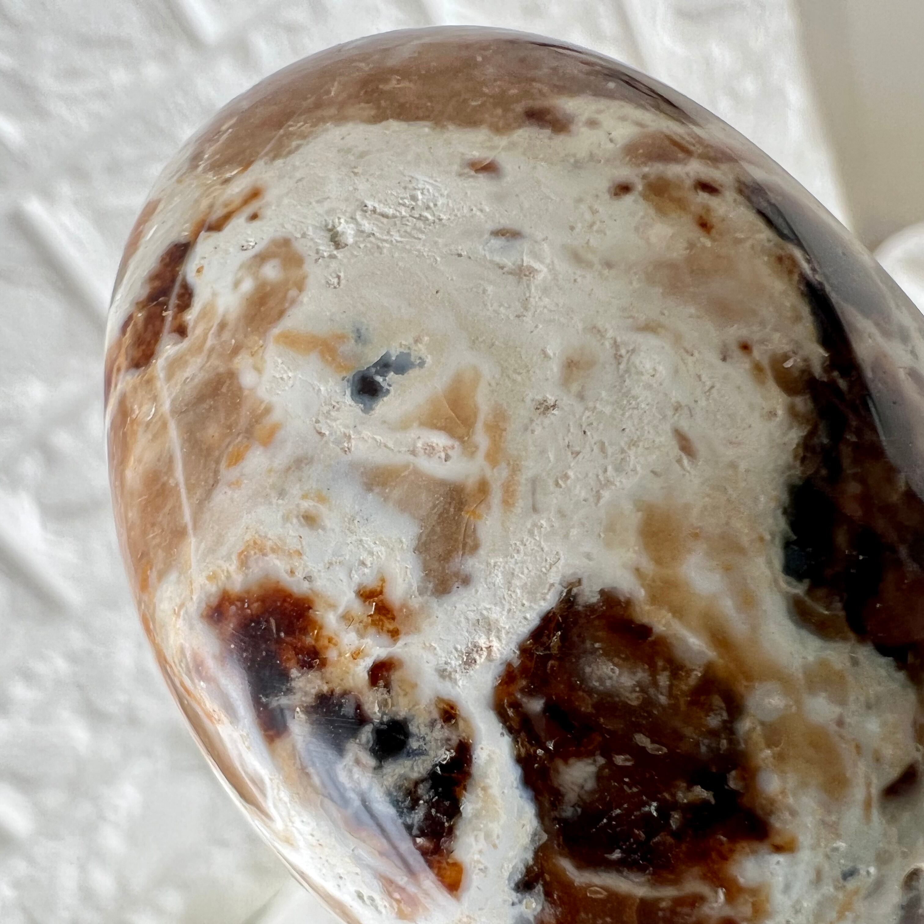 遊色効果を持たないコモンオパールのひとつ、ブラックオパール(グレーオパールともいいます)のパームです。