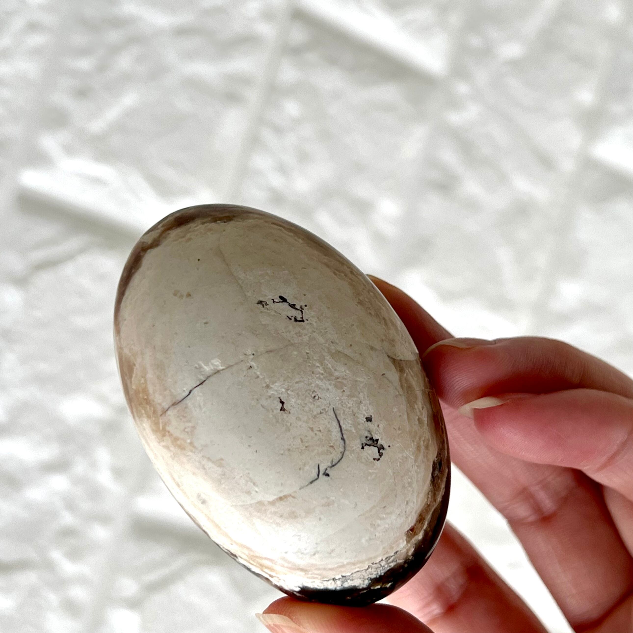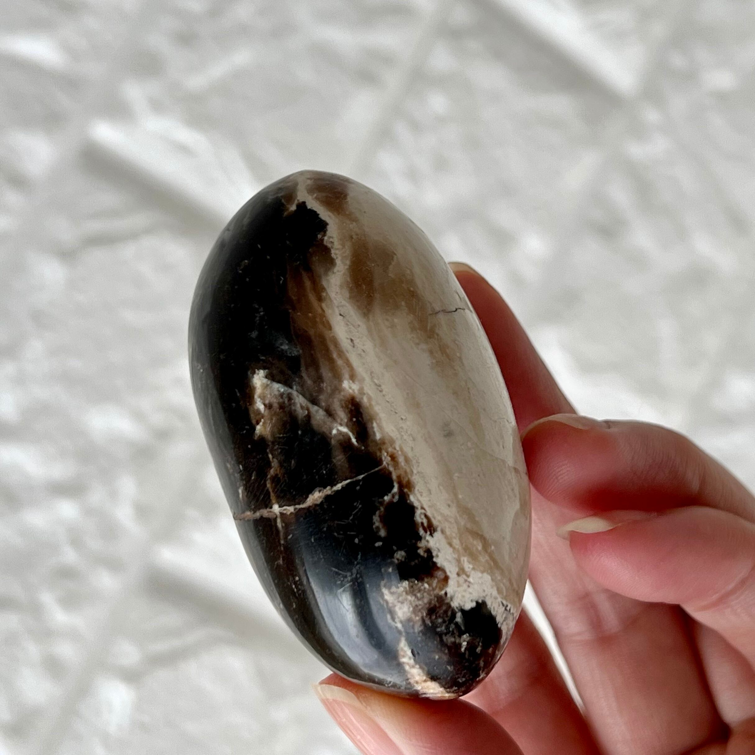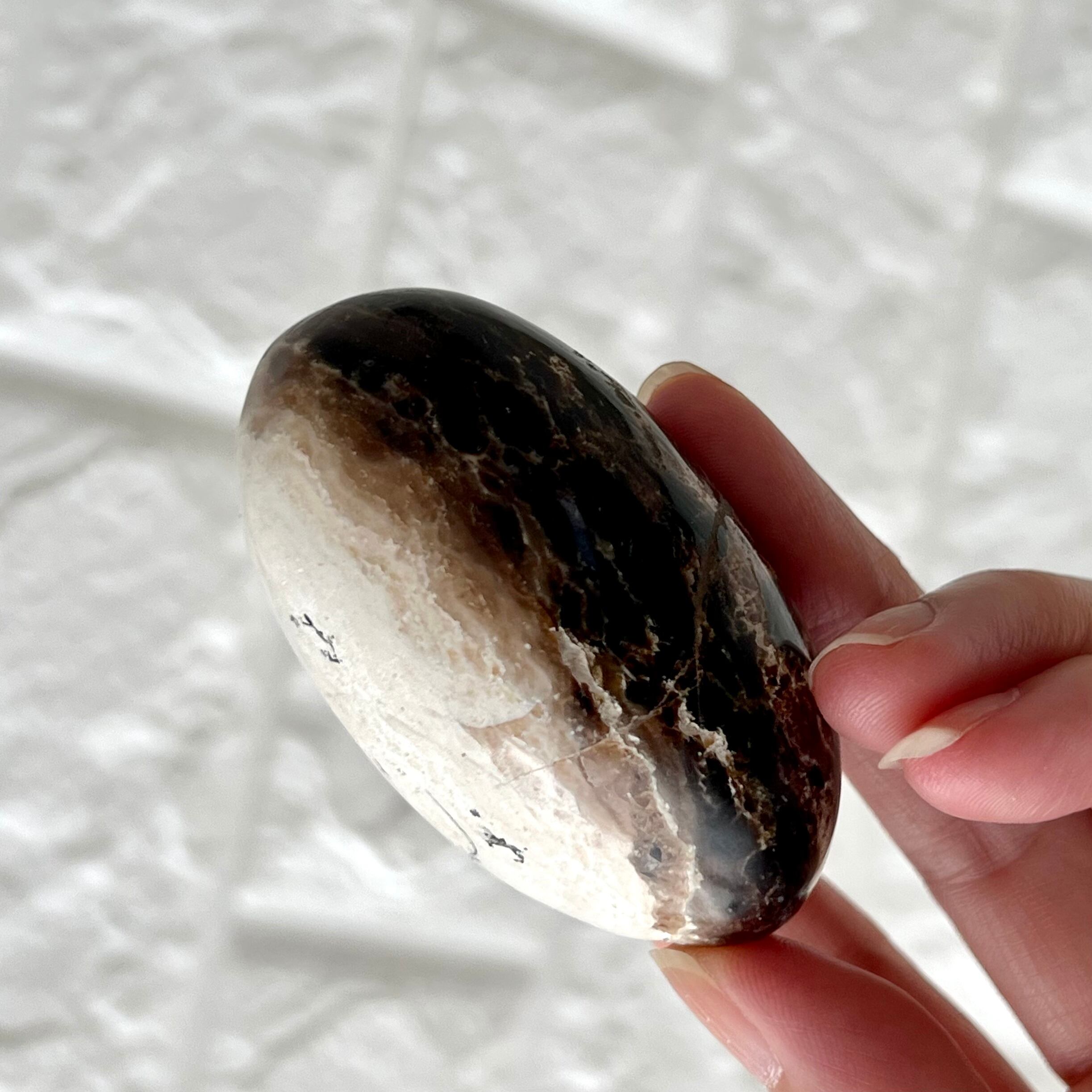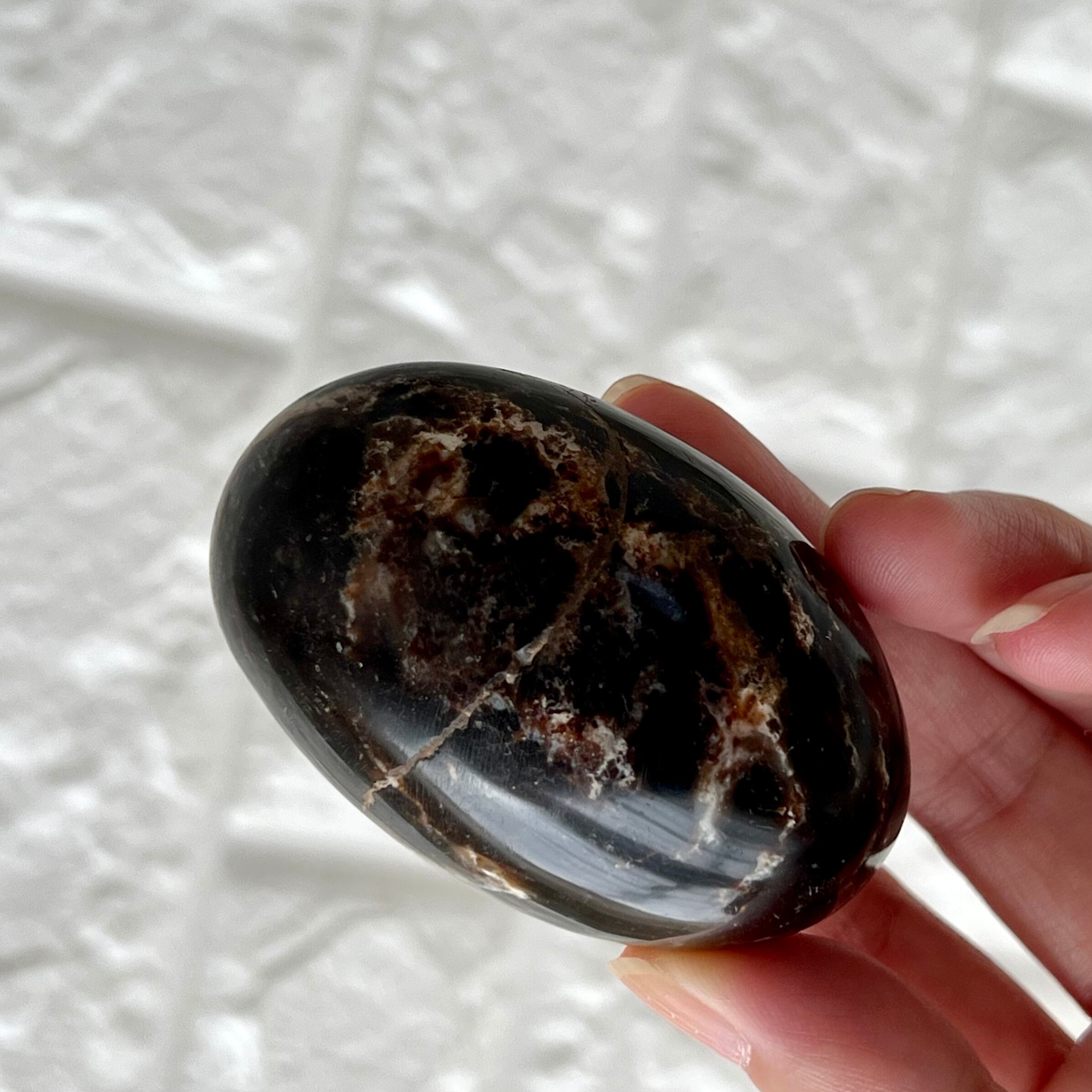 遊色効果を持たないコモンオパールのひとつ、ブラックオパール(グレーオパールともいいます)のパームです。