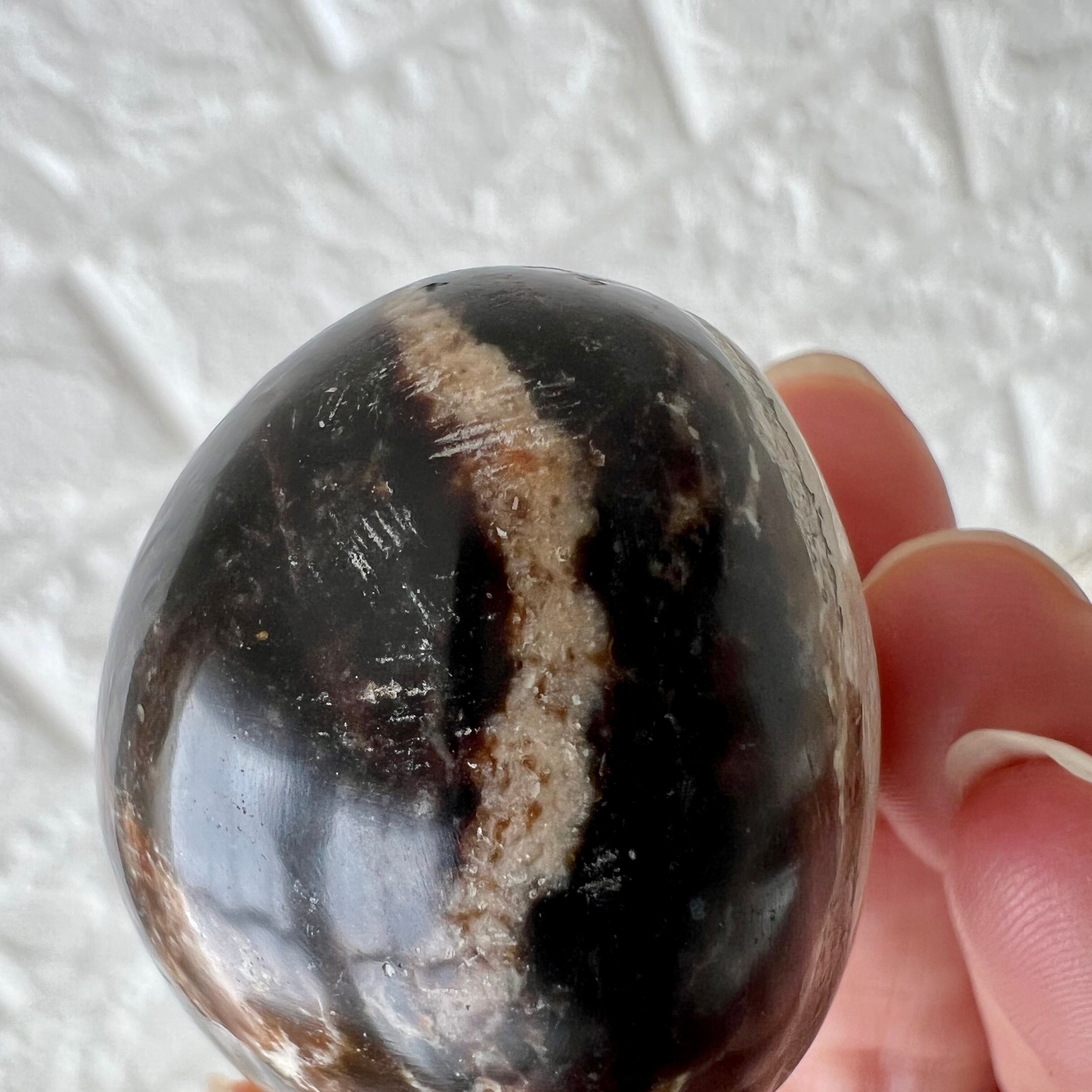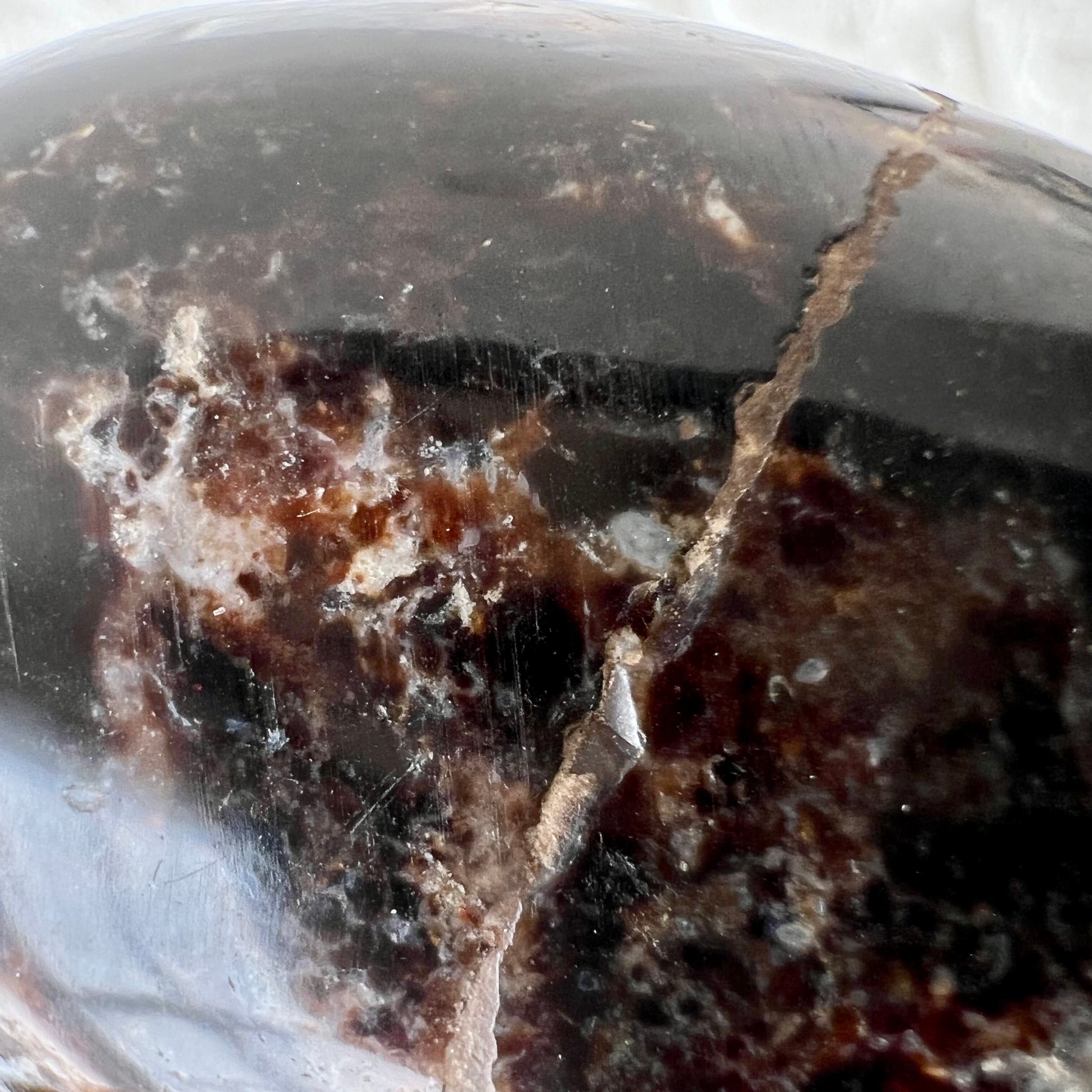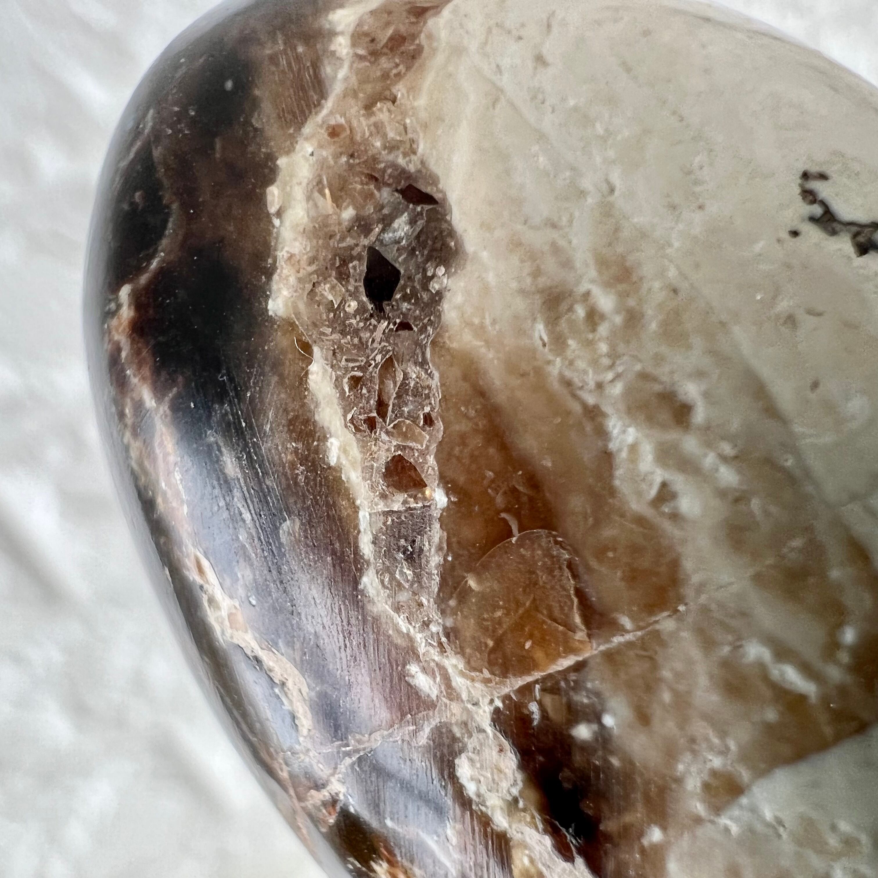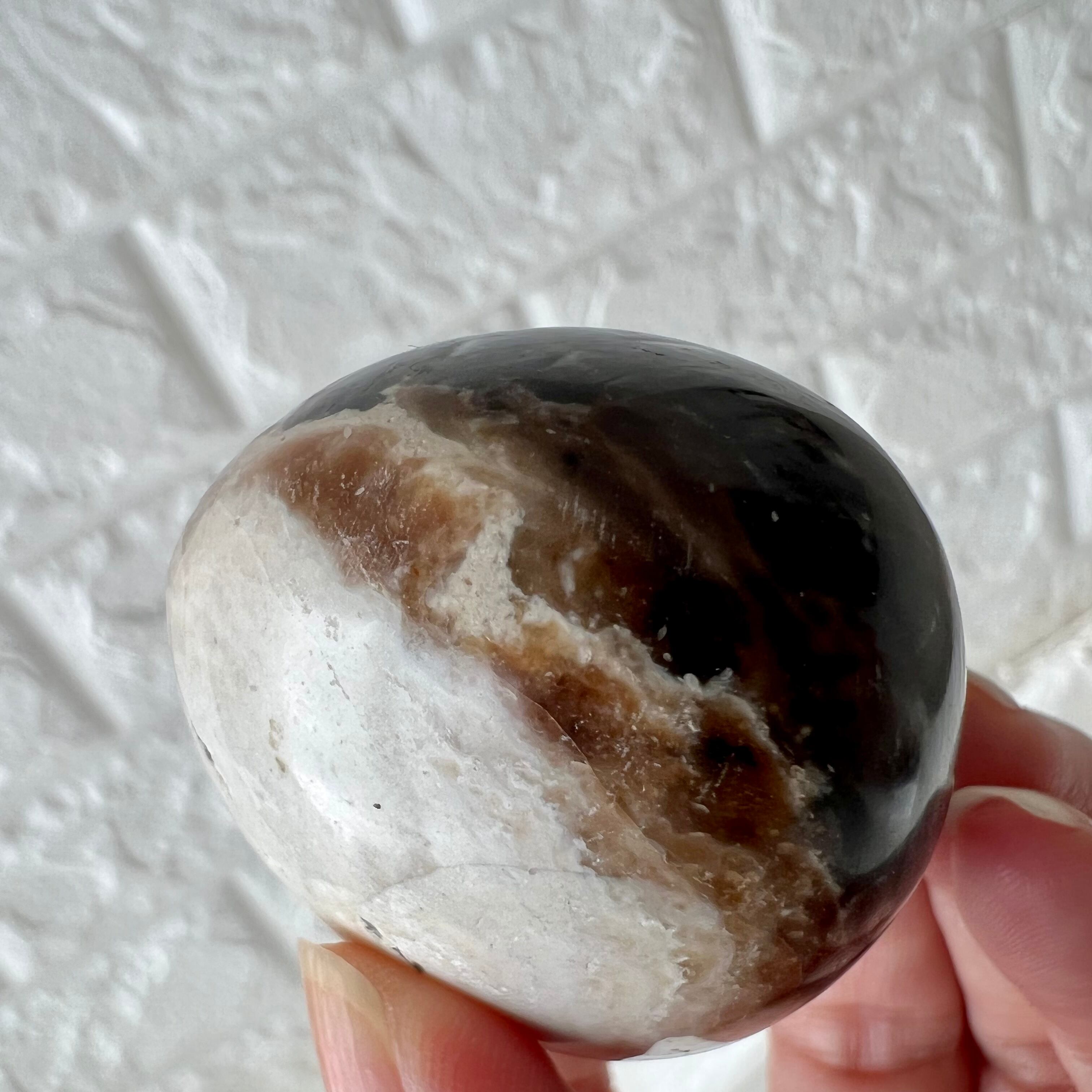 遊色効果を持たないコモンオパールのひとつ、ブラックオパール(グレーオパールともいいます)のパームです。