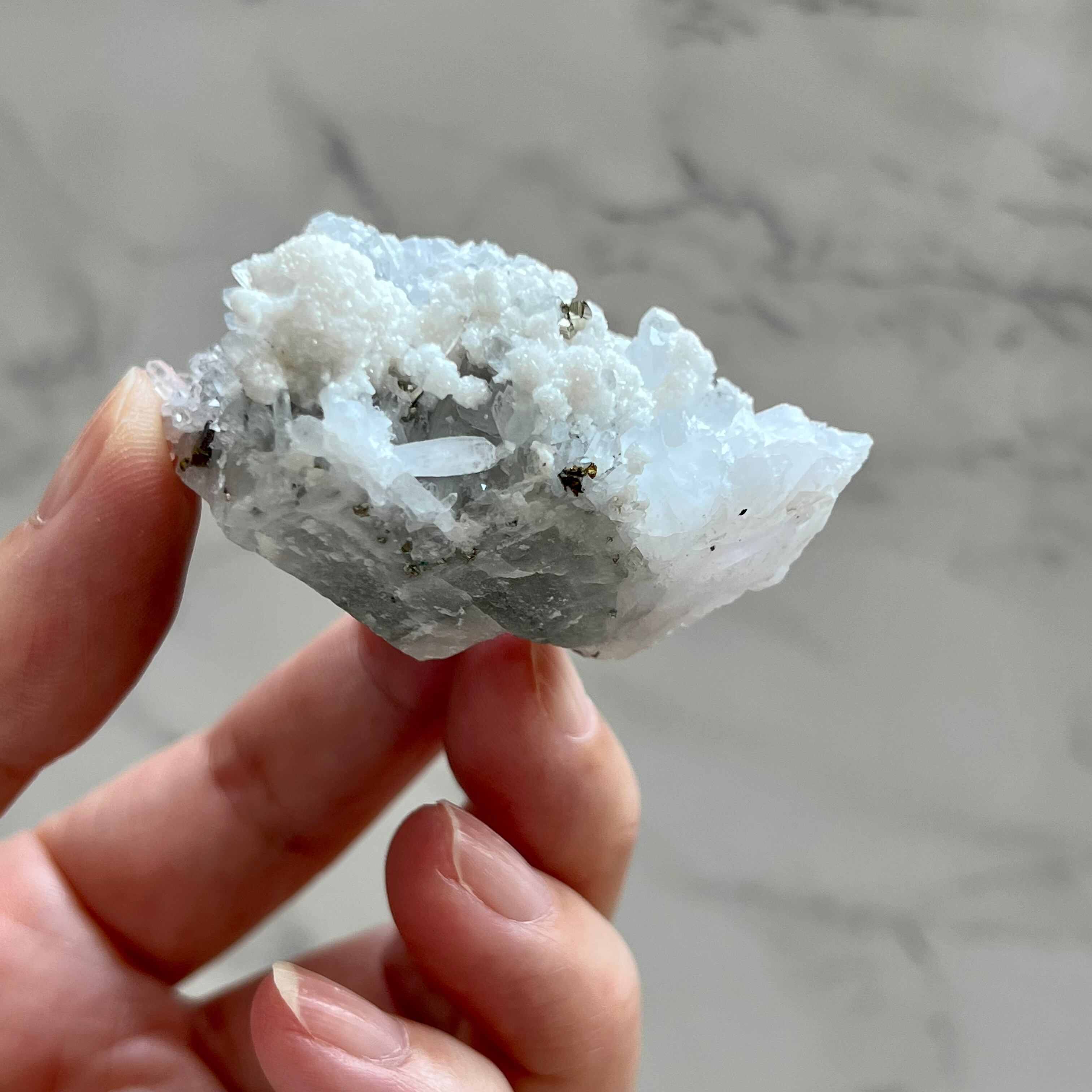 ◆素材:マンガノカルサイト・水晶・パイライト