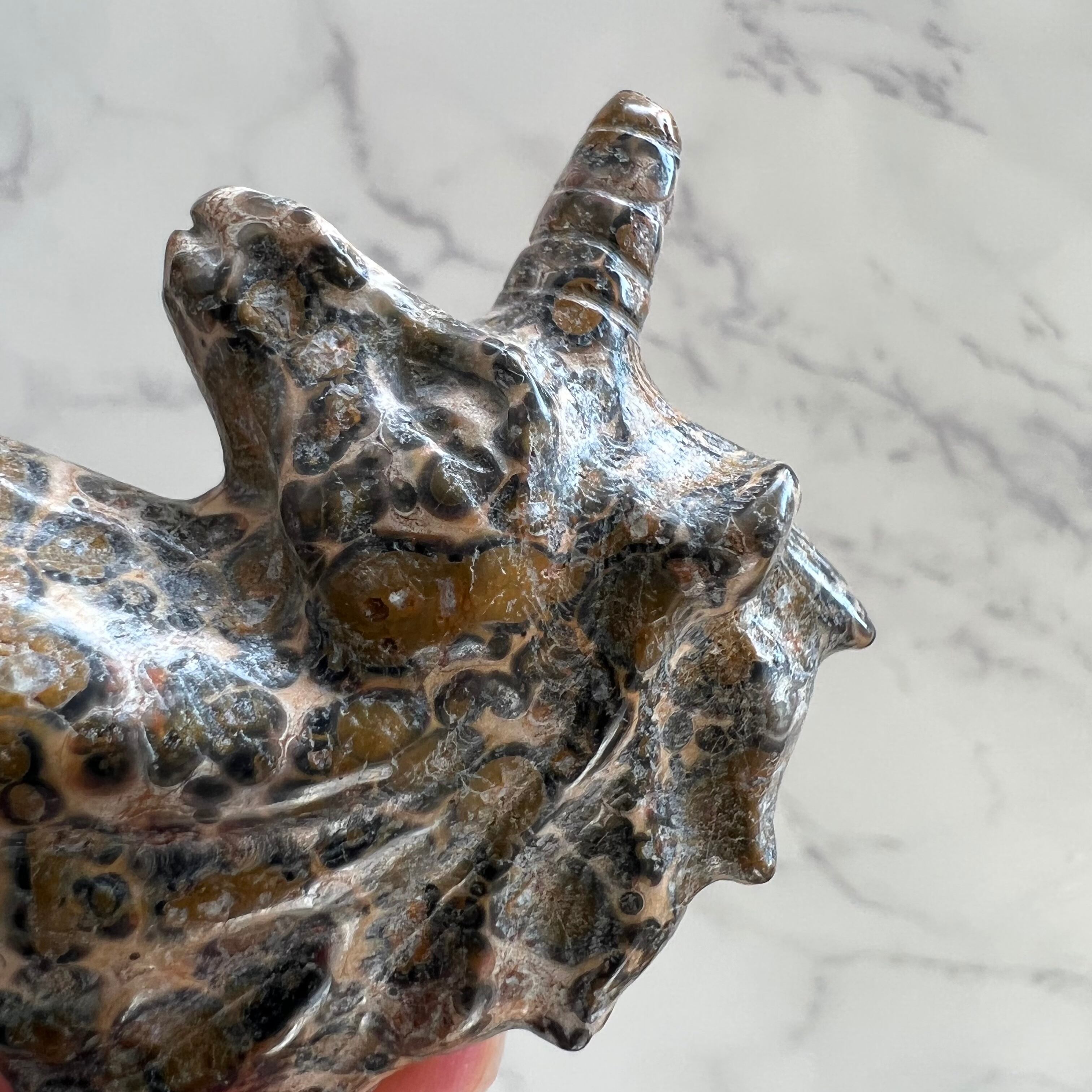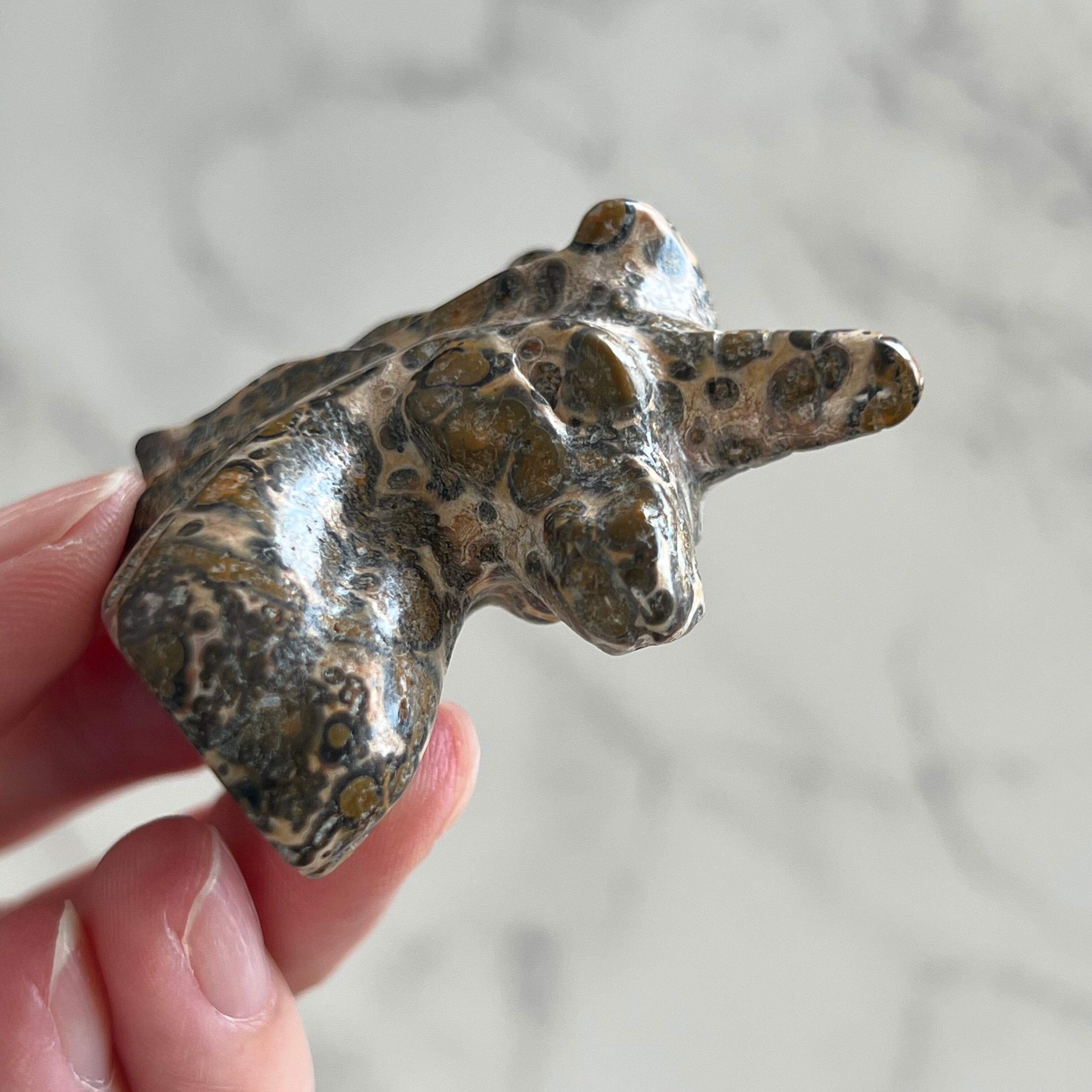 レオパードスキンジャスパーのユニコーンカービングです。