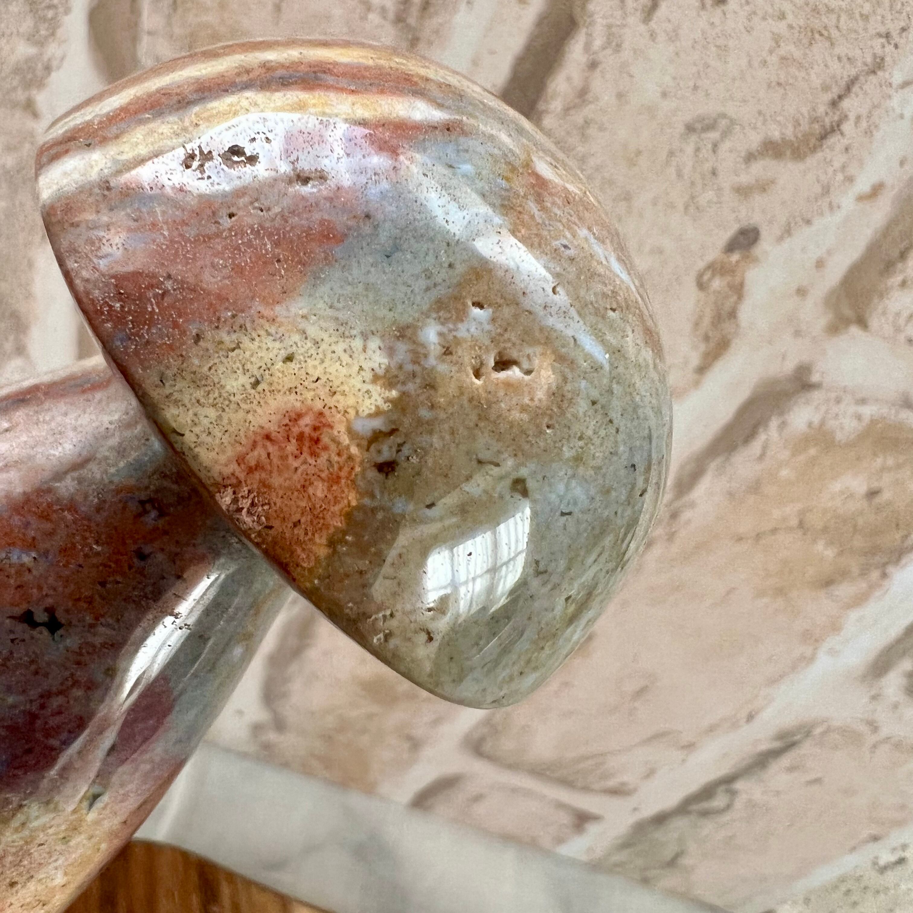 パステル調の柔らかくすみカラーがとても可愛らしいマッシュルームです。