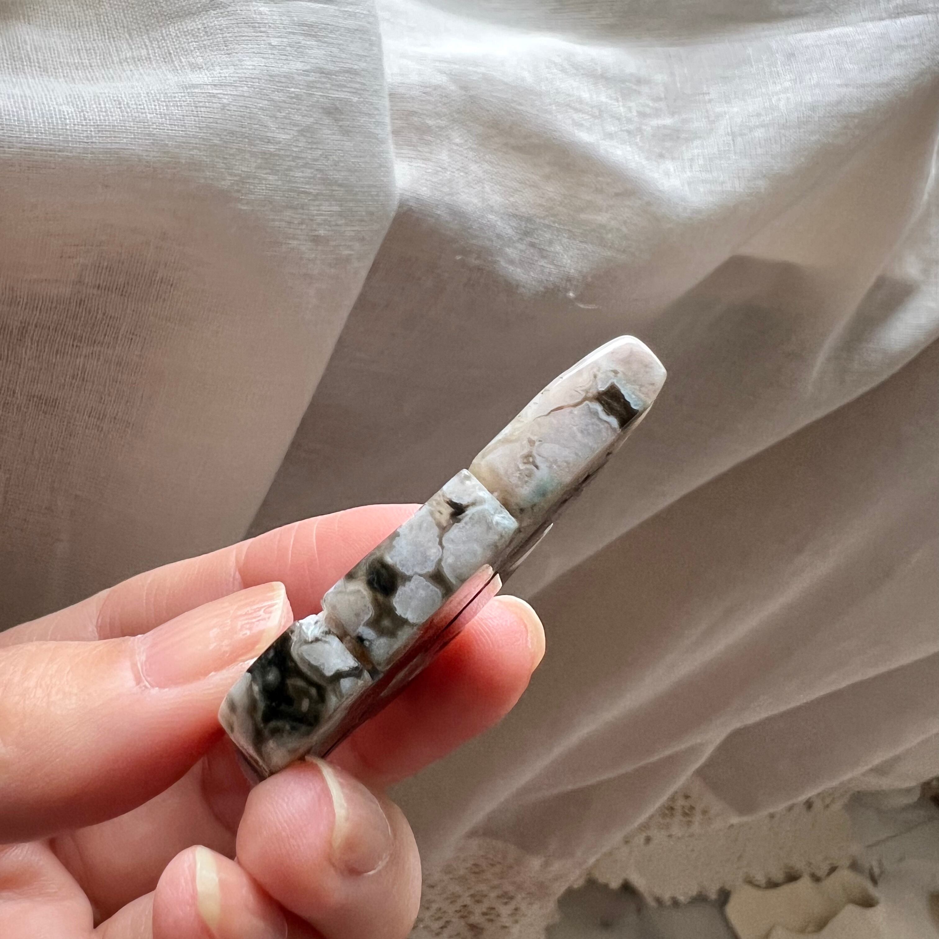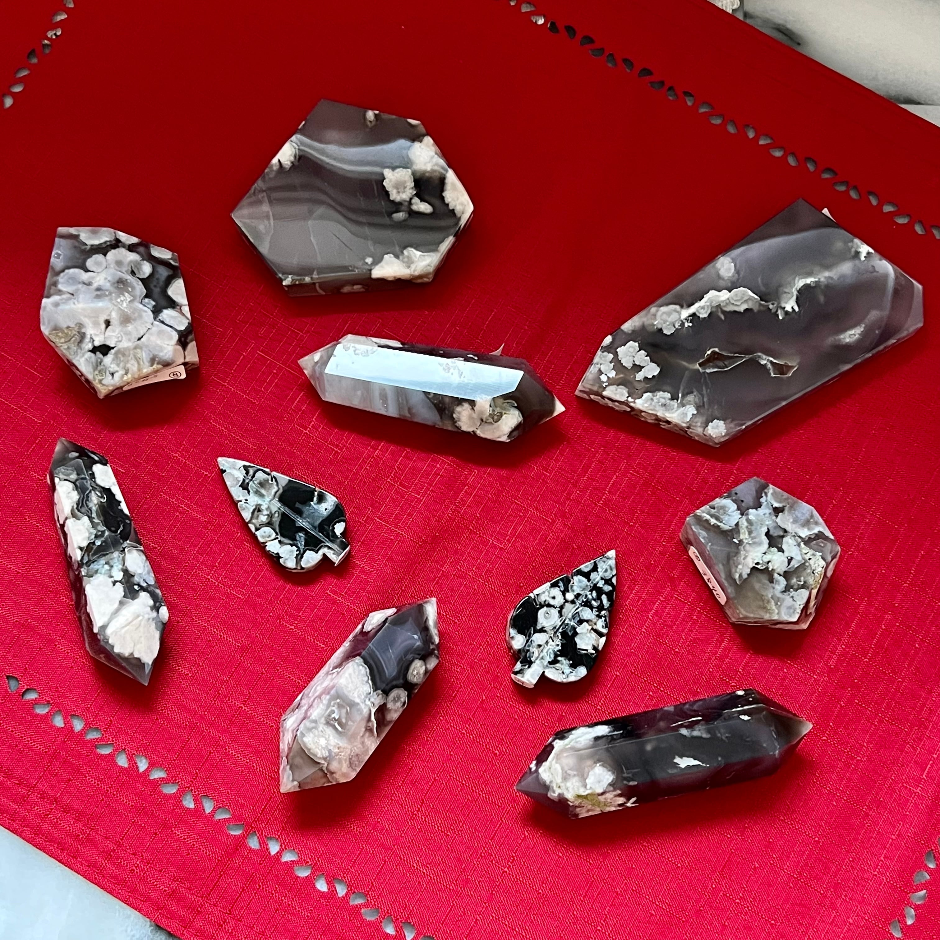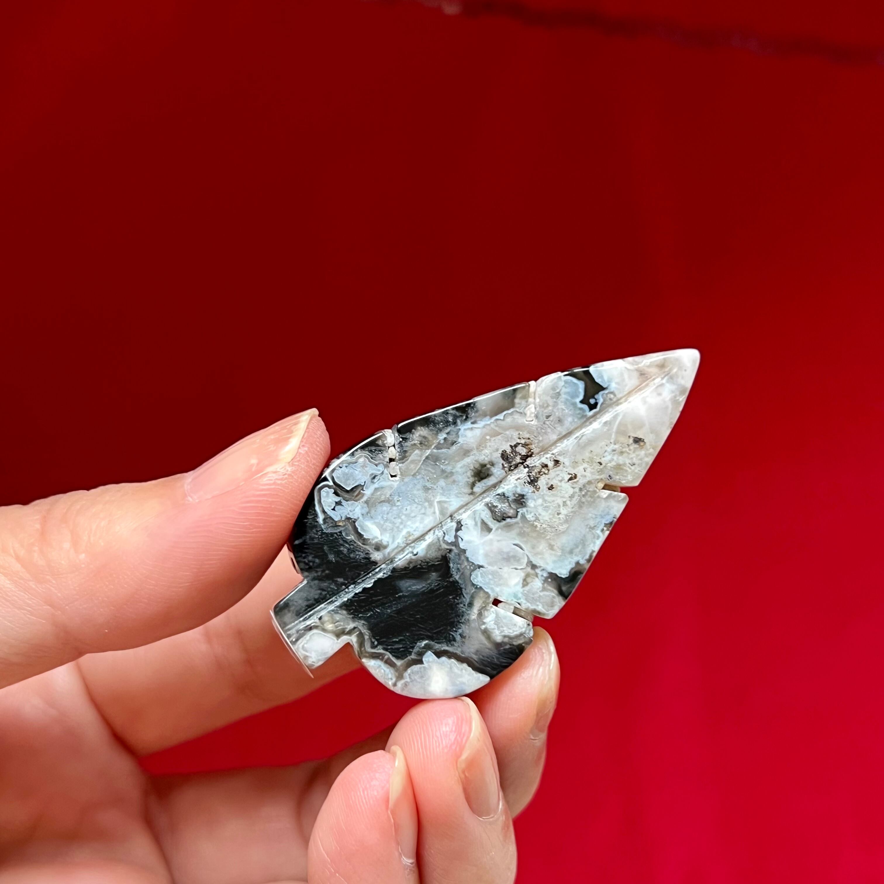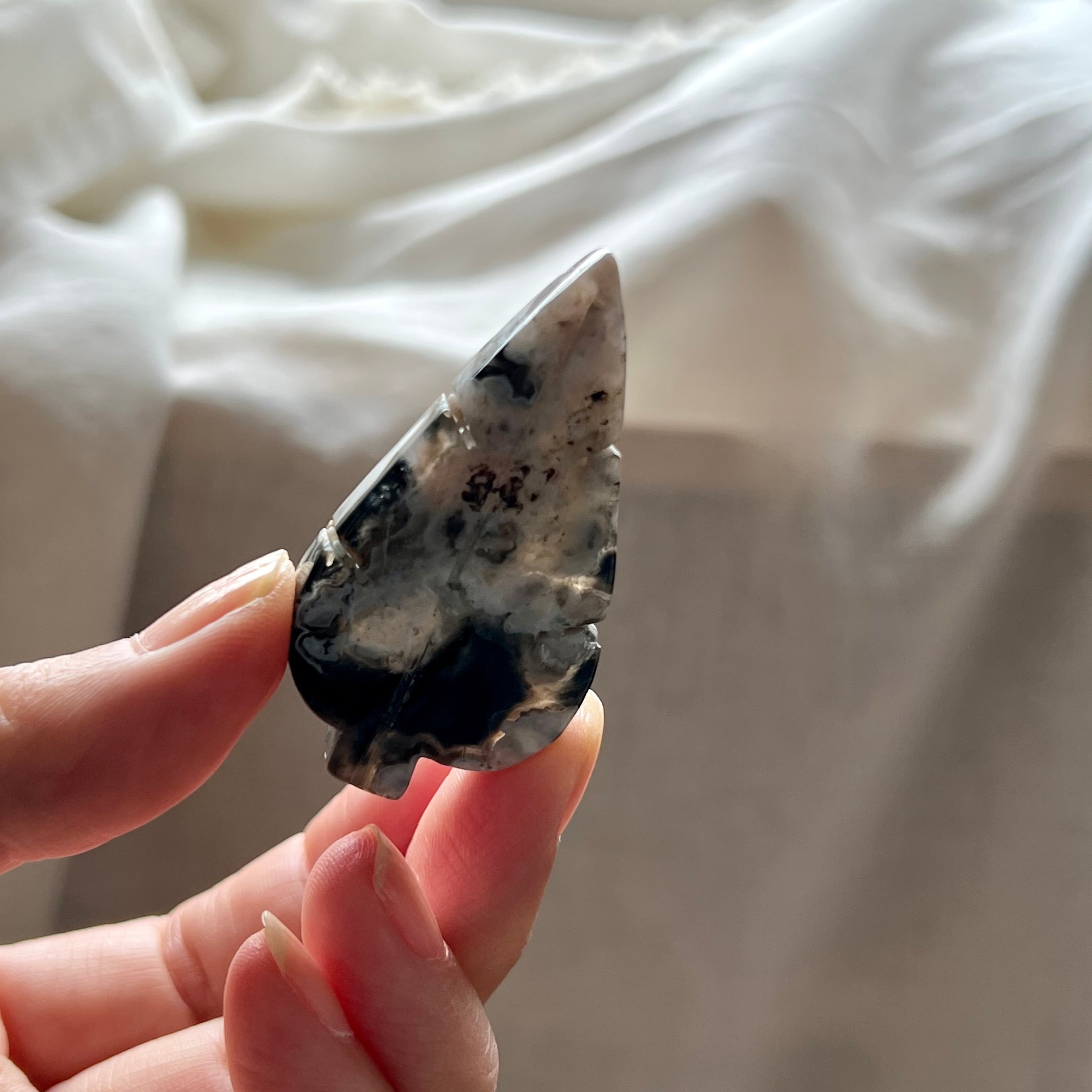 ブラックフラワーアゲート*リーフ1*和を感じる天然石*天然石インテリア*置き物