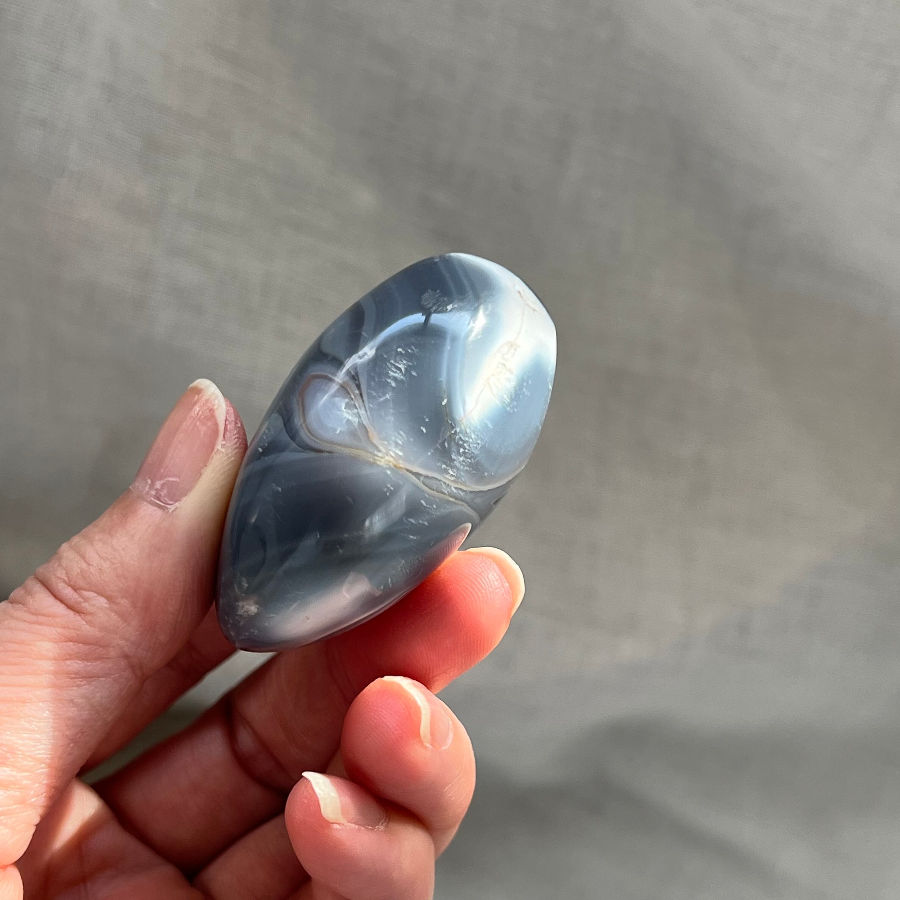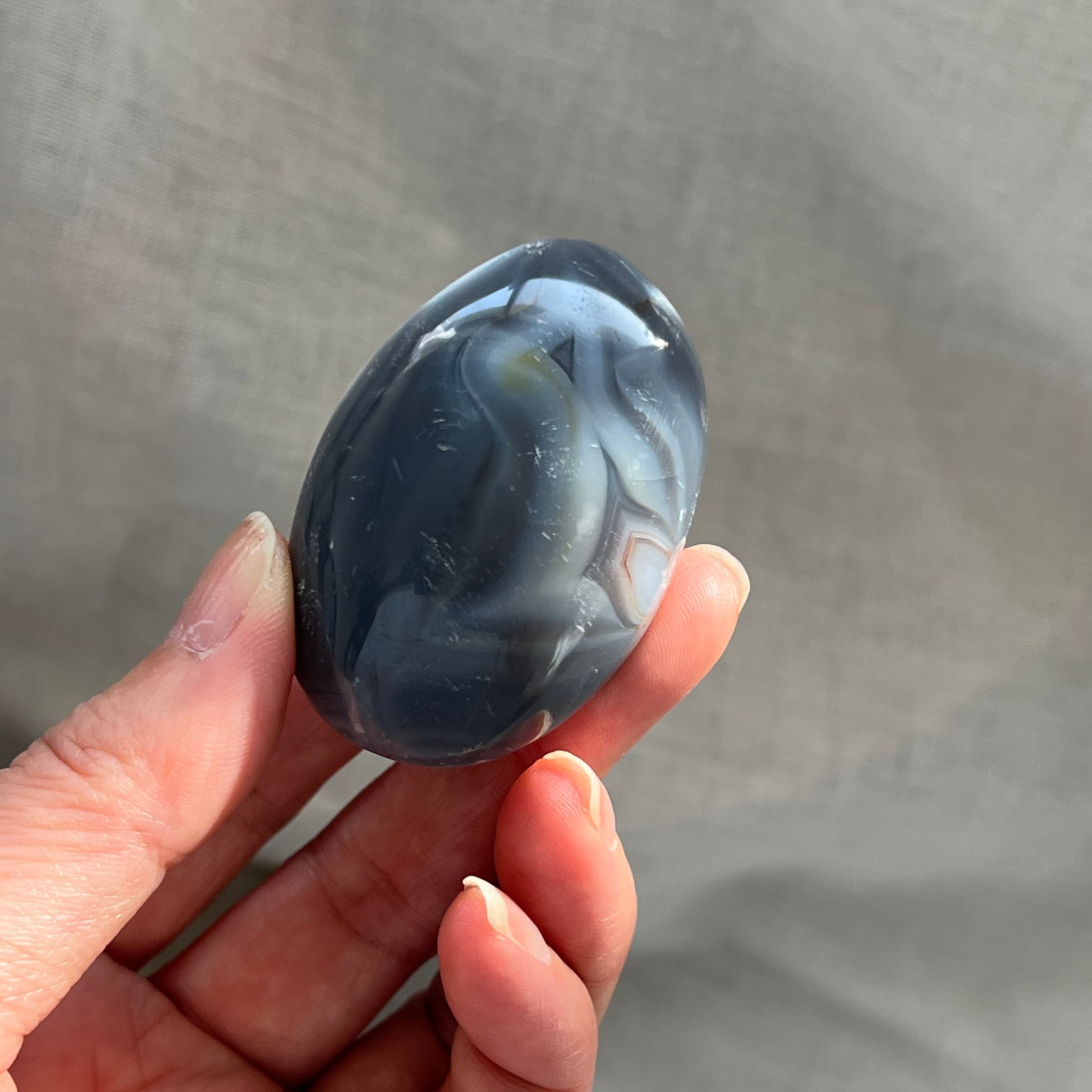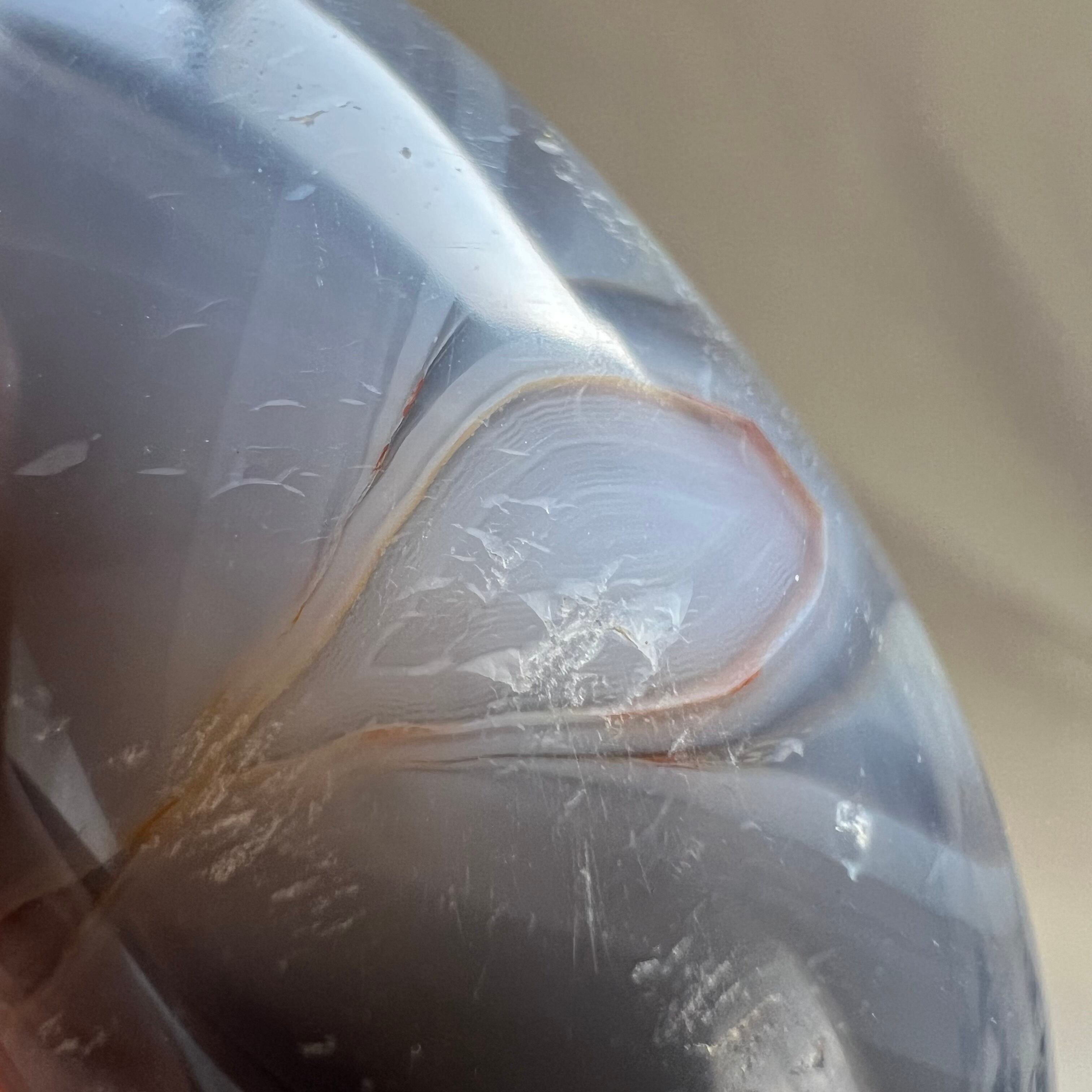 グレーにアゲートの模様と、ほんわりとホワイトの模様が美しくコロンとした可愛らしい個体です。
