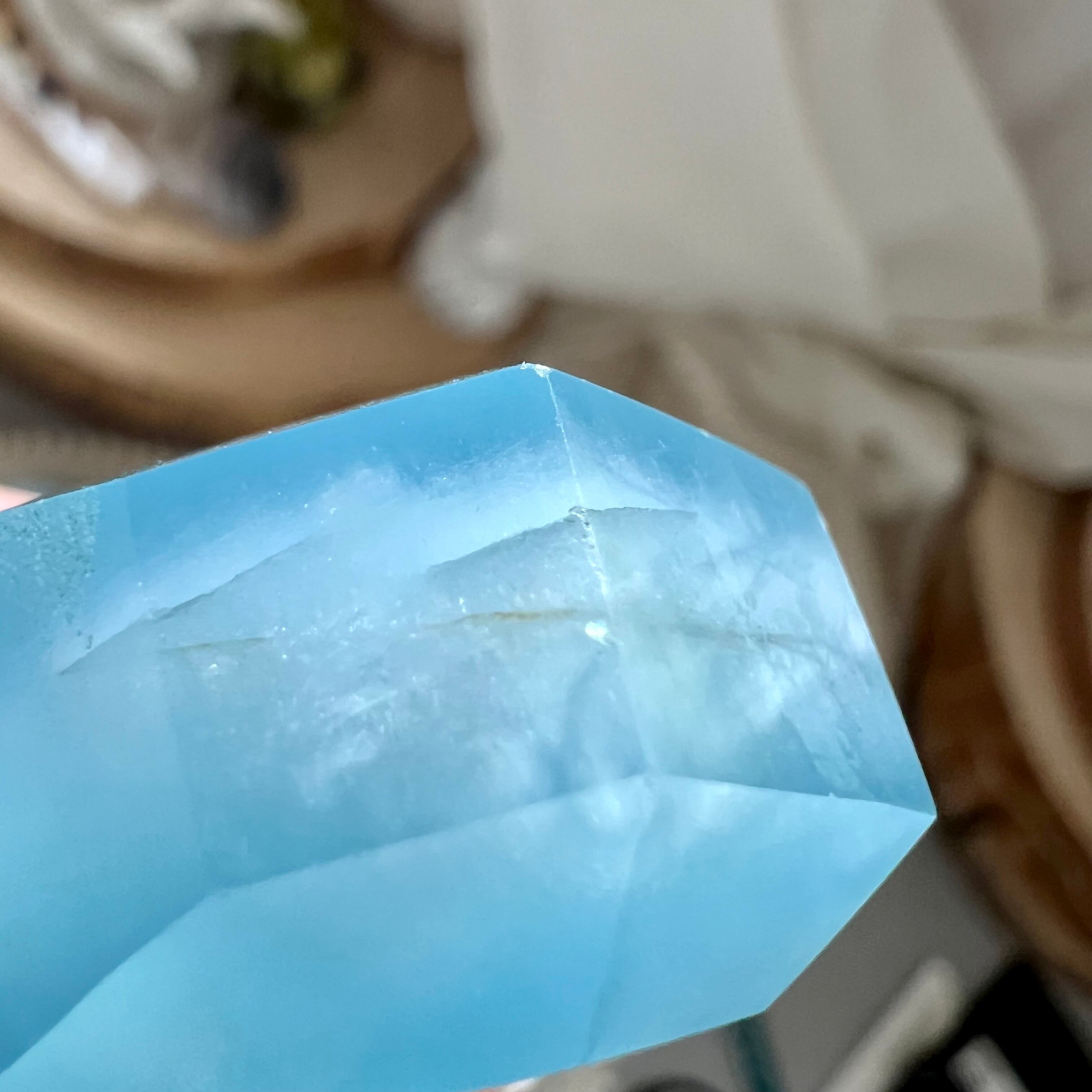 透け感とブルーが美しい*アクアマリン*ファセットハート型09*天然石インテリア*置き物