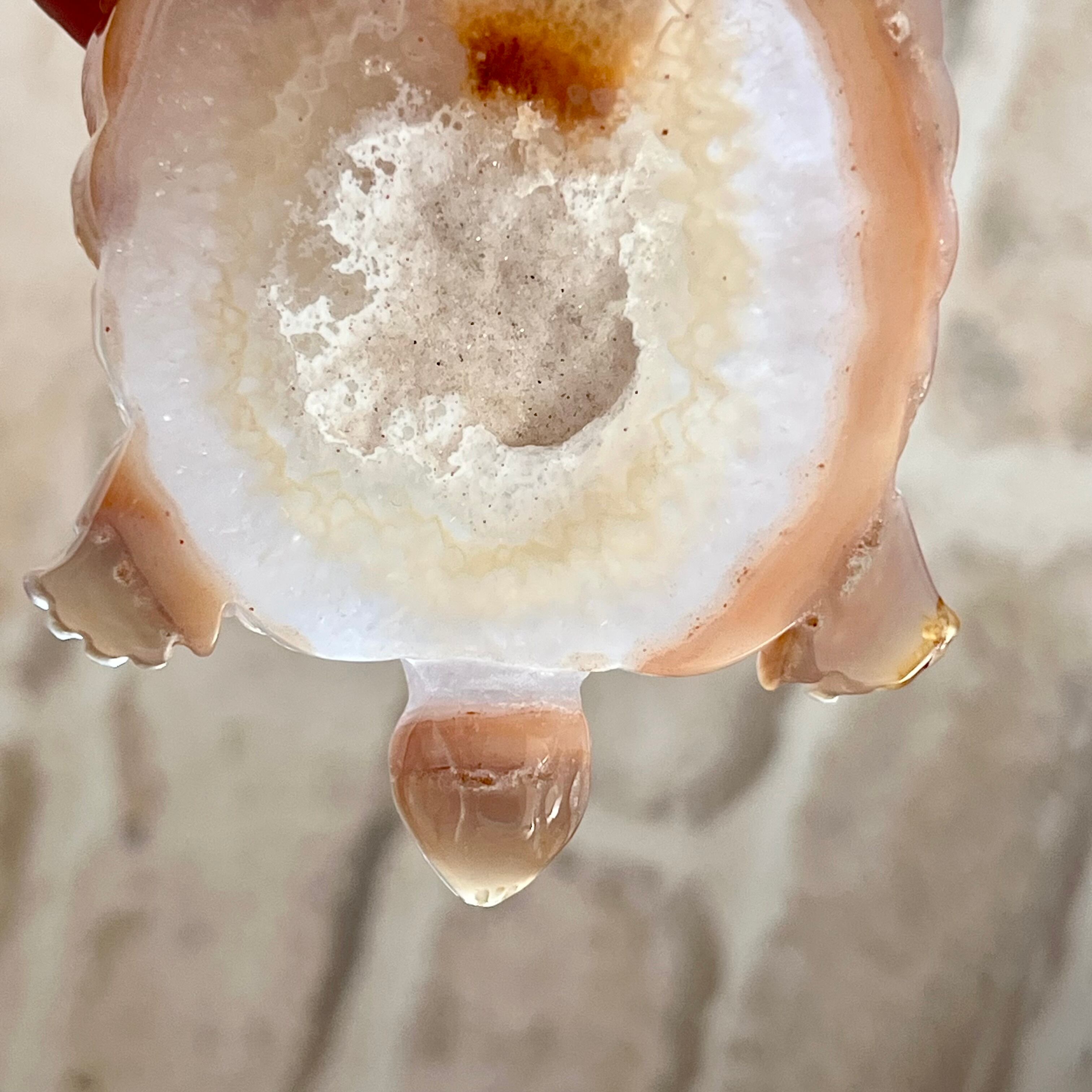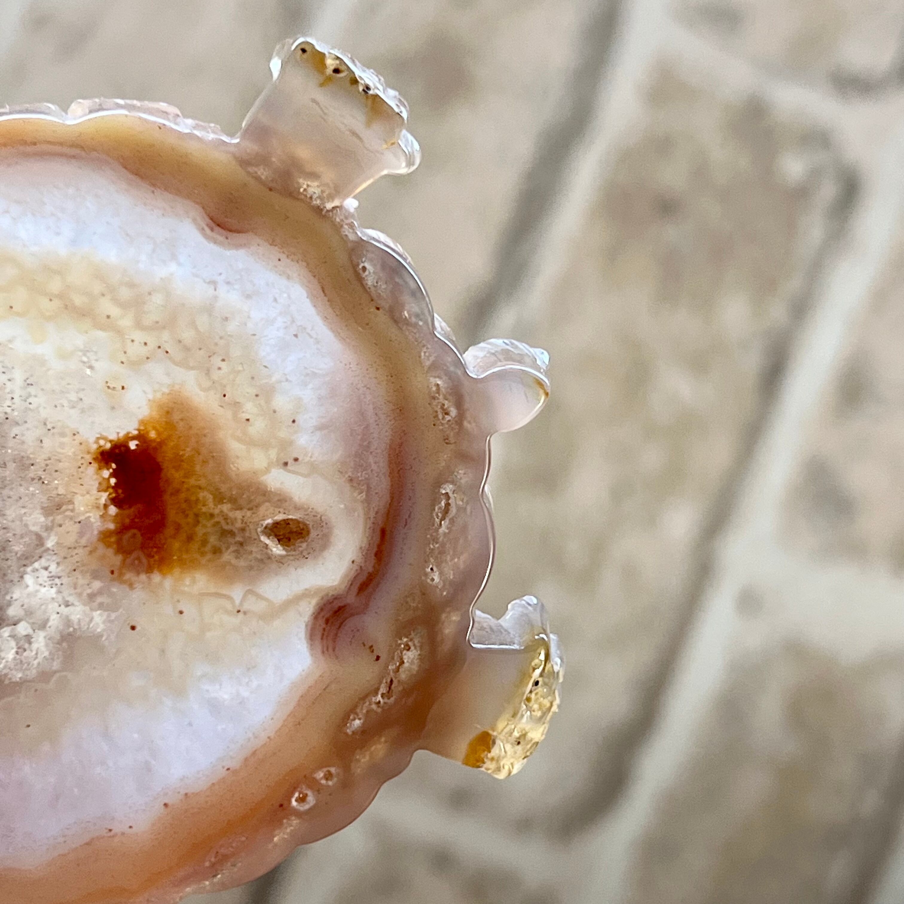 アゲートの模様とシュガードゥルージー、そしてザクザクとした結晶感が楽しめるカメのプレートです。