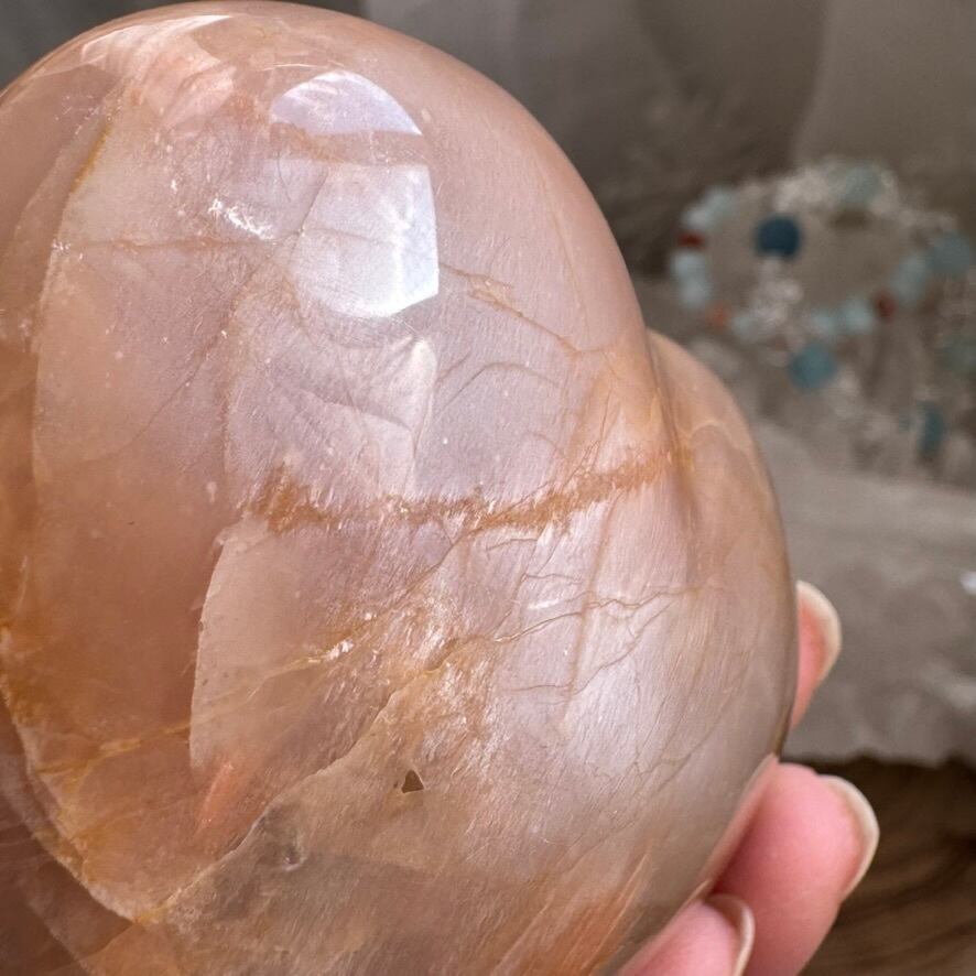 ピーチムーンストーンのハート型です。