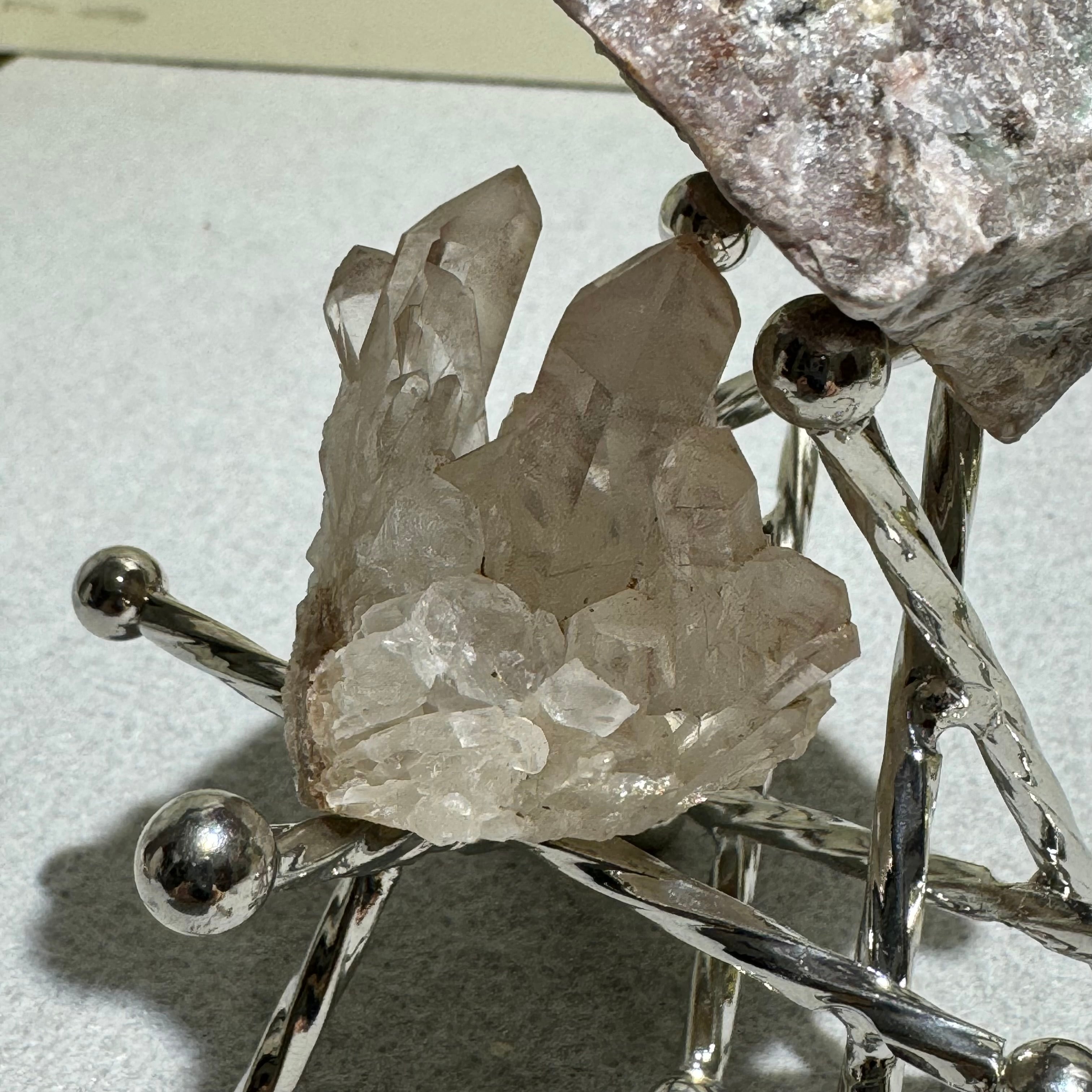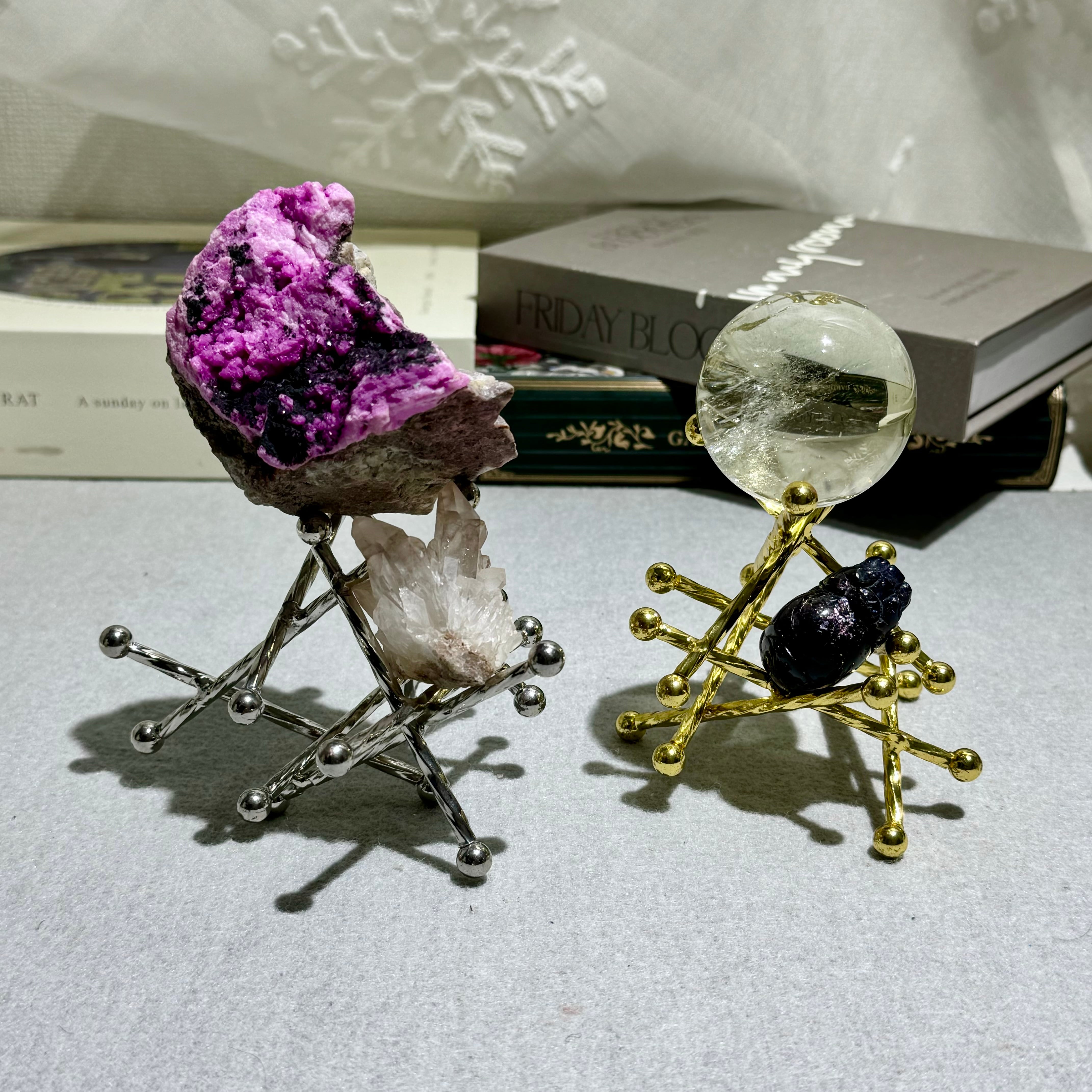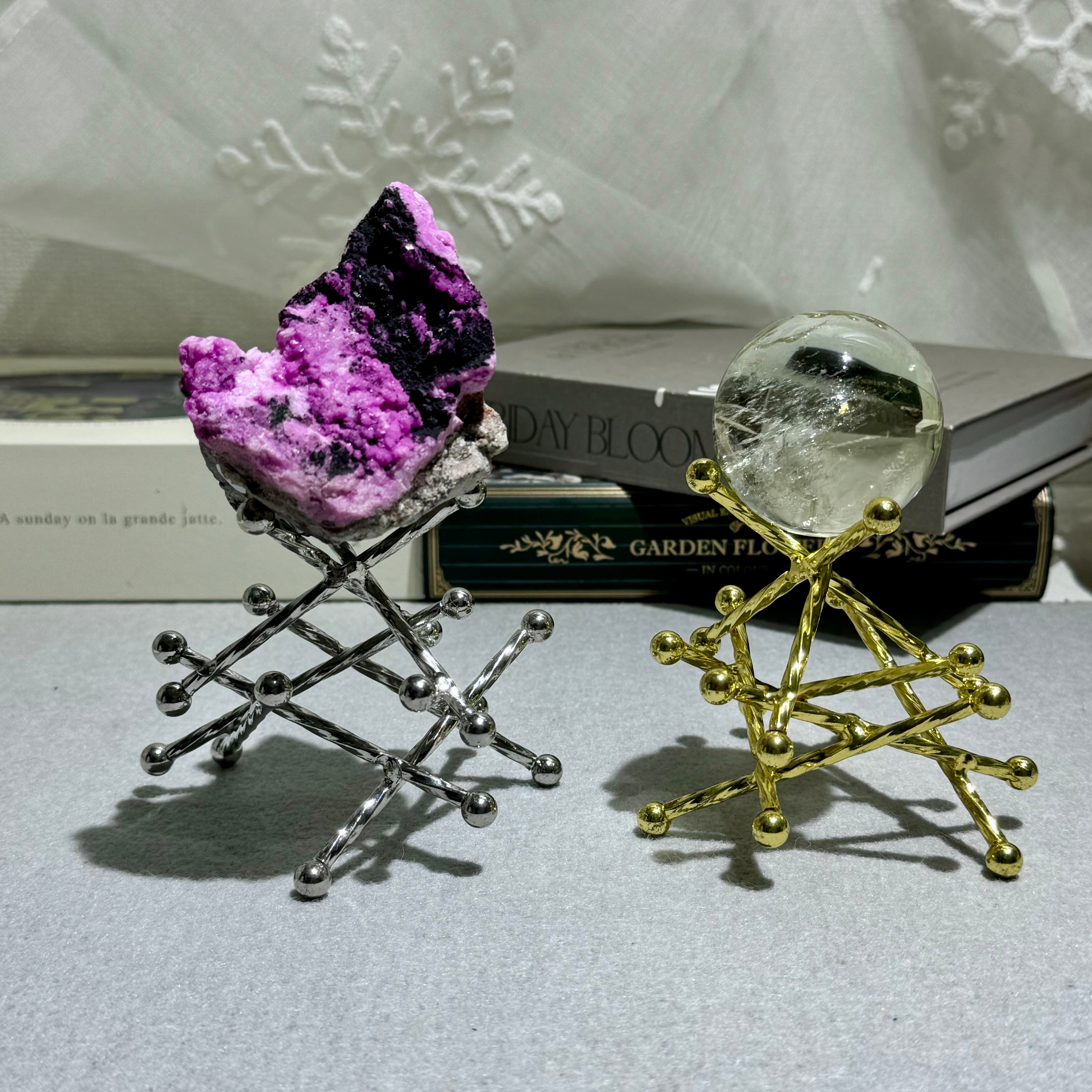 シルバー三つ足と木の台座Mサイズ*スフィアスタンド*丸玉台座*原石台座*天然石インテリア*置き物